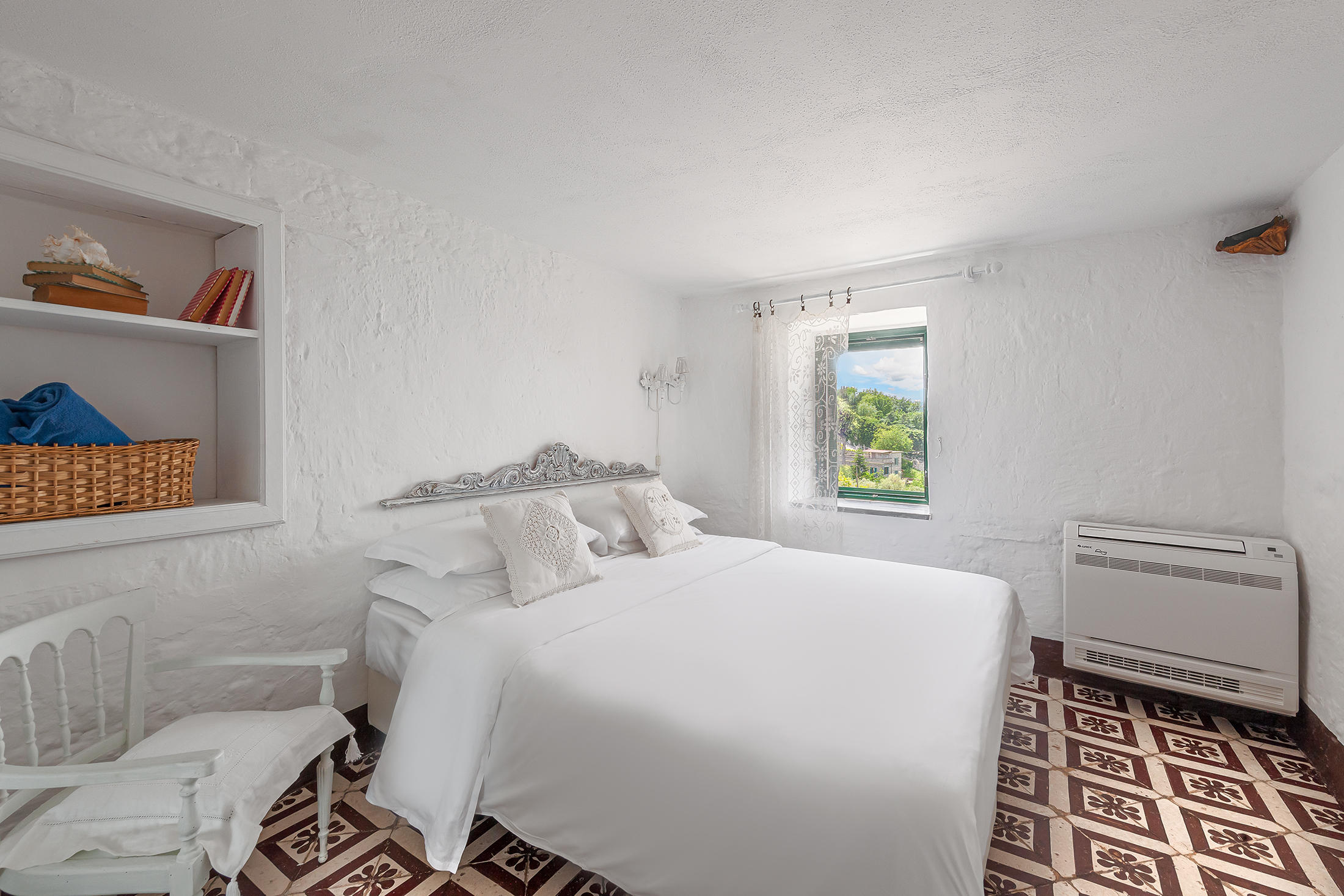 Returning to the garden, you can explore the annex, accessed via the olive grove. On the ground floor, there is an open plan living area, with a double sofa bed and kitchenette. The bathroom on this floor offers a shower, wash basin, bidet and toilet. The annex is air conditioned throughout. Upstairs there is a double bedroom with wonderful views and an en suite shower room.