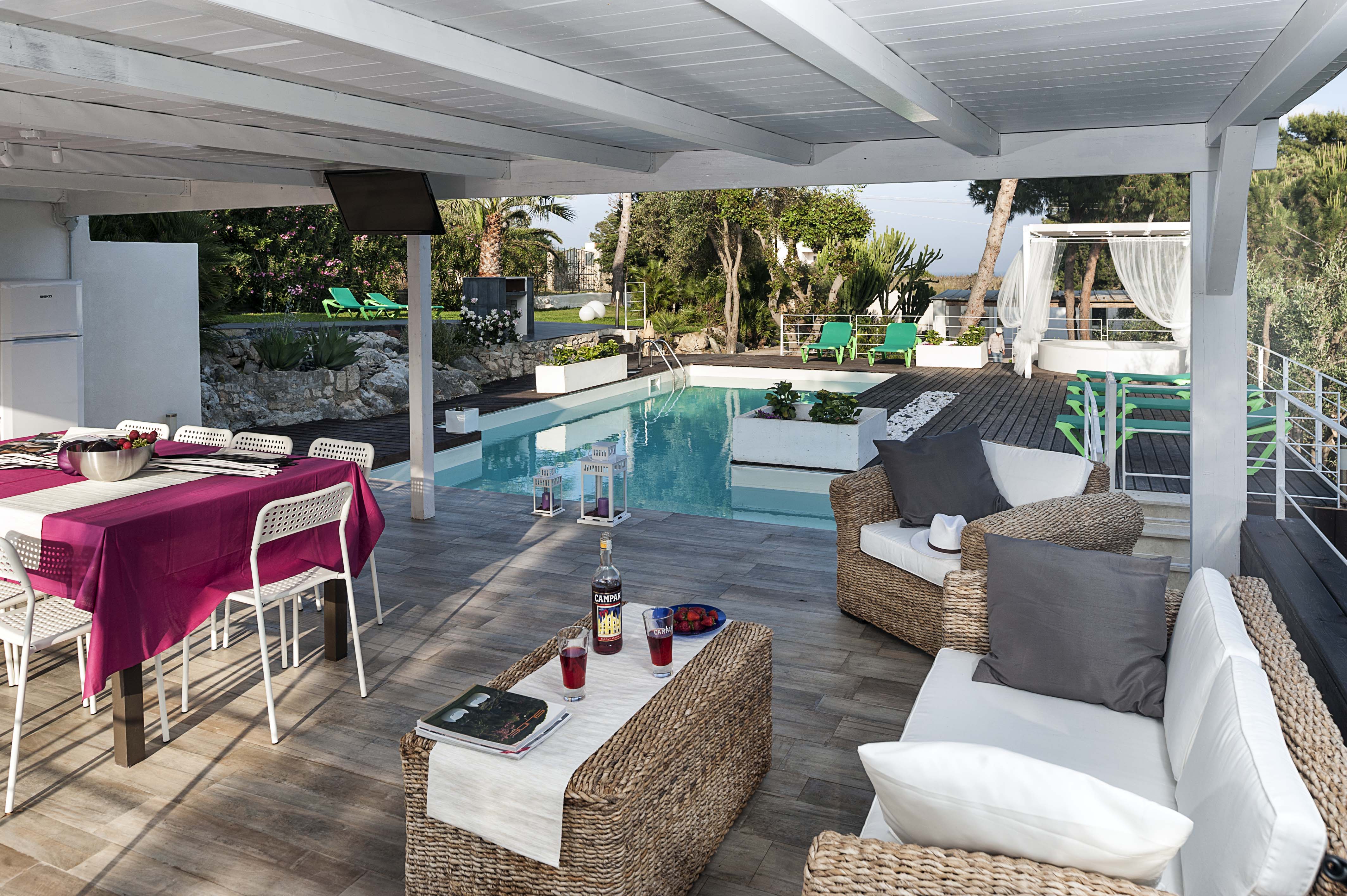 SERVICES INCLUDED: Gas cooker consumption, Water consumption, Electricity up to 200 Kwh per week, Final cleaning, Bed linen and bath towels weekly change, Pool towels weekly change, Sauna, Private Parking, Cot, Welcome basket, Wi-Fi