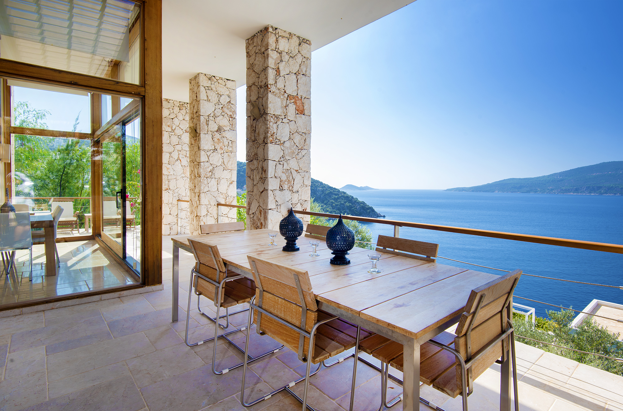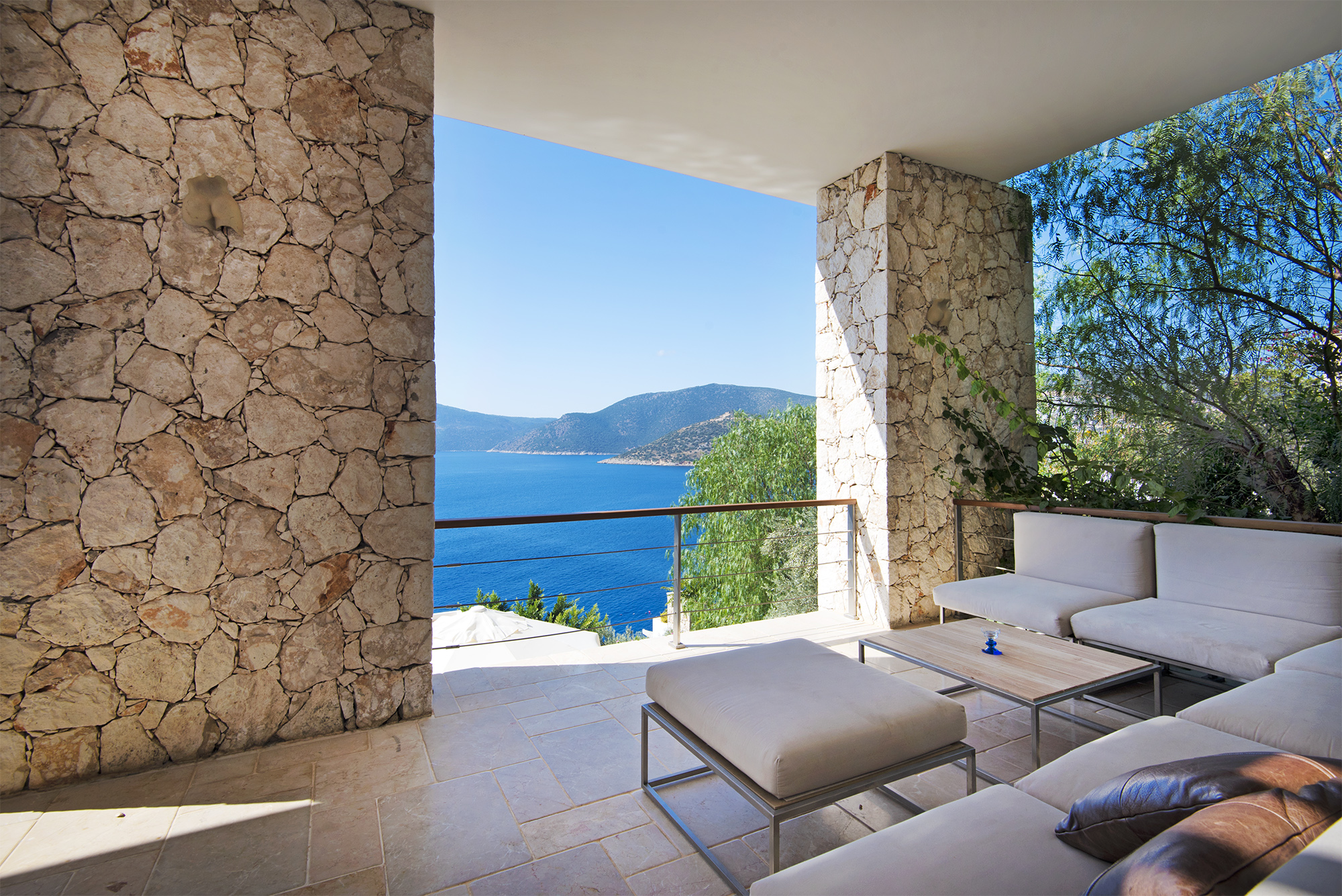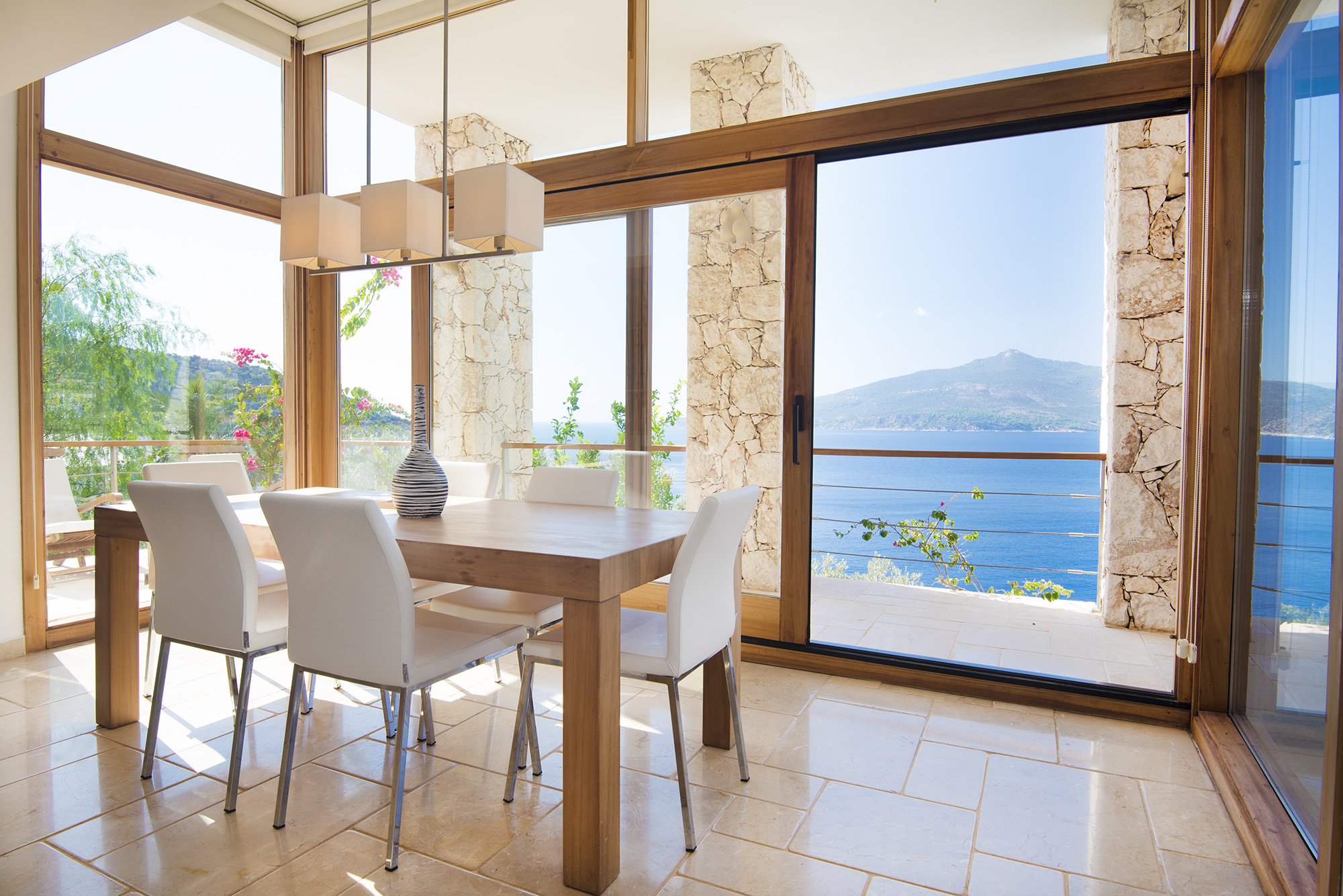 Villa Su just like its neighbour Villa Gunbatimi has oodles of wow factor! The initial surprise comes when you enter the property from the garden area to find the long, low villa has an entire wall of glass looking out to Kalkan’s extraordinarily beautiful bay. It is breathtaking.