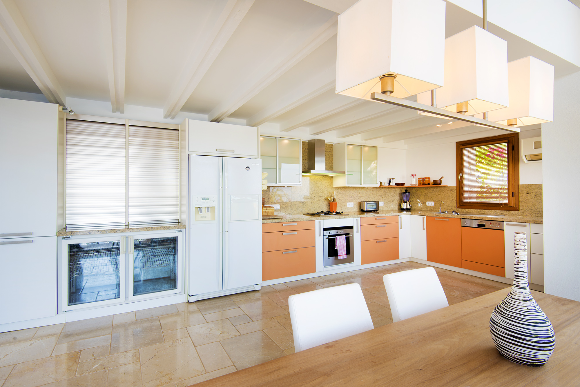 Hob/ oven, microwave, dishwasher, fridge/freezer. The kitchenette at the lower level has washing machine, mini oven, fridge/freezer. TV, DVD, CD player, i-pod dock, Wi-Fi internet access. Iron & ironing board, safe, hairdryer. Air conditioning throughout. Barbecue.