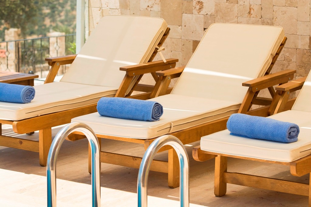Villa Eco has a spacious garden and pool terrace with sunbeds, umbrellas, BBQ, dining tables and chairs and seating groups.
