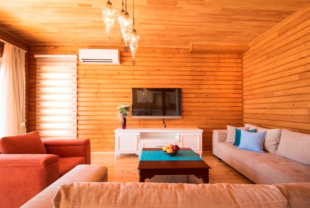 The living room and bedrooms have air conditioning.