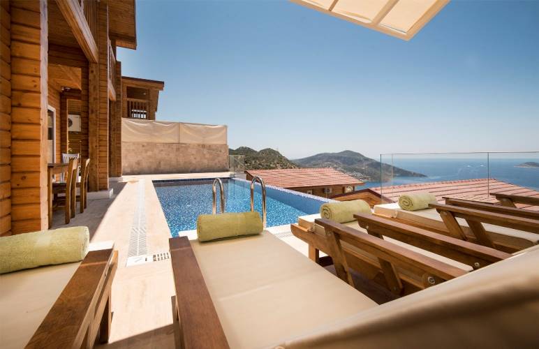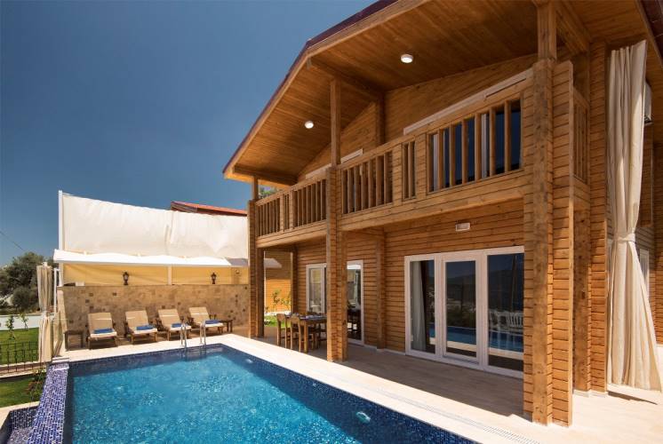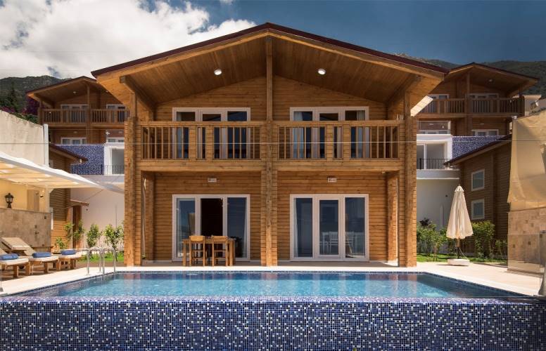 Villa Eco is a 2 bedrooms house with sea views in Kalkan and completed in June 2017 with wooden architecture.