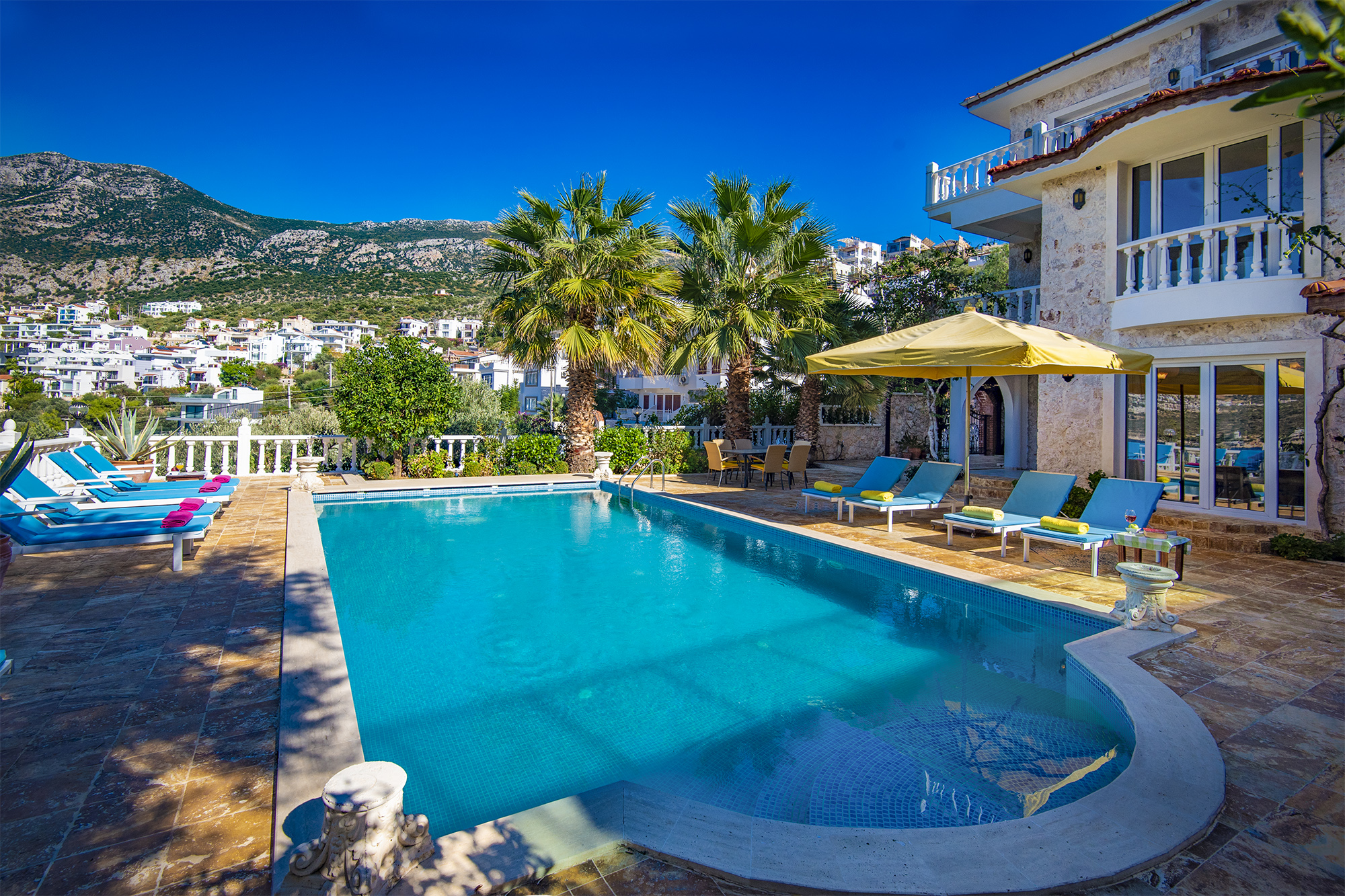 The Stone House in Kisla is a luxurious 5 bedroom villa, 2 minutes from the sea and beach clubs, the villa sleeps 10 people with fantastic panoramic views over Kalkan Bay.