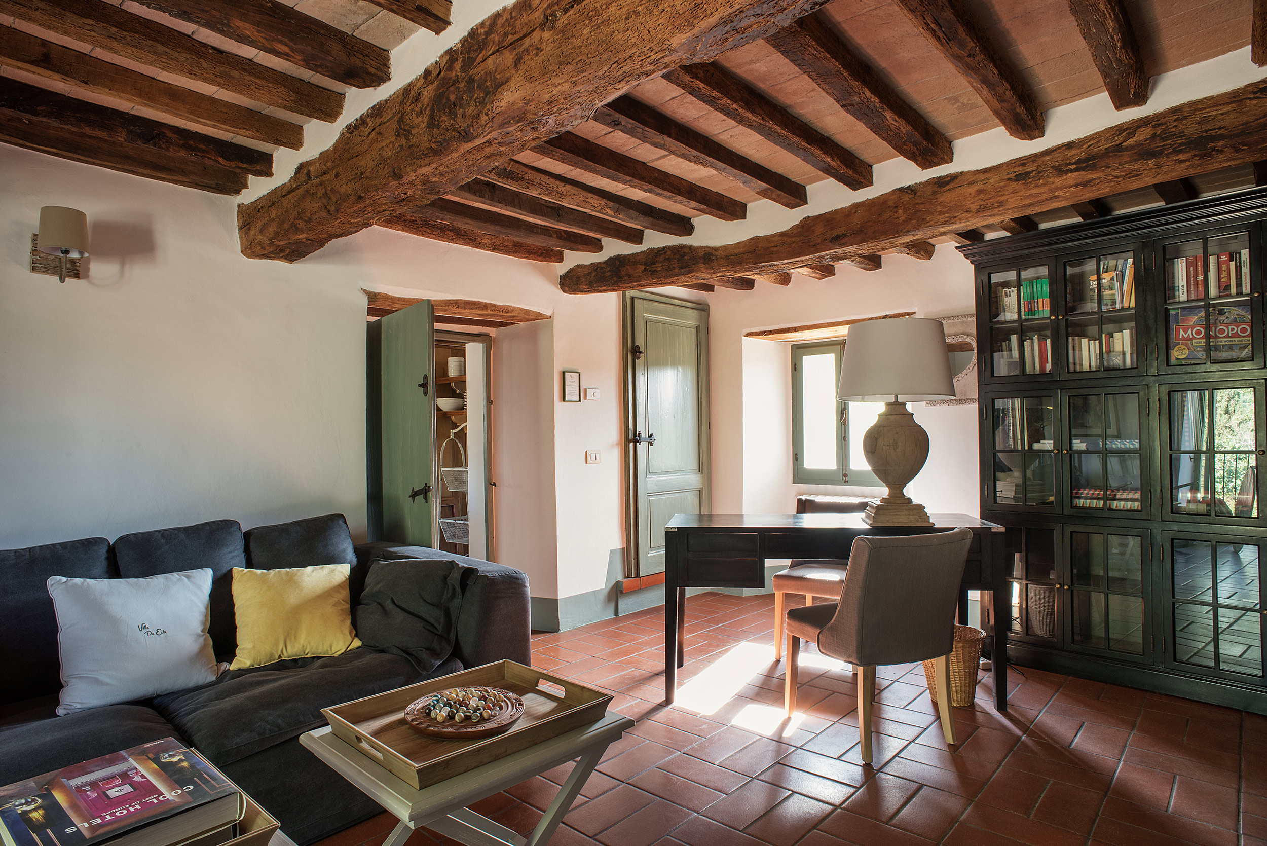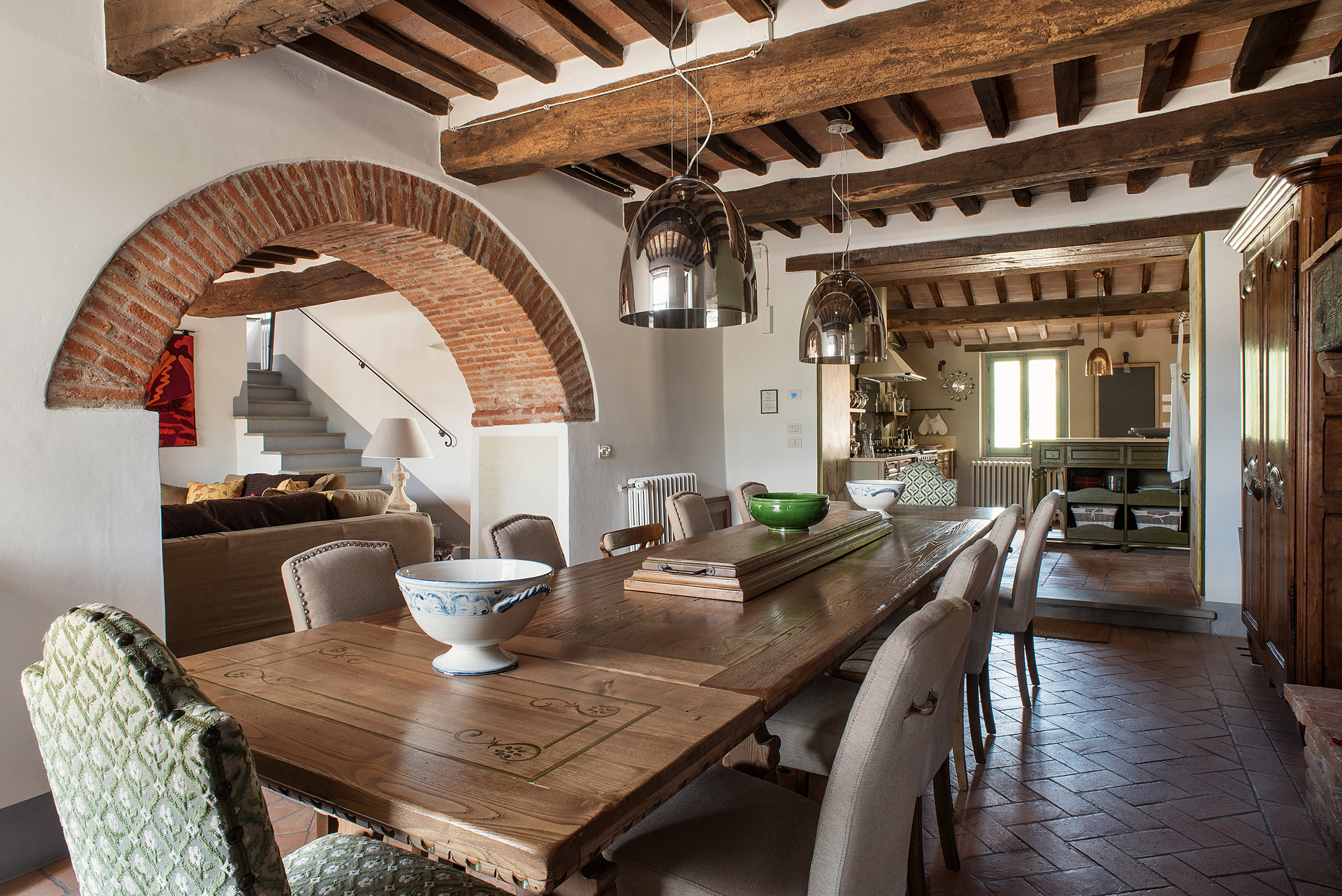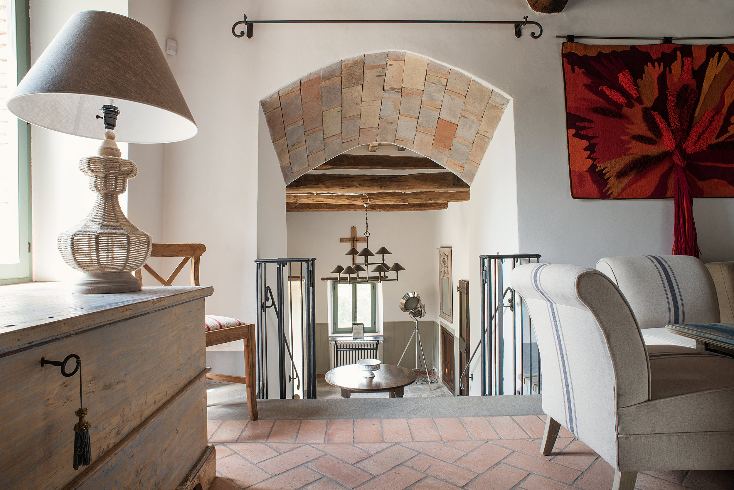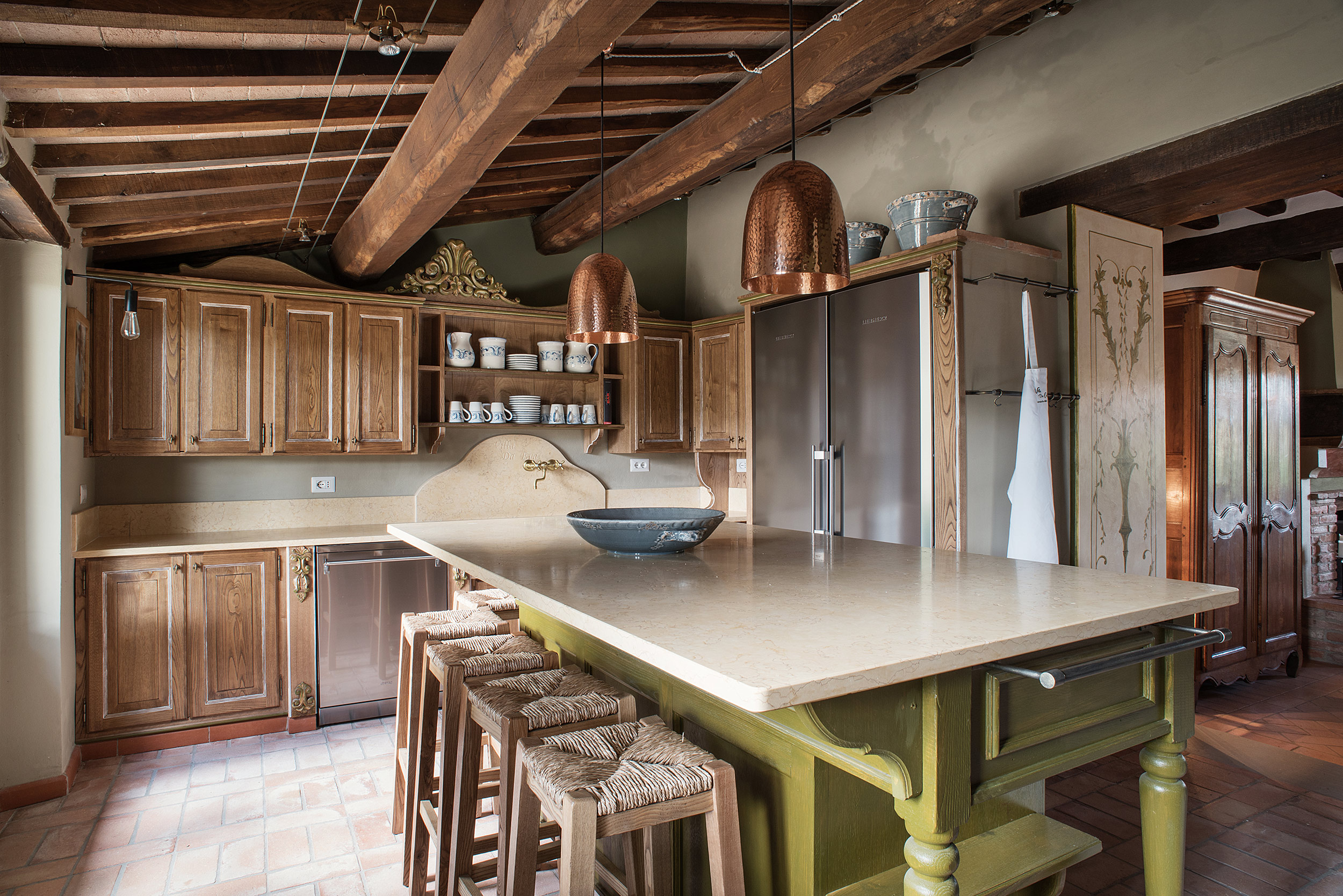 Halfway you find Villa da Eva, an elegant stone built farmhouse recently renovated with six bedrooms, spread over 350 square meters. A private unpaved stone gravel road framed by tall cypress trees awaits you and leads you to the gated entrance of a traditional 19th century Umbrian home resplendent with the elegance of stone, wood and terracotta. In a meticulously restored area, Villa da Eva can easily host eight to twelve guests. The subdivision of the rooms allows you to live independently in the two parts of the villa, each with its own kitchen and living room. It is the ideal space that allows, for example, two families to have private living rooms while sharing the rest of the villa, gathering at the big dining table in the main kitchen, or eating outdoors all together under the pergola.
