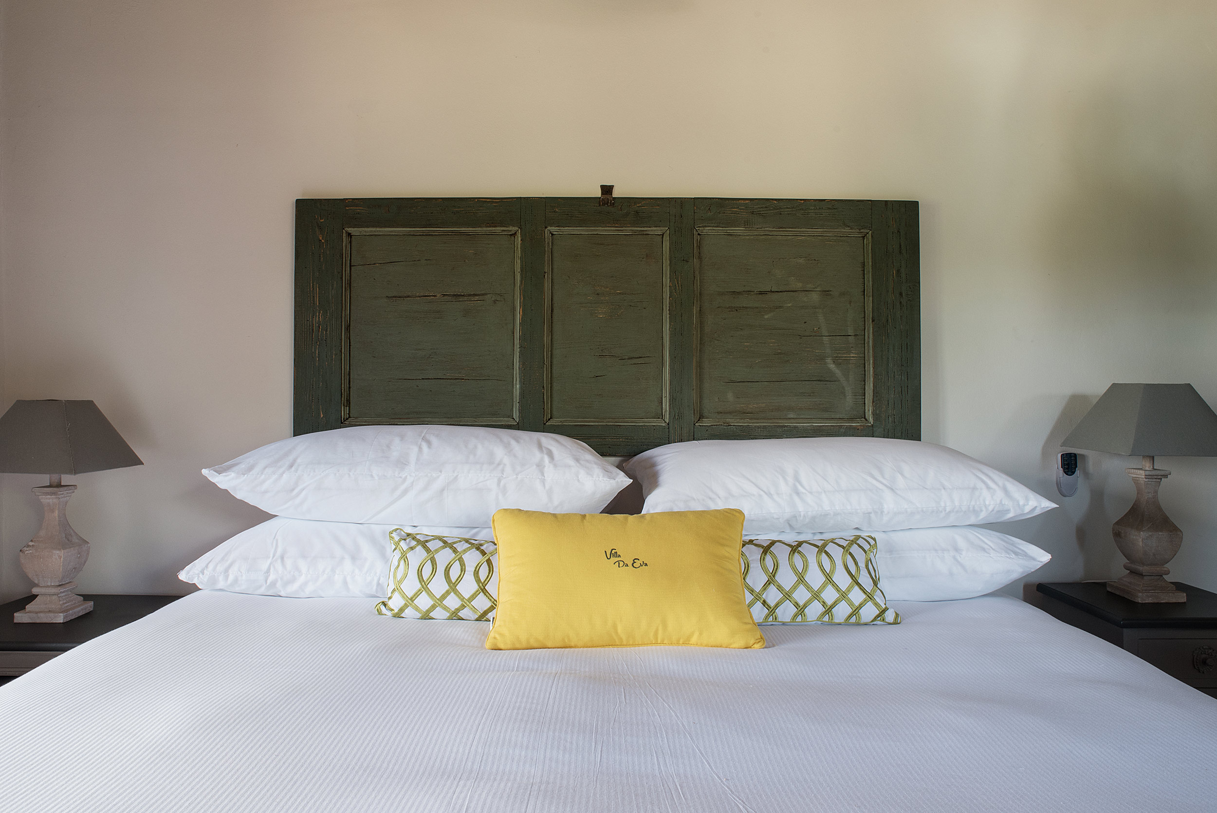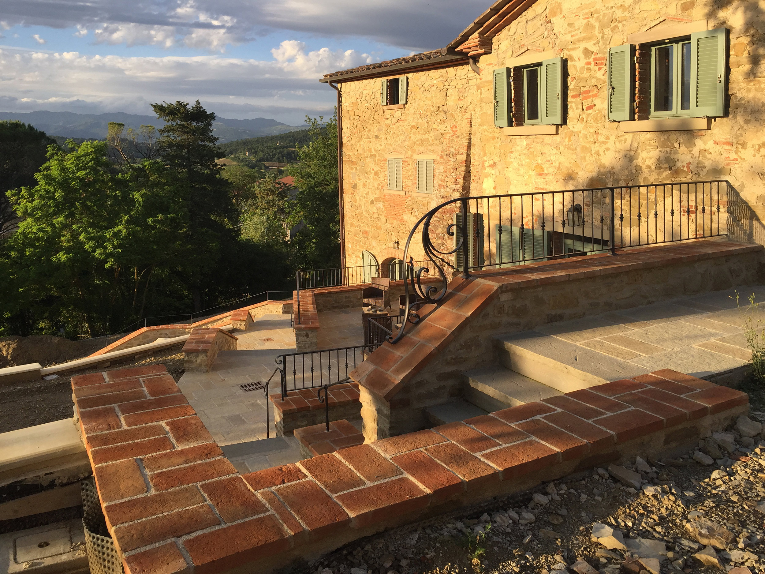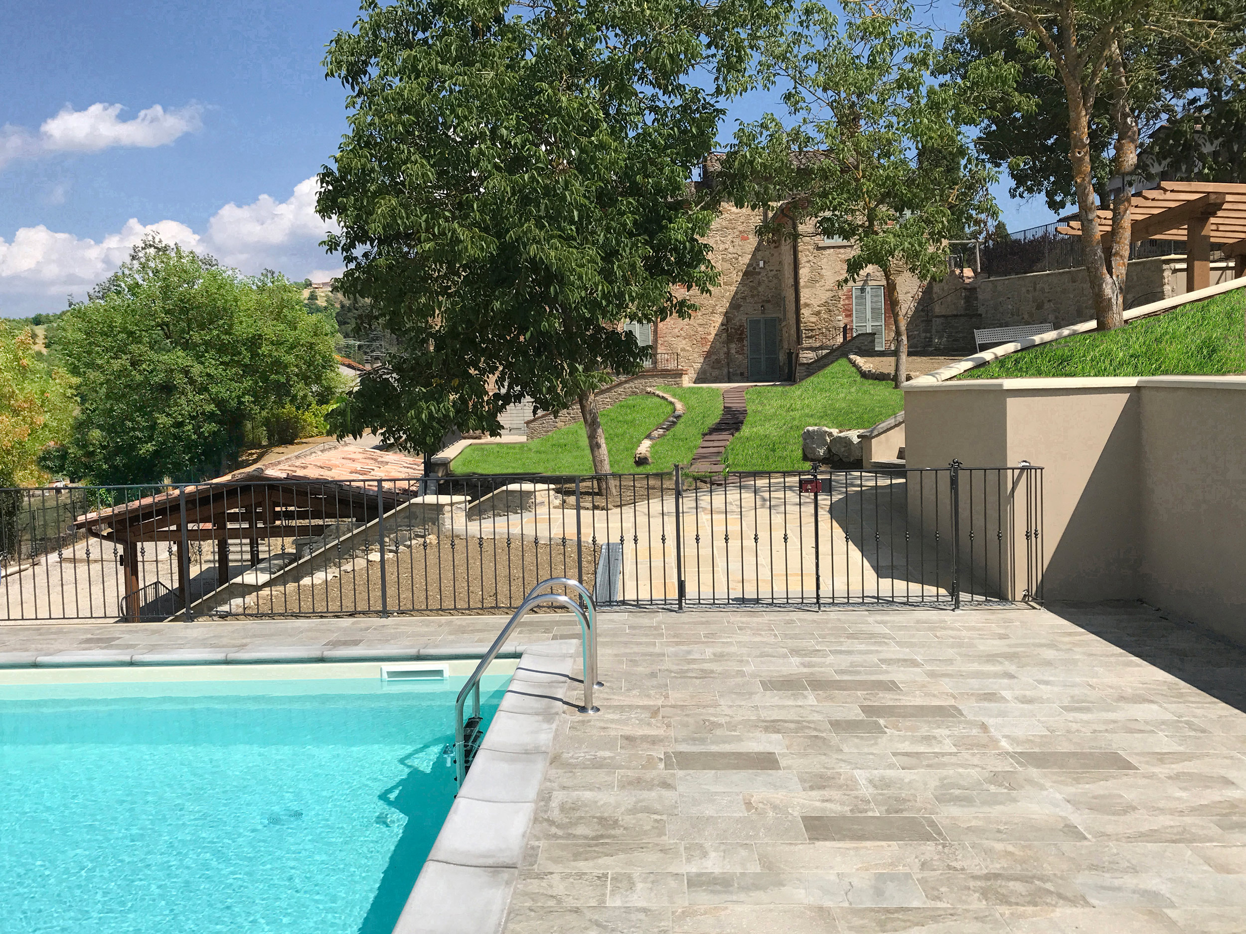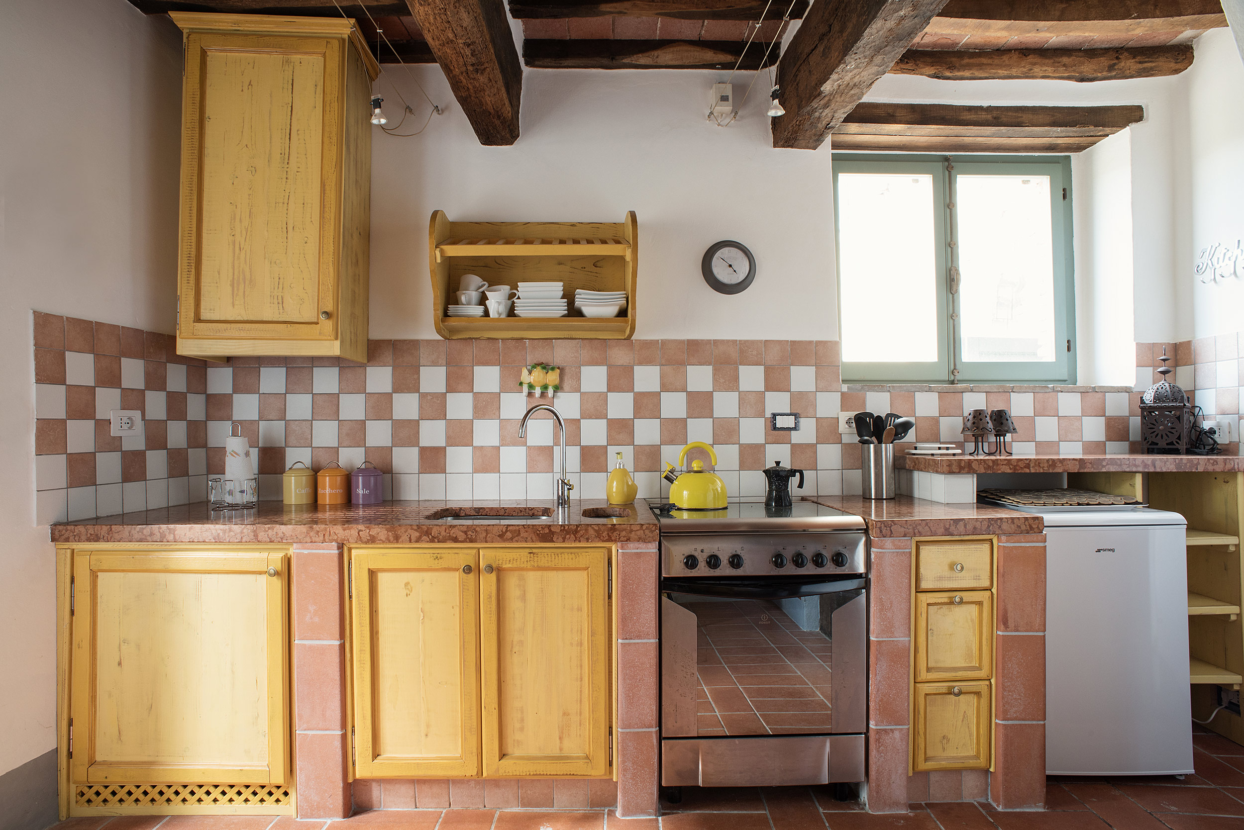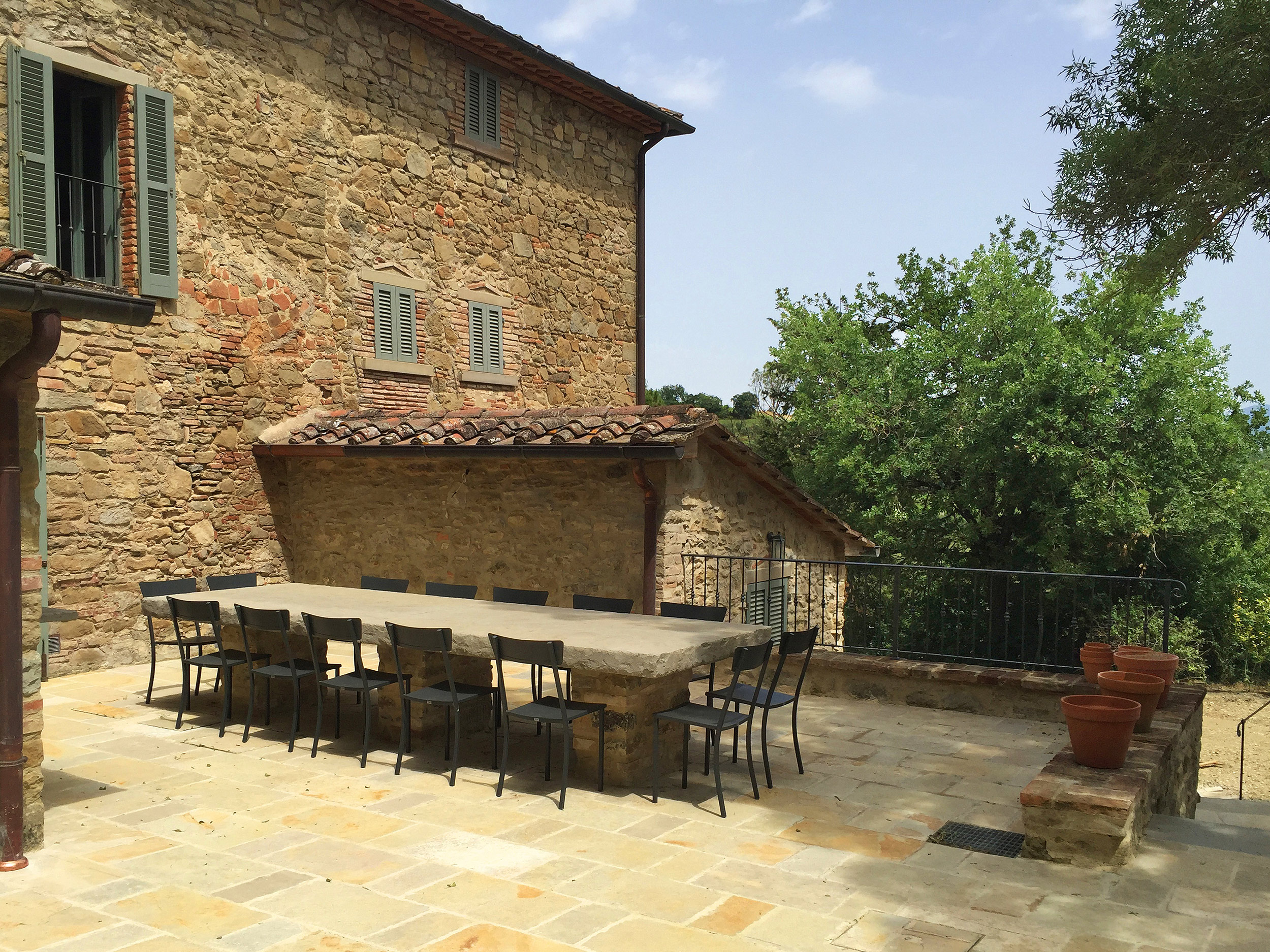 Halfway you find Villa da Eva, an elegant stone built farmhouse recently renovated with six bedrooms, spread over 350 square meters. A private unpaved stone gravel road framed by tall cypress trees awaits you and leads you to the gated entrance of a traditional 19th century Umbrian home resplendent with the elegance of stone, wood and terracotta. In a meticulously restored area, Villa da Eva can easily host eight to twelve guests. The subdivision of the rooms allows you to live independently in the two parts of the villa, each with its own kitchen and living room. It is the ideal space that allows, for example, two families to have private living rooms while sharing the rest of the villa, gathering at the big dining table in the main kitchen, or eating outdoors all together under the pergola.