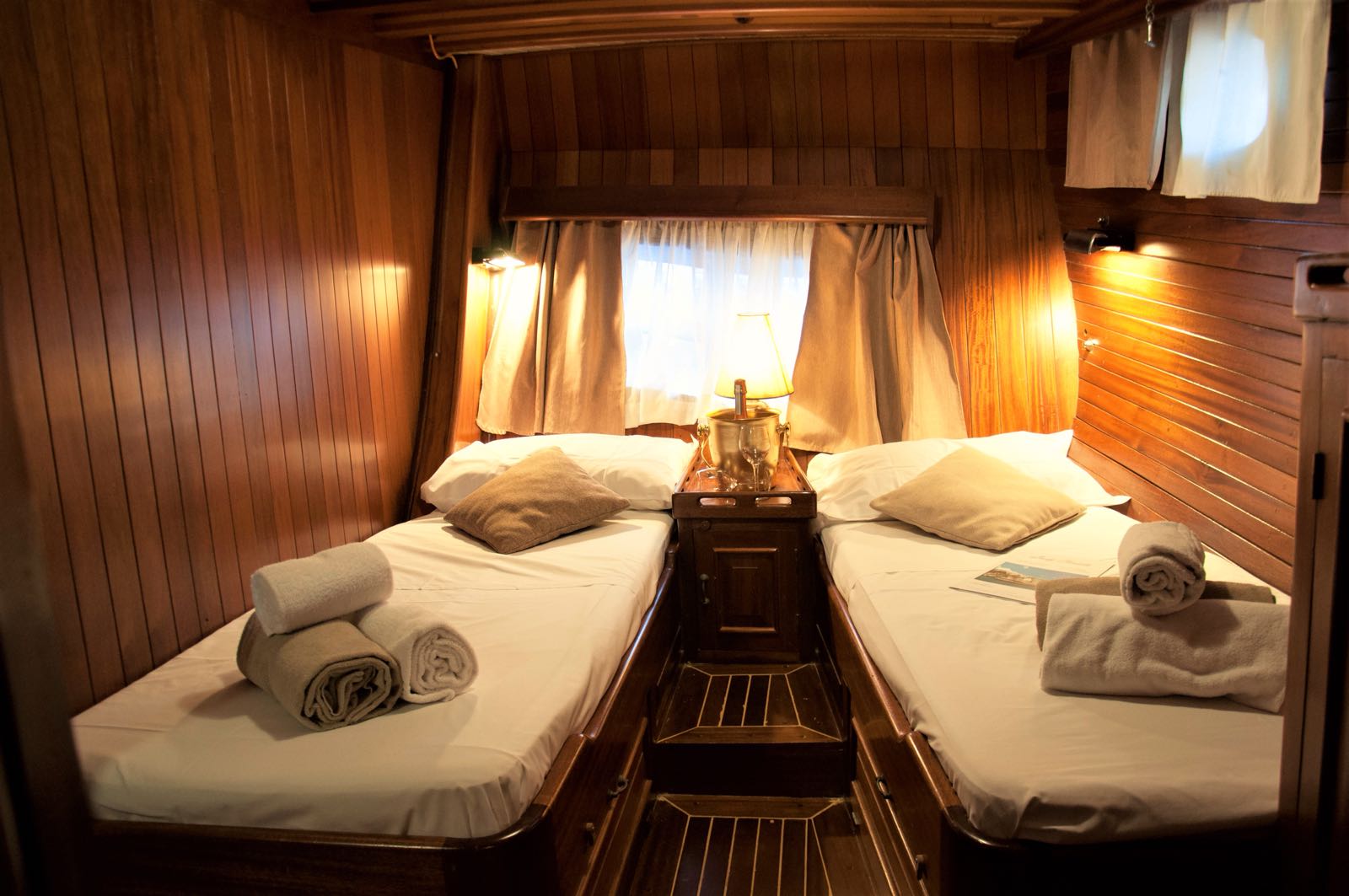 Lady Christa is a refined and welcoming Turkish gulet. She has 6 cabins for 12 + 2 guests and 3 Italian crew members. The gulet offers a Master cabin, a guest cabin with a double bed and 3 triple cabins with separate beds. Each cabin is equipped with air conditioning, stereo, and en suite bathroom with shower. Crew has a separate area.