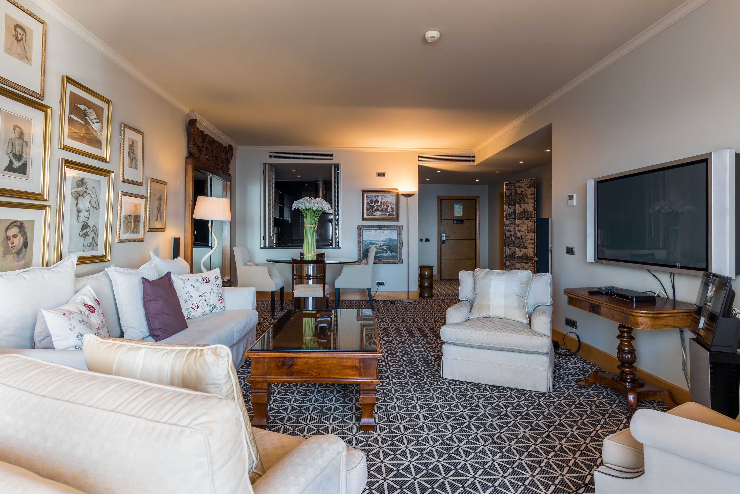 Spacious rooms are all well equipped and have a balcony with sea view. Junior suites also offer a kitchenette and lounge area too.