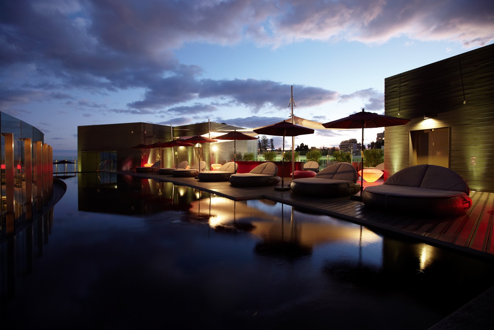 Also up on the roof is the stunning infinity pool that curves across the shape of the building along with the adjacent long hot tub. Both are serviced by the rooftop wine bar and restaurant. There is also a second restaurant which serves breakfast and is open for lunch and dinner and a lobby bar during cooler months which is perfect for coffee.