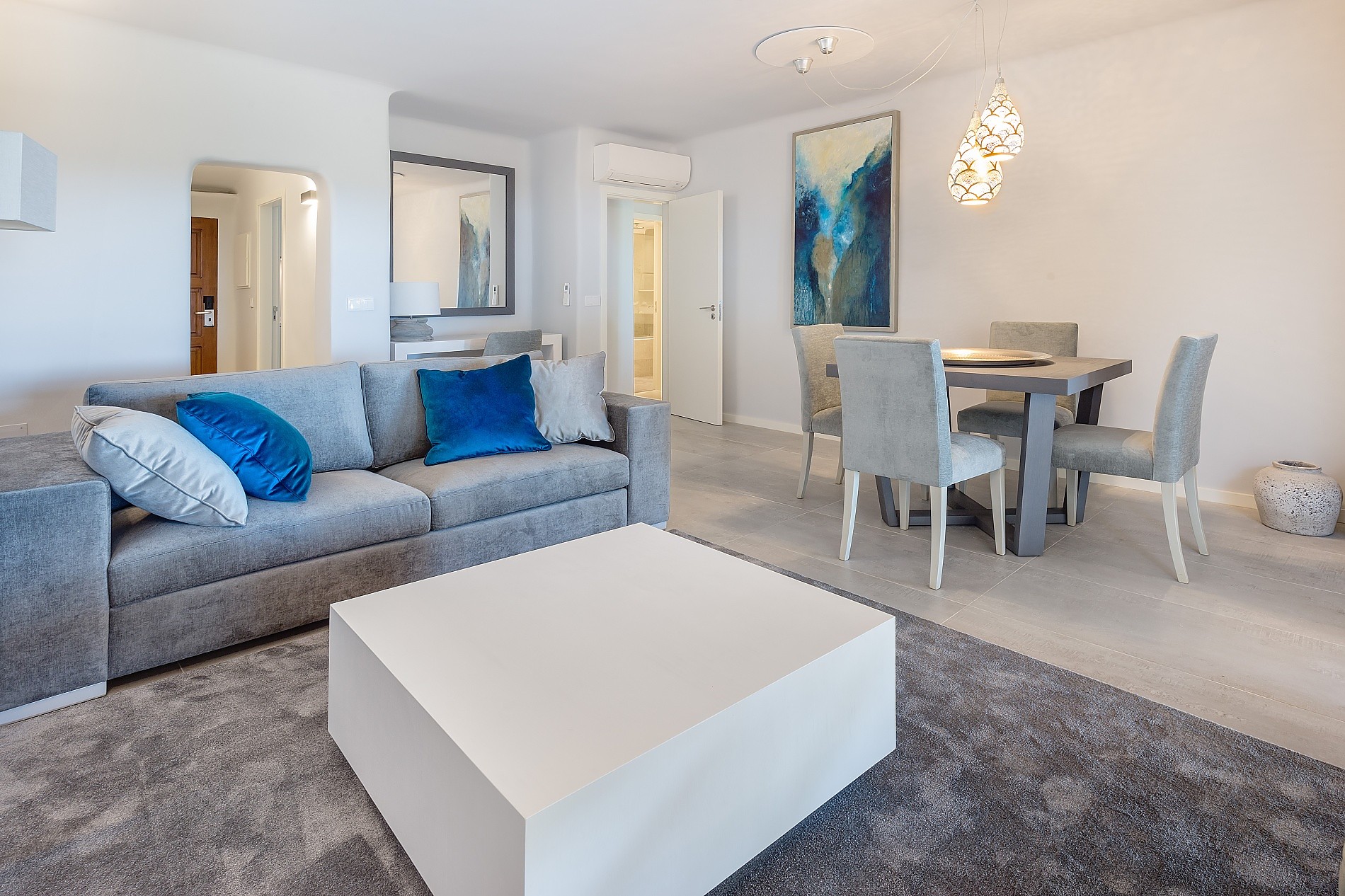 Low-rise buildings reminiscent of Gaudi are dotted around the gardens among palm trees and the 5 delightful pools. Public areas make the most of the views and restaurants all face out to sea. Interior colours are muted to allow the blue of the sea, the green of the verdant lawns and the pink of the bougainvillea trees to speak for themselves.