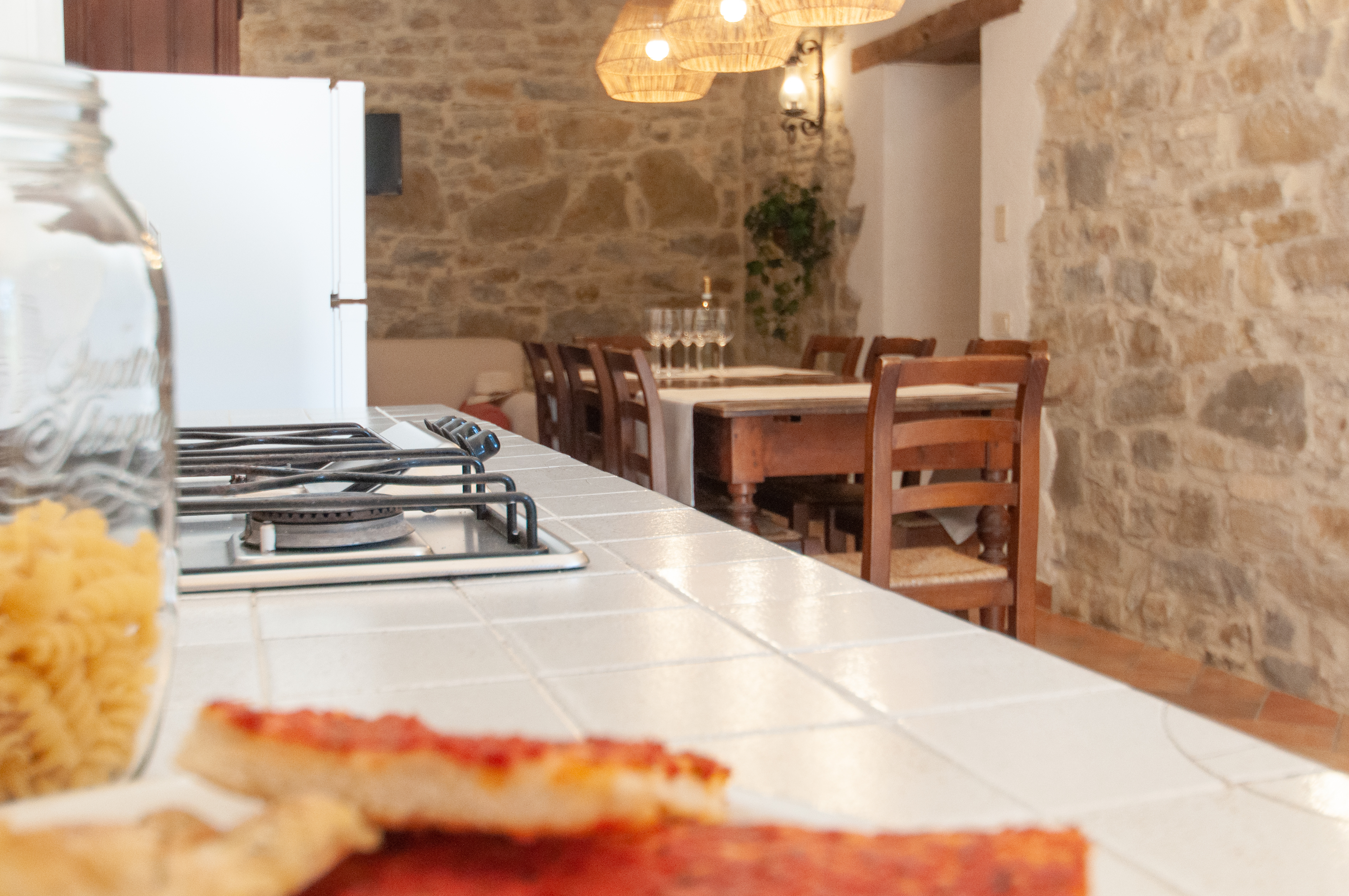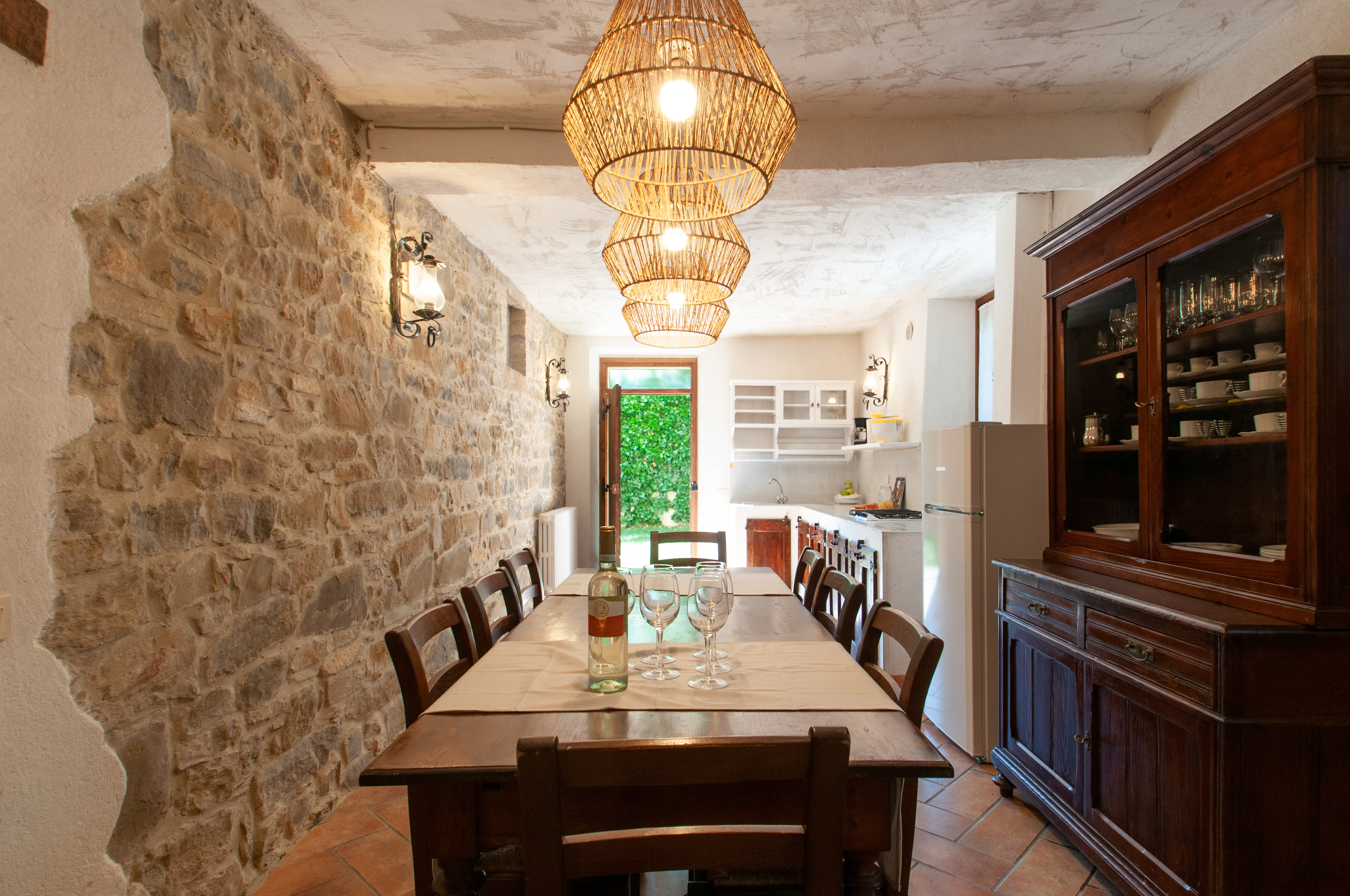 Wireless Broadband Internet, Child's high chair, Cooking utensils, Dishwasher, Kitchen stove, Oven and Refrigerator, Central heating, Charcoal grill BBQ, Deck chairs, Private Garden, Private Terraces and Fenced pool, Parking