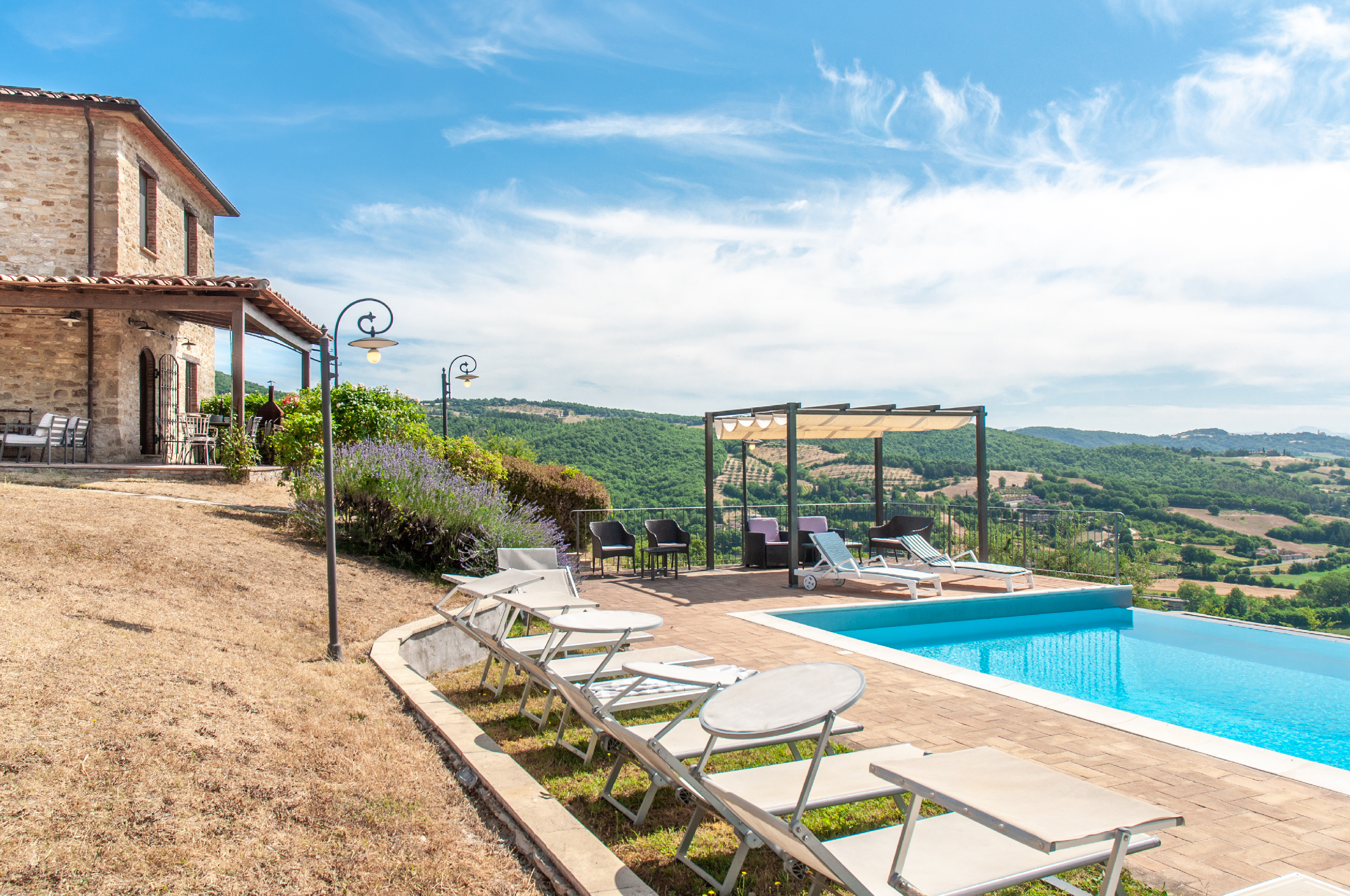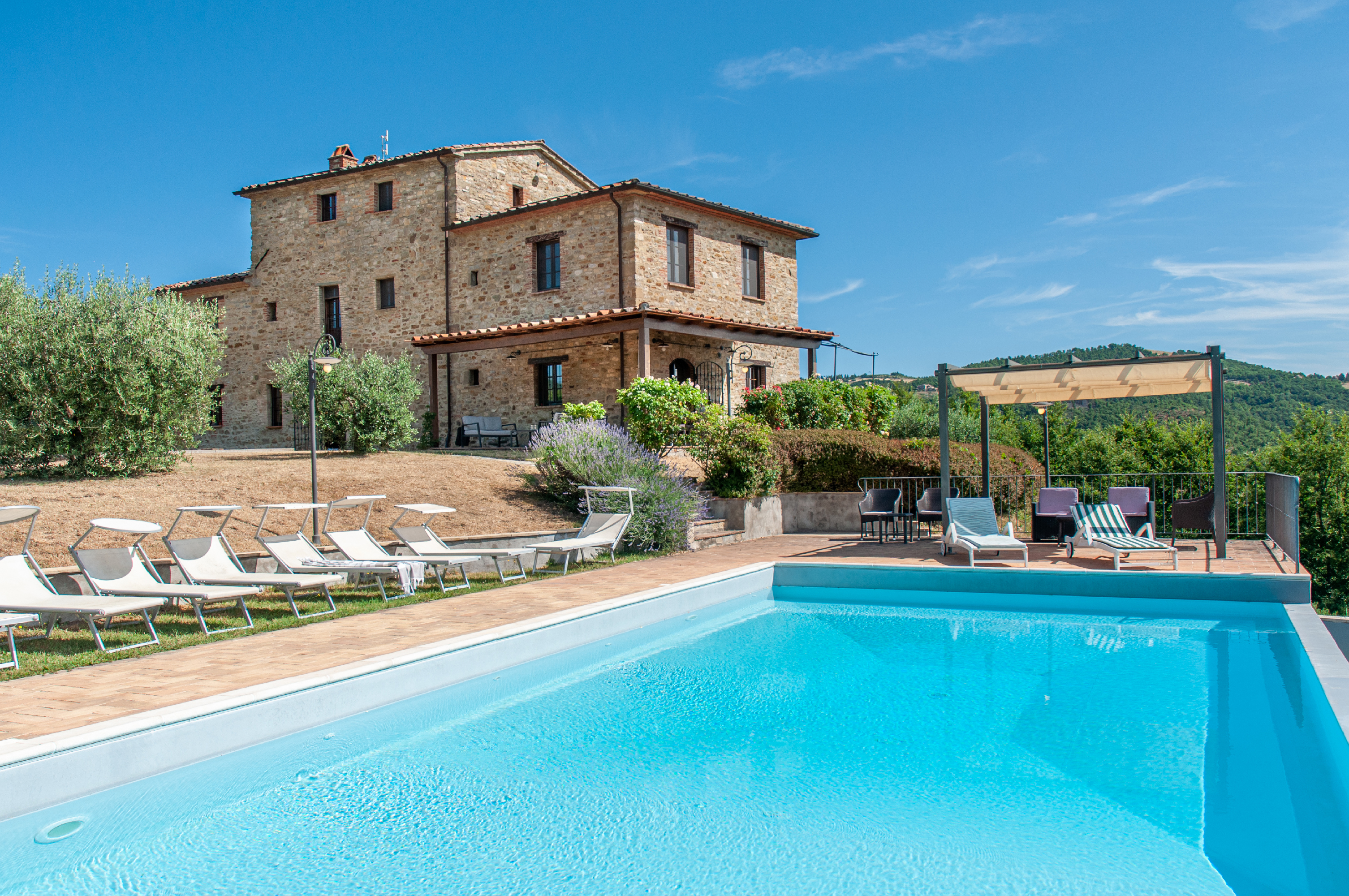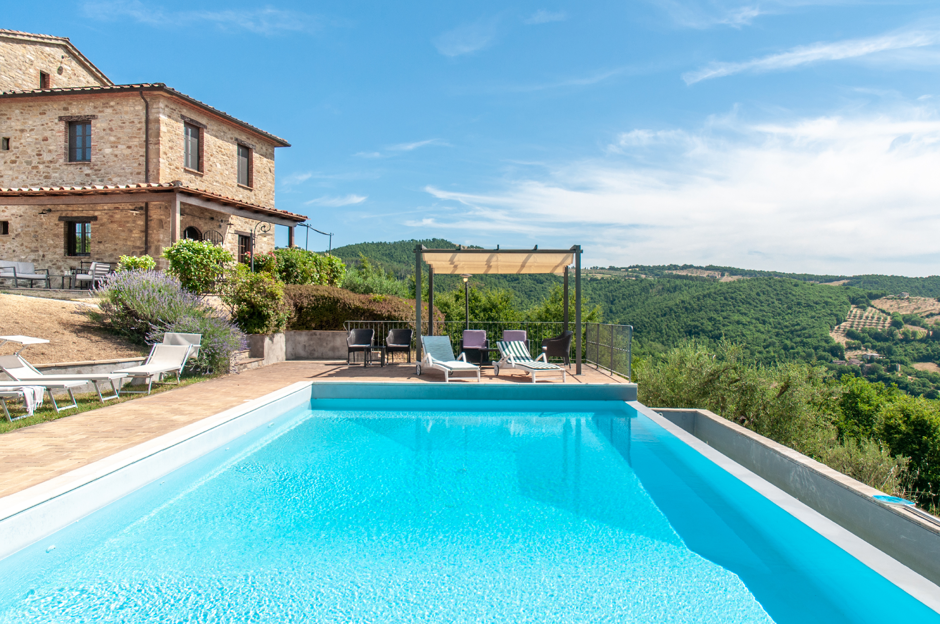 This luxury vacation home with beautiful views, private panoramic swimming pool and fortified walls is situated in the area of Città di Castello. The location between Perugia and Arezzo is ideal to explore both Umbria and Tuscany or to just relax by the pool with your family or friends.