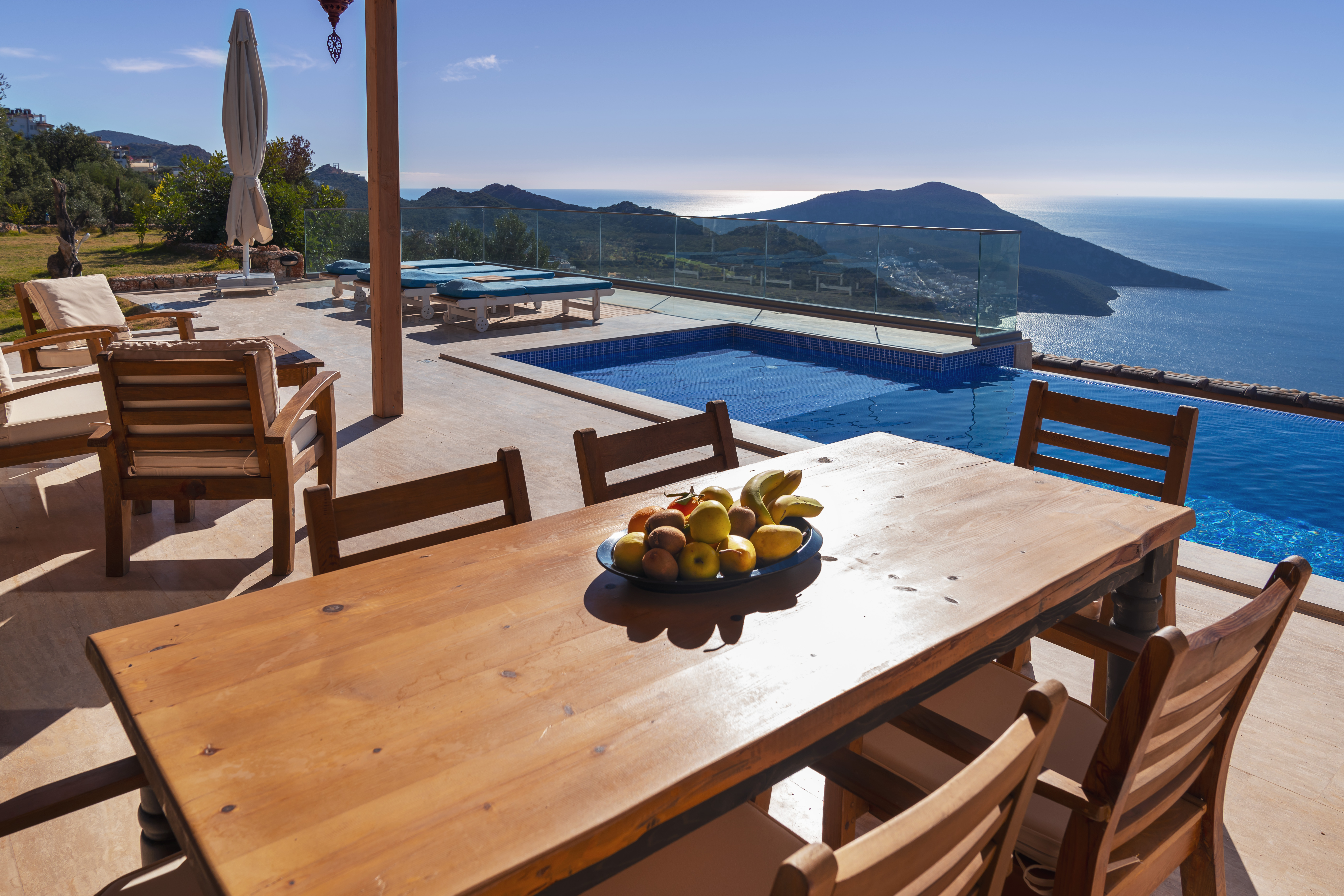 The property has been tastefully furnished giving it a wonderful character both inside and out. The pool terrace is substantial, with alfresco dining and sunloungers for 6 - all with the inspirational panoramic views of Kalkan Bay.