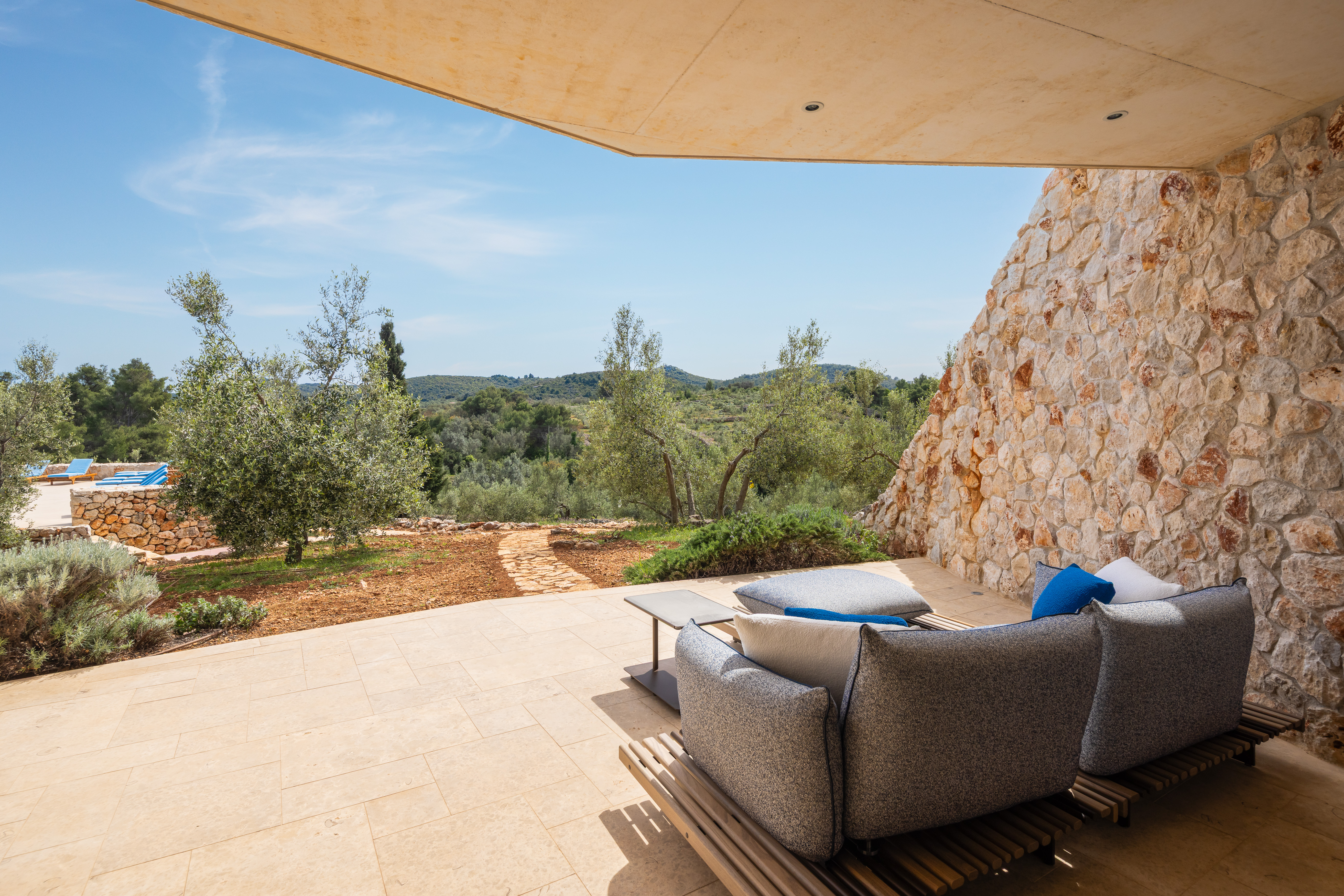 Just 8 deluxe suites are serviced by a team of 29 staff who are tasked with making every guest feel totally relaxed and comfortable on their individual Dugi Otok journey. They are all built from stone harvested from the award-winning olive grove and the suites all feature designer furniture in perfect sync with nature.