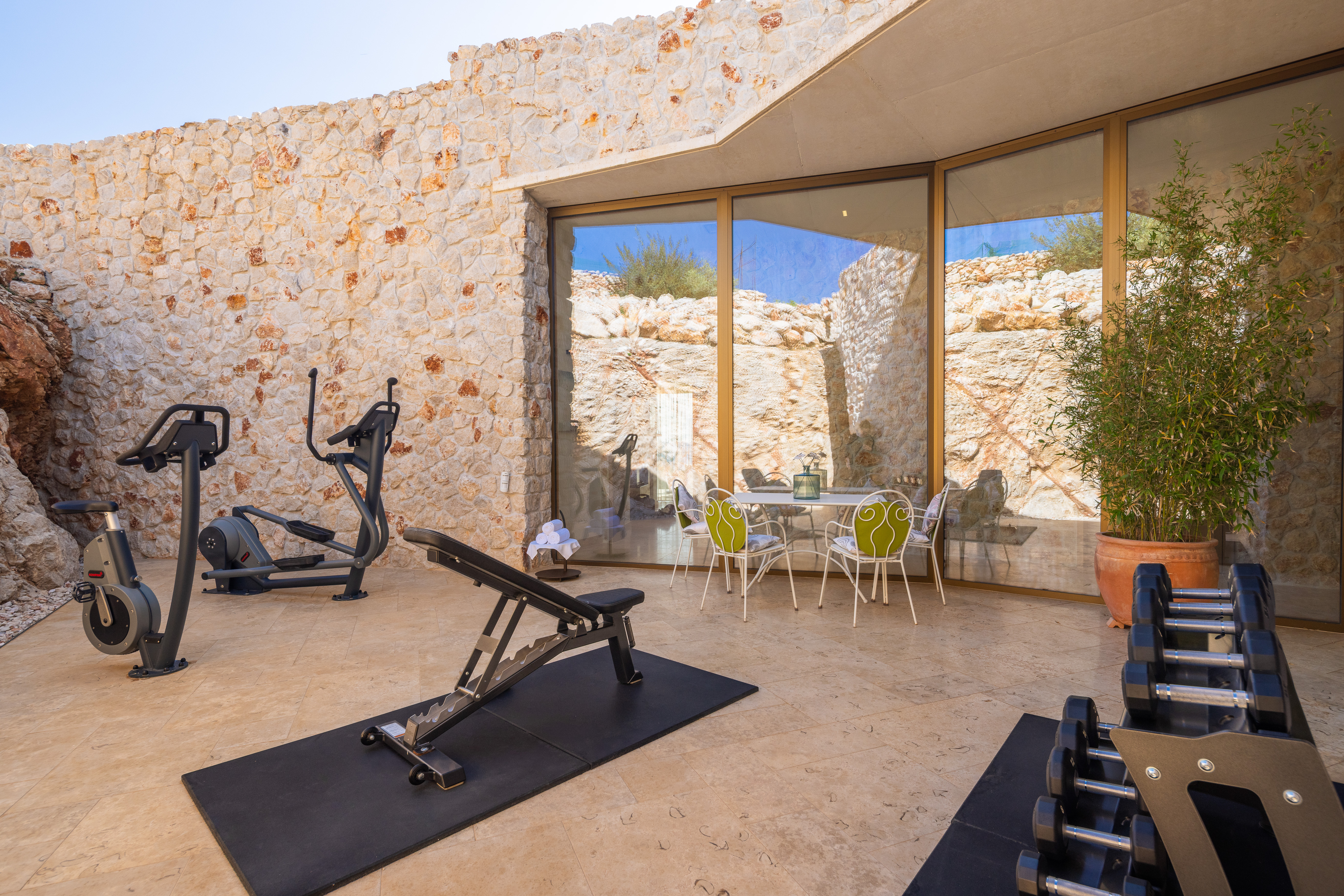 Guests are able to lounge on sunbeds shaded by pristine white awnings that surround the turquoise moisaic tiled infinity pool and enjoy the magnificent sea views. Footpaths lead through the olive groves past the tennis court down to a small pebble beach. Spa treatments are available along with a sauna, hot tub and small outdoor gym. Private skippered sailing trips and fishing can also be arranged.
