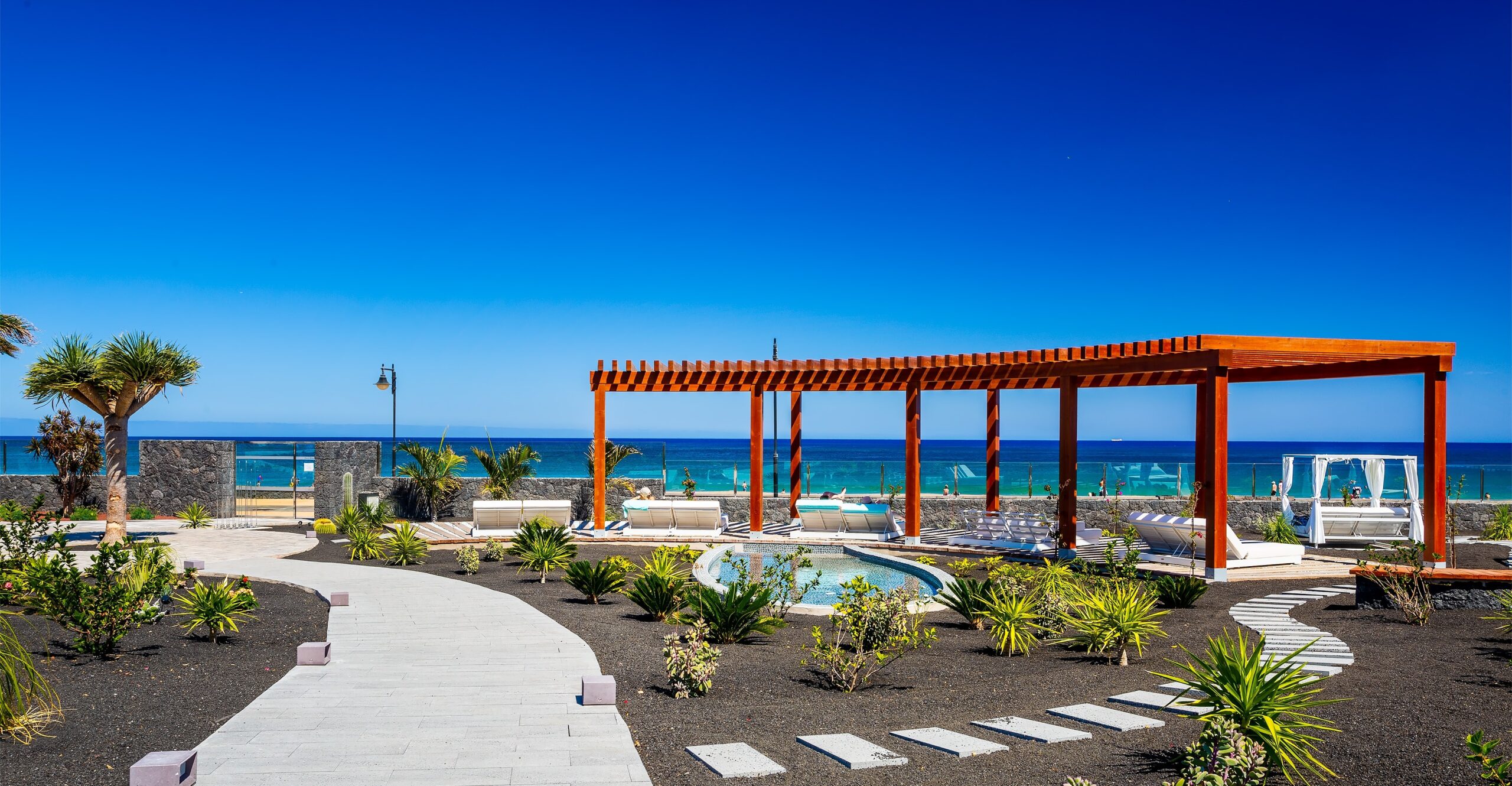 Opened in 2018 the Hotel Lava Beach is as close to the beach as is possible to get. The centre of Puerto del Carmen with all of its shops, bars, restaurants and the old harbour is around 2km from the property along a mainly flat sea-front promenade and the airport is just a short 10 minute transfer.