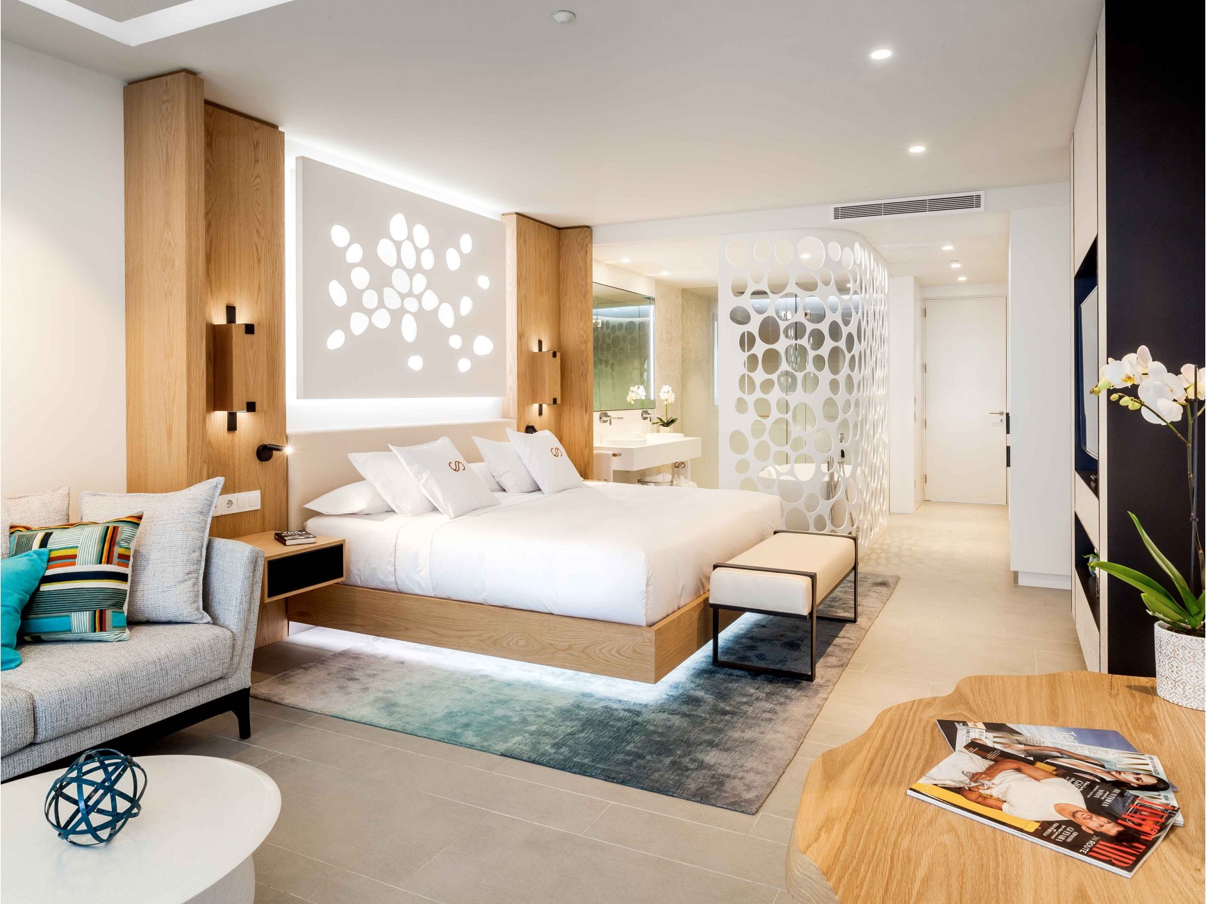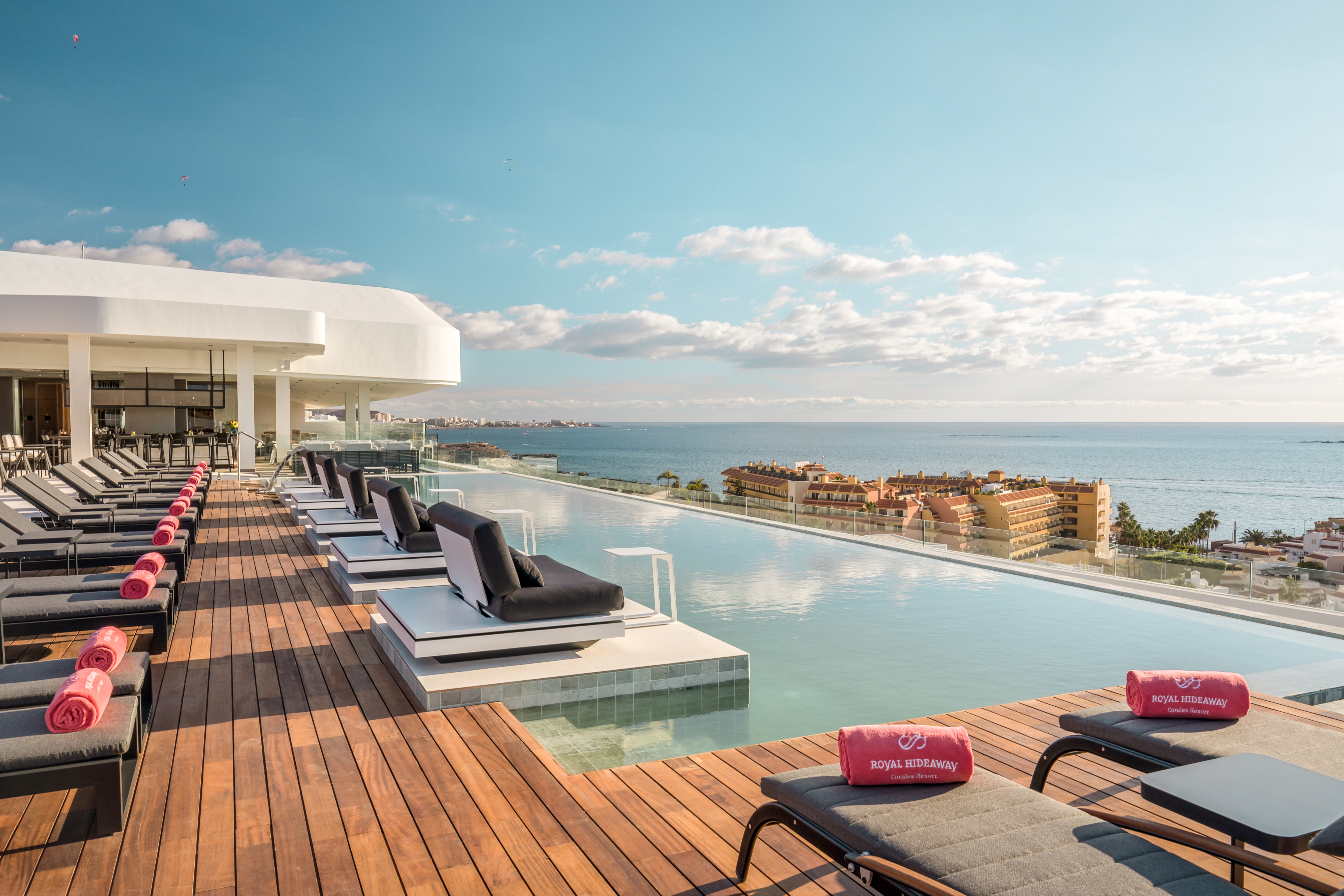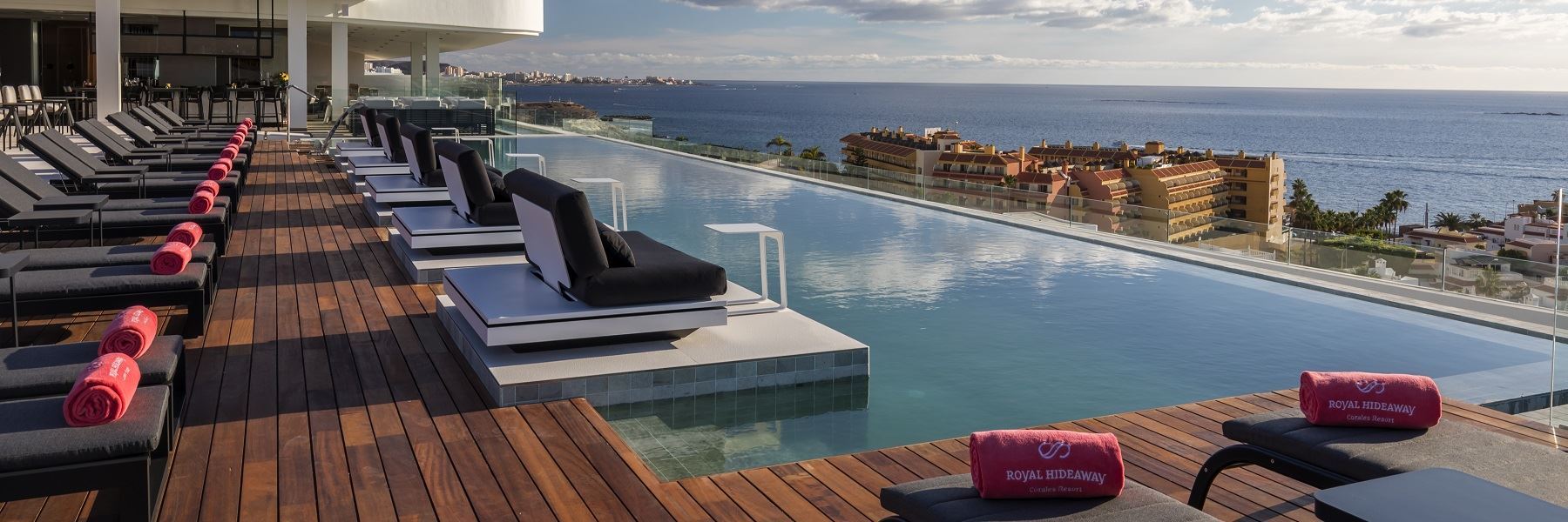 Located on the Costa Adeje, an area that receives over 300 days per year of sun, the striking luxury Royal Hideaway Corales Beach is reminiscent of a sleek cruise ship and is considered among the top hotels in Spain and awarded on a global level. Designed by renowned Tenerife architect Leonardo Omar, the interior of the hotel is inspired by the island’s marine coral.