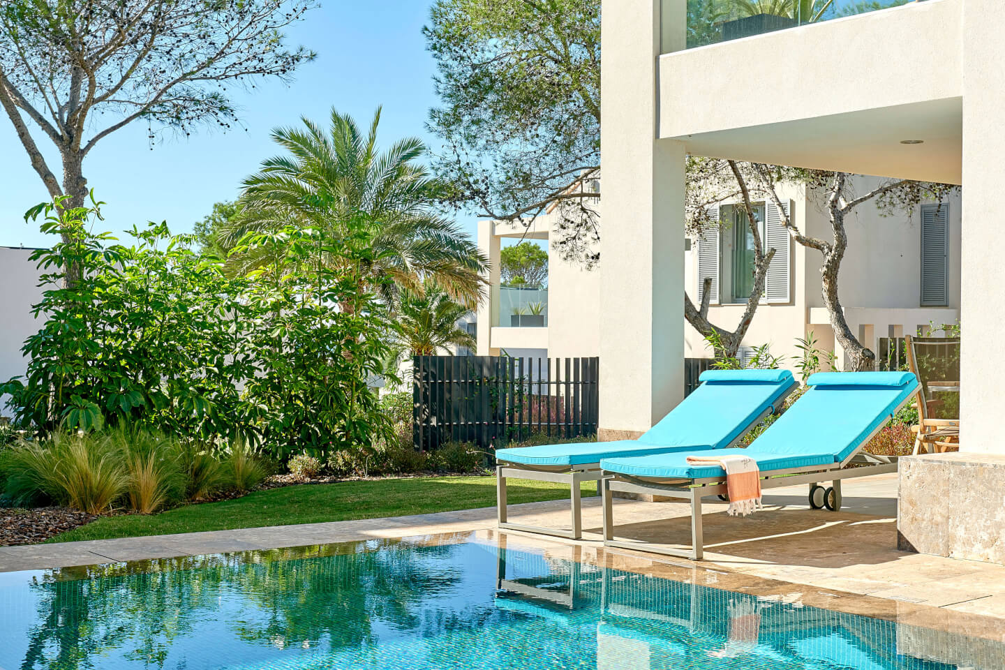 The high-end contemporary feel invokes an atmosphere of exclusivity with superb attention to detail and service. The two areas here (one for families and one for adults) are within a 10 minute walk of the beach and both offer superb sea views out to Es Vedra – perfect to enjoy one of the best sunsets possible. Spacious rooms are set across 3 areas – The Cliff, The Laguna and the Ibicenco Village. All are beautifully decorated with all amenities necessary for the most relaxing of stay. Some even offer direct access to shared swim-up pools.