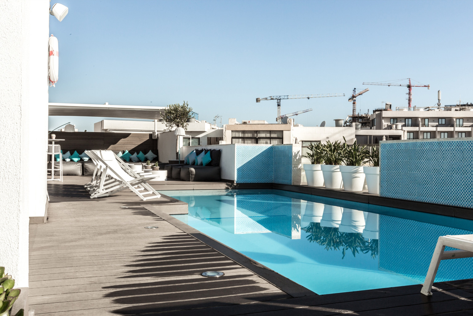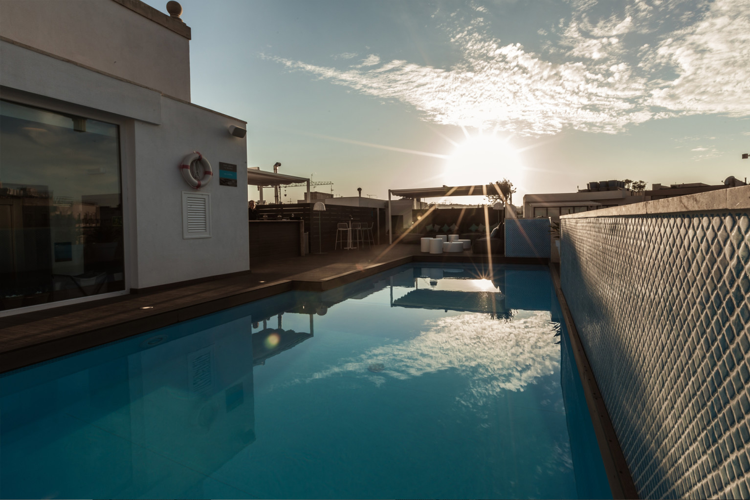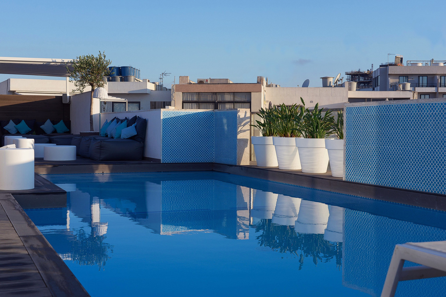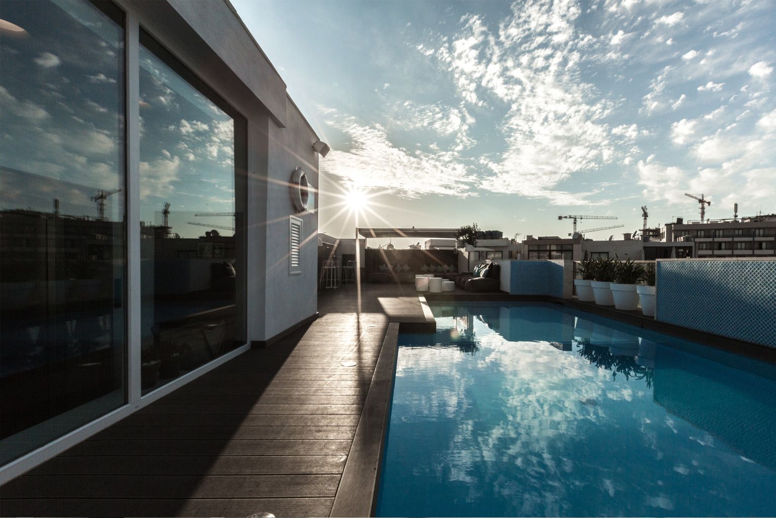 Communal rooftop swimming pool, restaurant, bar