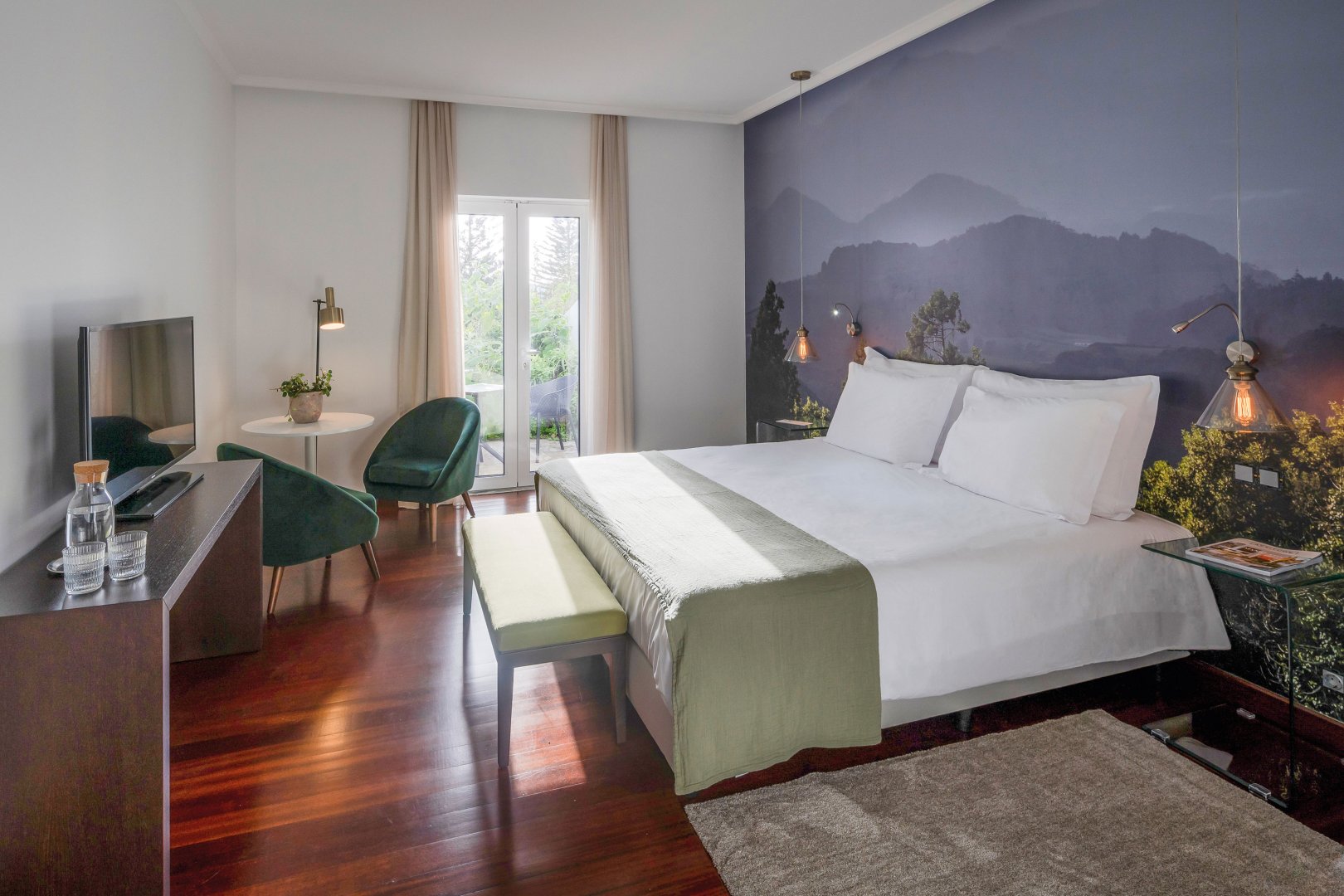 The hotels restaurant and bar offerings offer classic cocktails and tapas at the rooftop Mirante and a menu at the main Magma restaurant which changes to make the most of seasonal produce from the farm and the surrounding areas