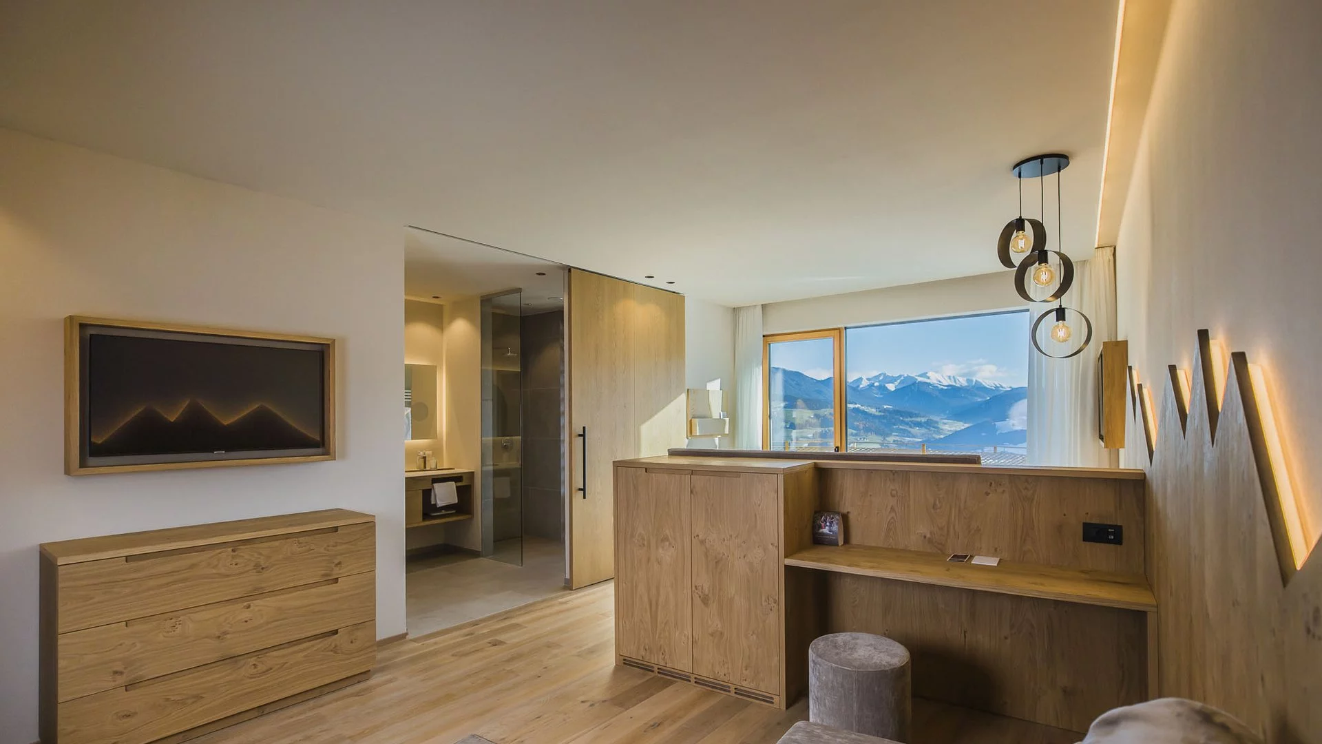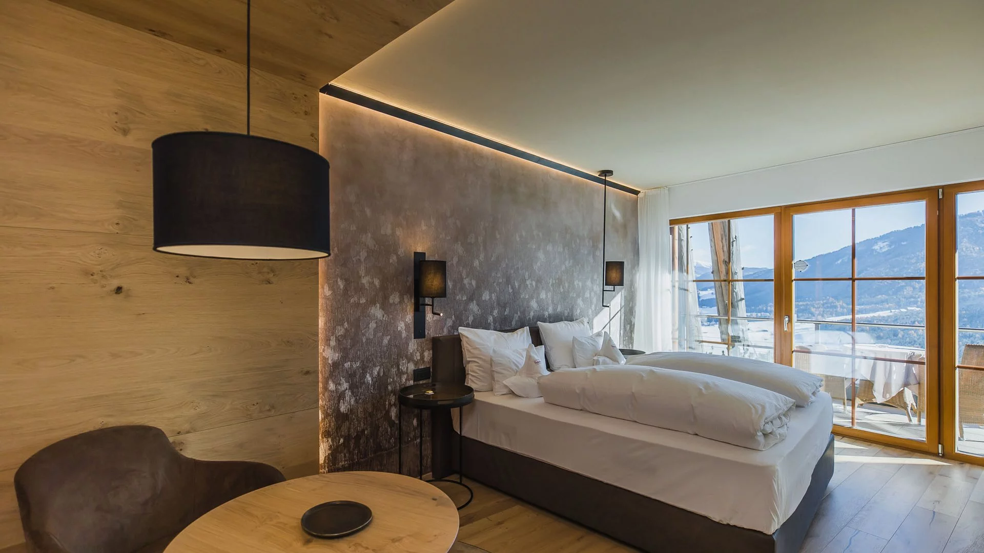One hotel – many places to eat and drink. The restaurant area is made up of 8 rooms that each have superb and unique valley views. The fireplace room is filled with comfortable armchairs and offers a place to enjoy doing nothing and just being at one with the surroundings. The H-Lounge bar is a place to linger with after dinner drinks or fine wines from the cellar. The terrace areas are a perfect place to enjoy the sunset with pre-dinner drinks or just enjoy the views from during the day with a coffee. Every Tyrolean house has what is known as a Stuben – they tell the history of the farm and the buildings. The Farmers Room has bleached wooden walls that are quintessentially a mountain hut – it’s a delightful place to enjoy an afternoon snack.