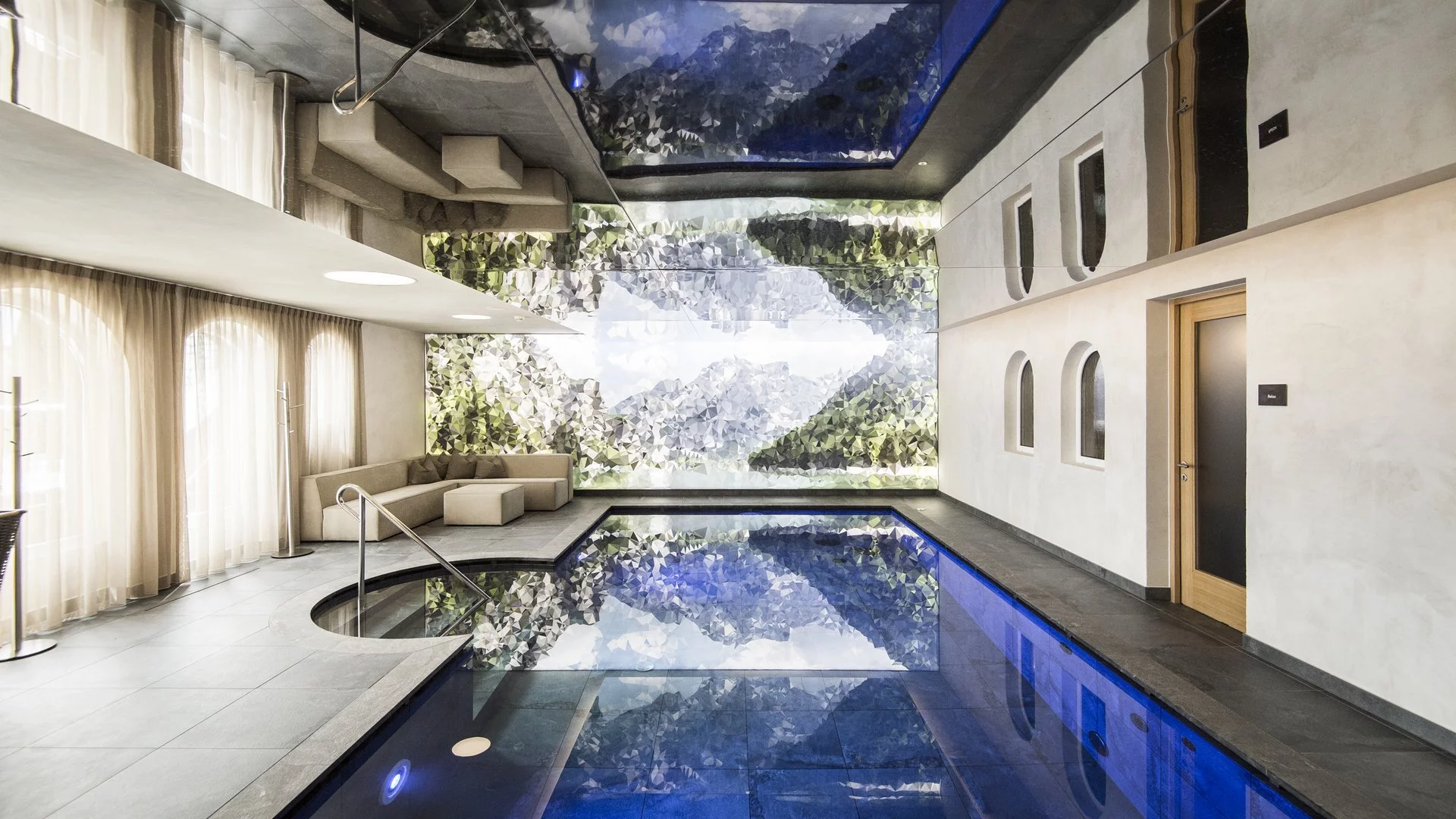 Outdoor infinity pool, outdoor relaxation pool, brine flotation pool, outdoor whirlpool, indoor adventure pool (all heated)