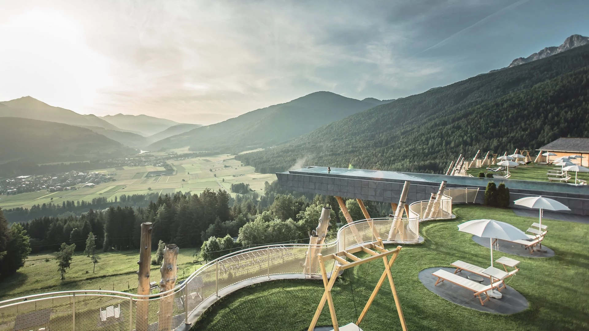 The hotel’s Sky Pool is a cantilevered structure that stands 12 metres high and projects 25m out from the building. It is an infinity pool that blurs the boundaries between water, surrounding landscape and endless skies and has a glass bottomed section that only enhances the feeling of defying gravity. The Sky Spa is known as Heaven and Hell and turns wellness on its head – literally. The spectacular free-floating steel platform is also cantilevered out from the structure of the building. Enjoy the views over the fascinating rock formations whilst relaxing in the whirlpools and chillout areas on the upper level – heaven. Alternatively, descend into hell where there are two nude saunas, a nude whirlpool and an ice room. The Alpenreych Spa offers a full selection of massage and full body spa treatments. The Alpenreych and Hubertus Parks between them contain no less than five outdoor pools, log cabin sauna, panoramic sauna and dolomite cave steam bath which allows any guest to totally relax and be immersed in the soothing silence of the surrounding mountains. For the more active there is a well equipped outdoor fitness studio as well as an indoor fitness/gymnastics room. The hotel also runs an exercise and relaxation programme through the week including activities such as water aerobics, circuit training, pre-ski-ing stretching, yoga, pilates and more.