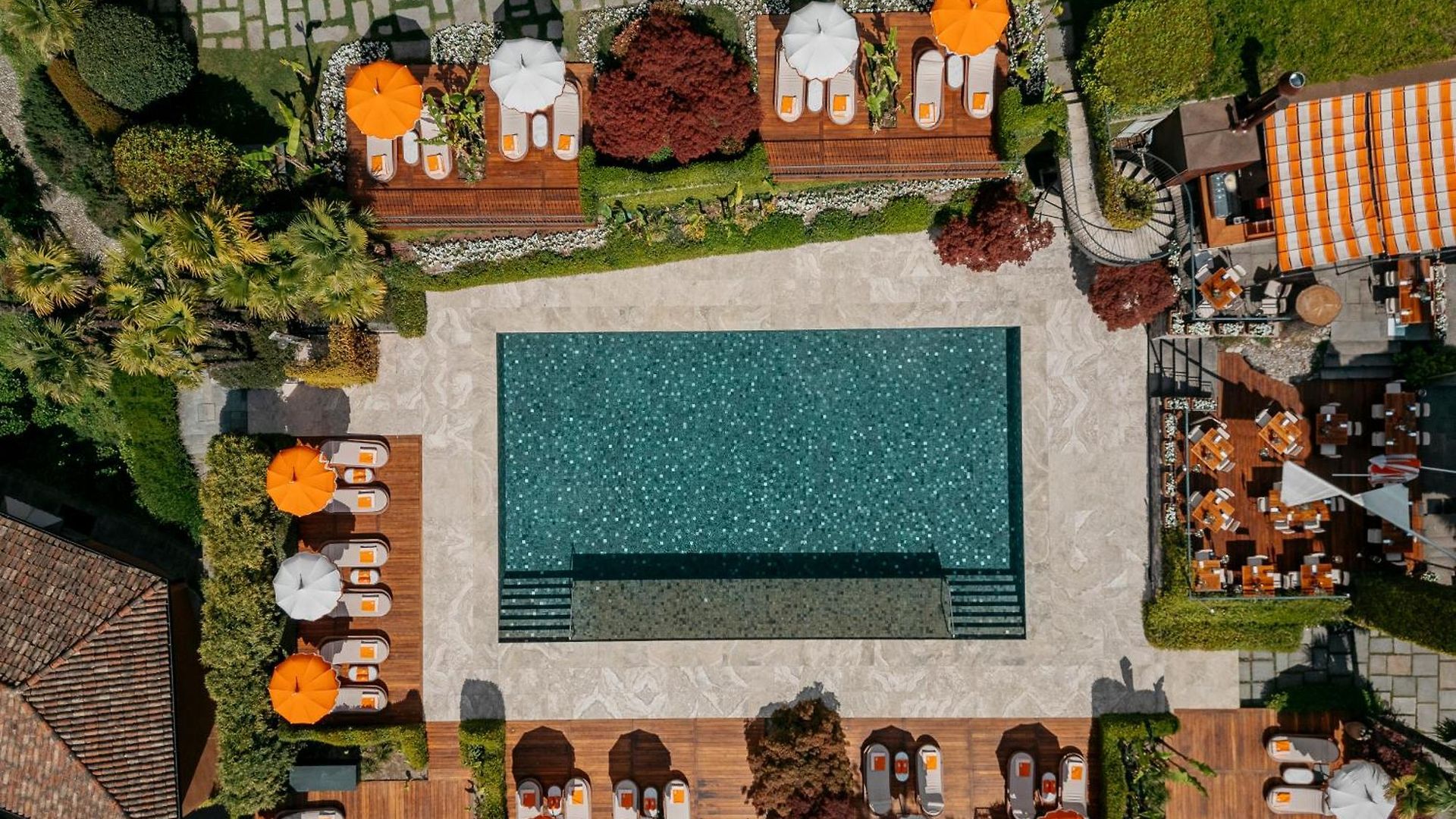 The 75 rooms and 15 exclusive suites (including 5 ultra-exclusive rooftop suites with private terrace and outdoor jaccuzzi) here are set over 5 floors. All provide extremely high levels of comfort in a Liberty style with vivid splashes of colour throughout. Each has a window or balcony overlooking the hotel lush gardens or for a supplement out over Lake Como.