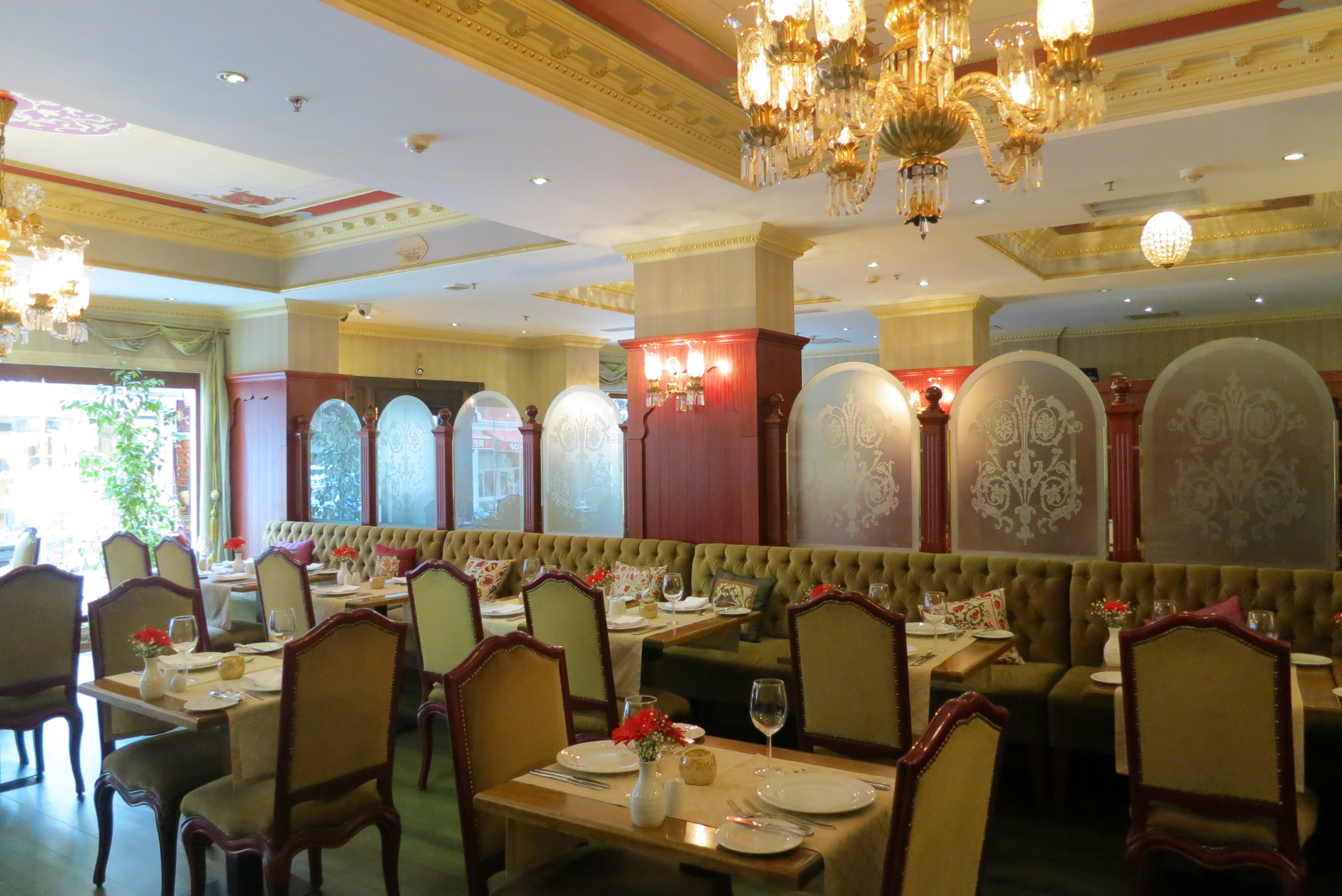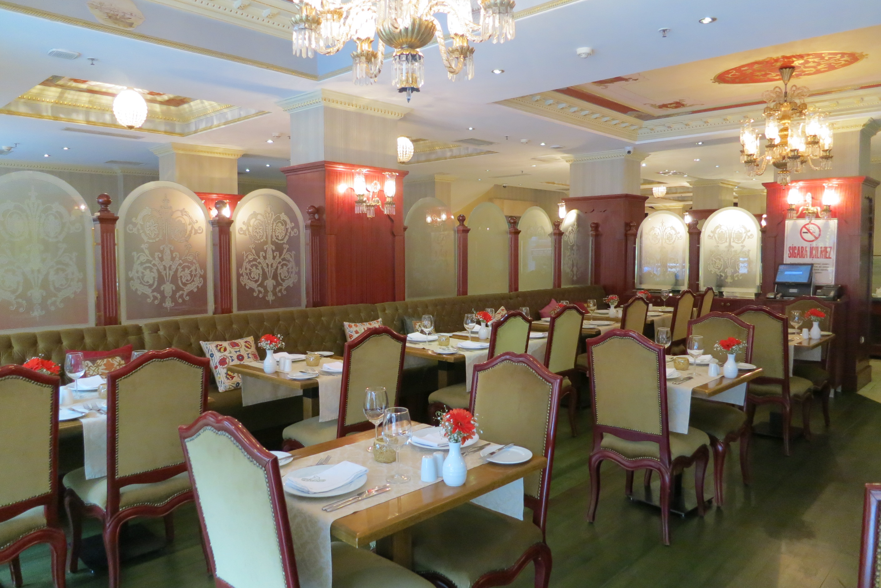 This is such a charming hotel, the exterior resembles the traditional 19th century Ottoman mansion and is festooned with flowers, the public areas are spacious and comfortable and all give a nod to the splendid Ottoman history of the area. An open buffet breakfast is served in the Neyzade Restaurant which also offers lunch and dinner. On the very top floor is a magnificent terrace with fantastic views over Gulhane and to the Bosphorous.