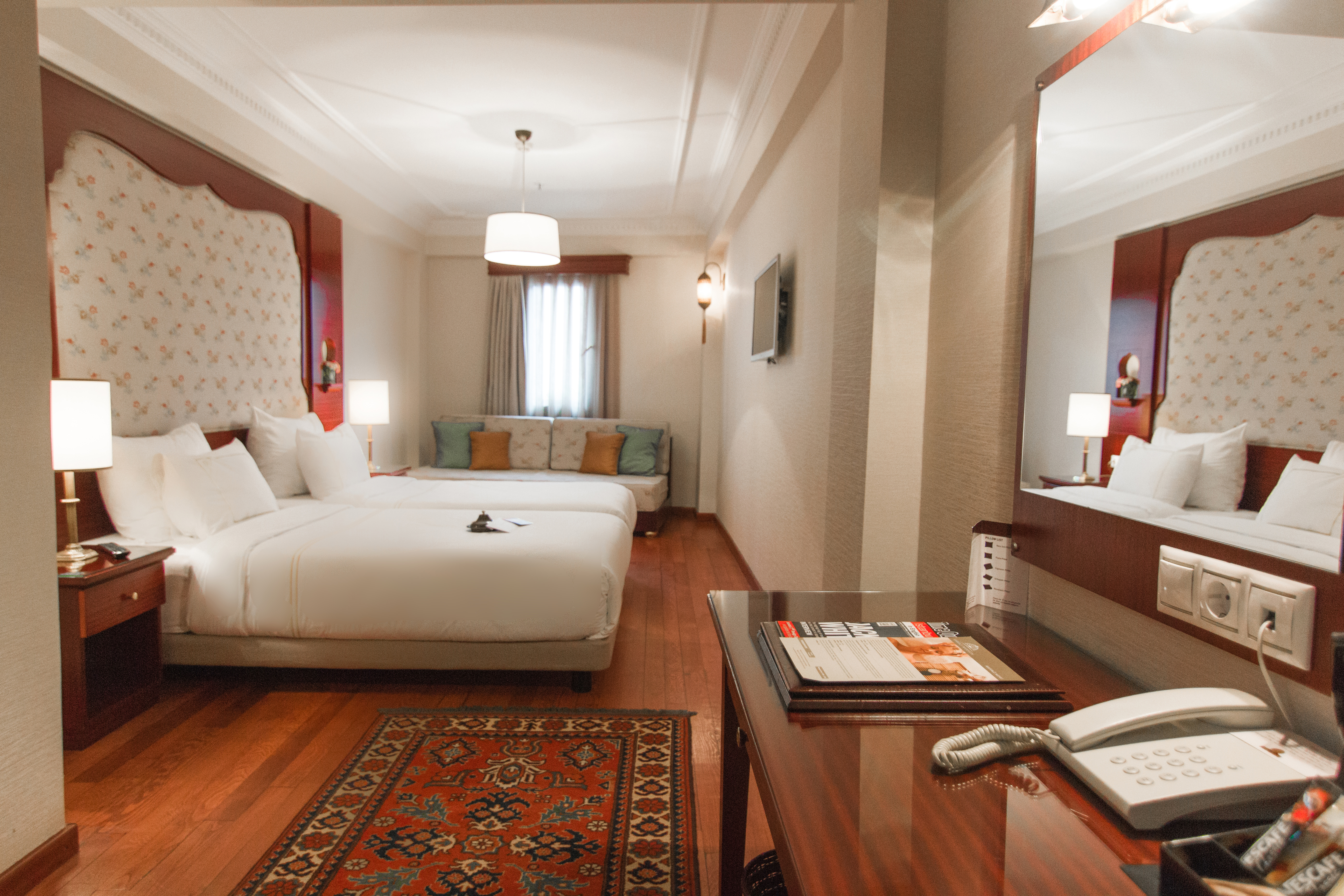 Deluxe Rooms offer twin or king size beds and a divan which can also be used an extra bed and a superb spacious balcony overlooking Gulhane Park.
