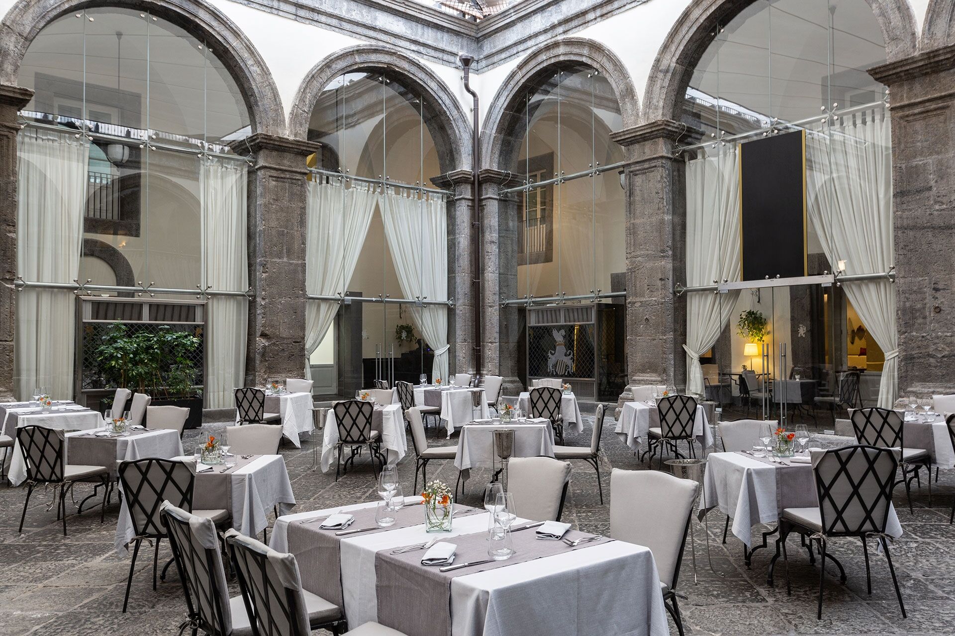 Food and drink remain an important part of the hospitality of Palazzo Caracciolo with a lovely café overlooking the cloister and the garden along with two different restaurants where guests can immerse themselves in a gastronomic journey of Neapolitan cuisine.