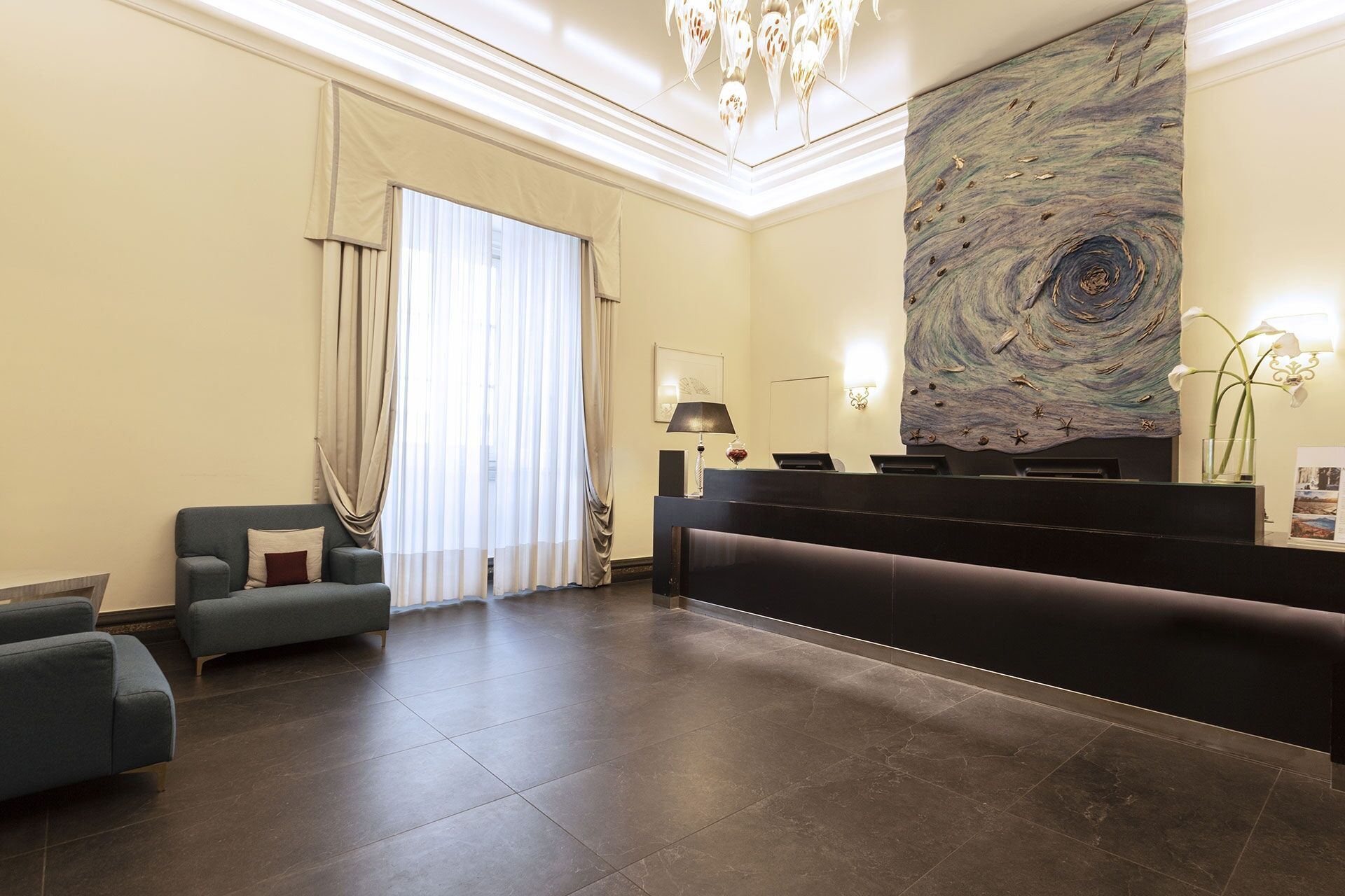 The pièce de resistance of the hotel today is the wide monumental staircase which is of great architectural significance. On each floor is a carpet of majolica tiles base don original drawings by Eduardo Alamarao dedicated to the muses and to beauty. These tiles capture the sense of tradition of the building and combine it with contemporary innovation and sensibility.