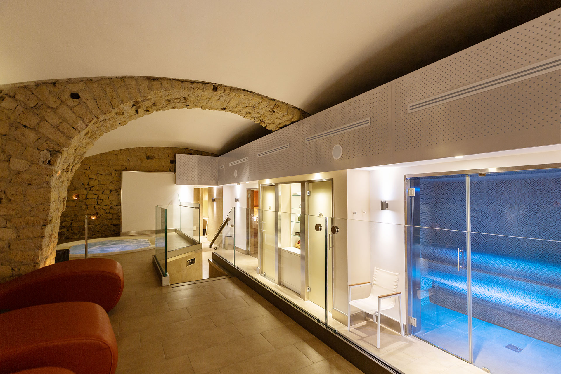 Each of the 145 rooms and suites is a combination of the ancient history of the building and contemporary hospitality requirements. The thick walls of the building make it inherently quiet and protected from the outside elements – cool in the heat of the summer and warm in the cooler months. The exquisite suites are in the noblest part of the building and elegant and refined offering stunning baroque coffered ceilings.