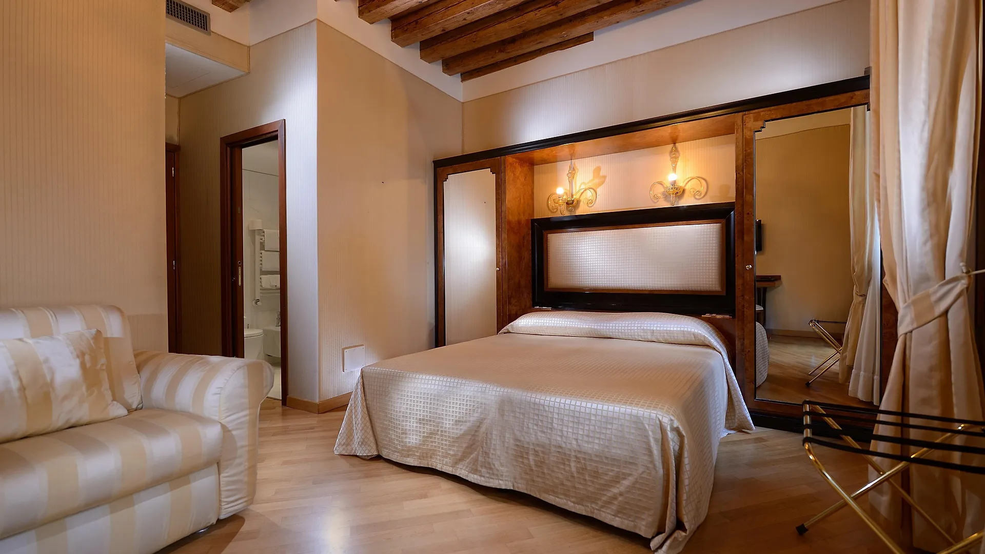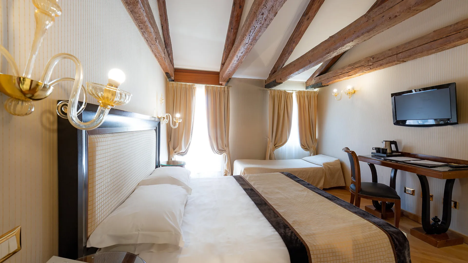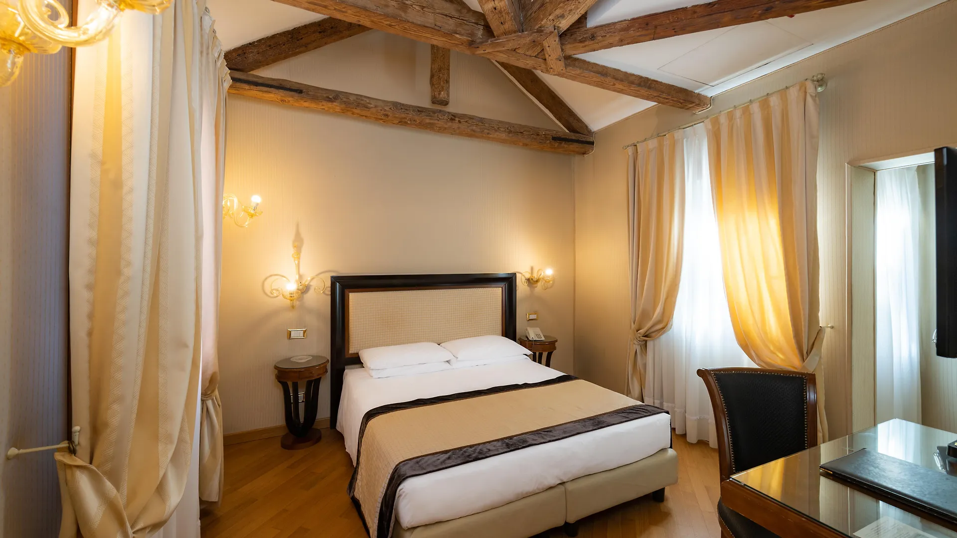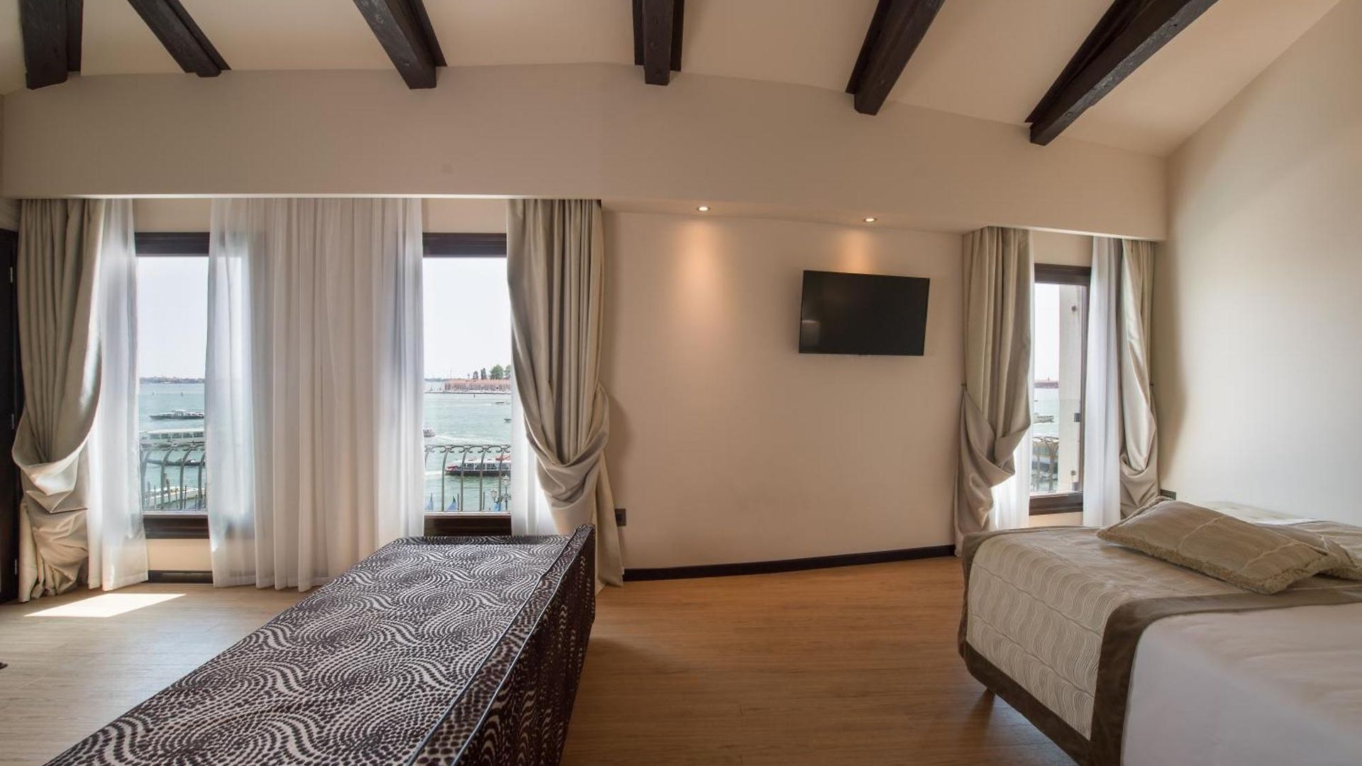 The roof terrace offers truly magnificent panoramic views over the city of Venice. All of this in a space crated from an ancient convent of Benedictine nuns.