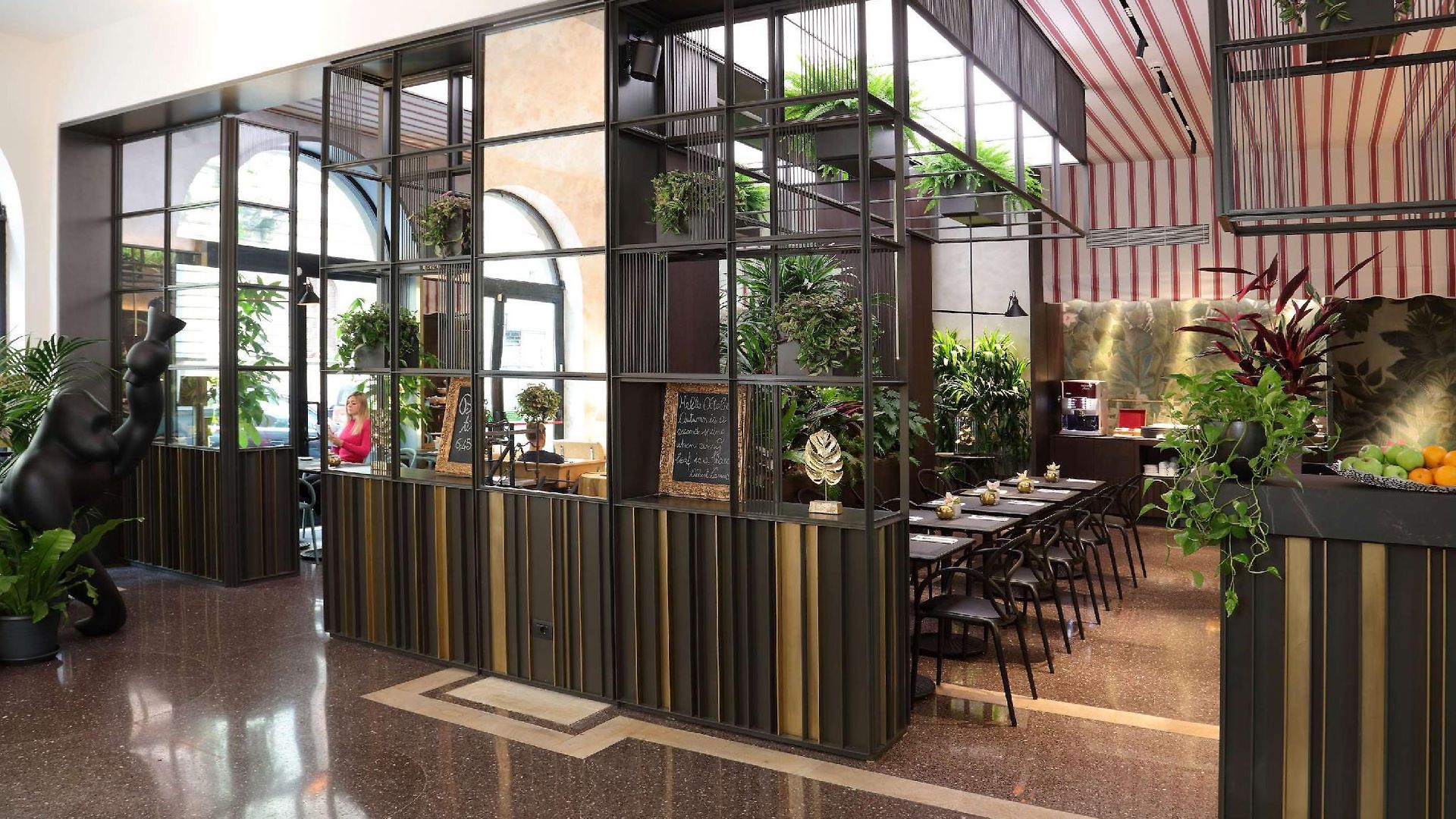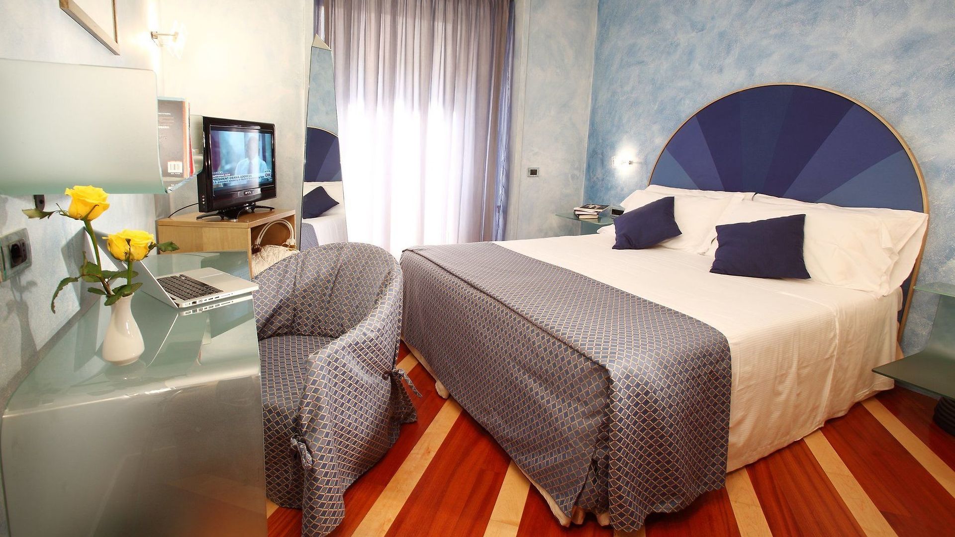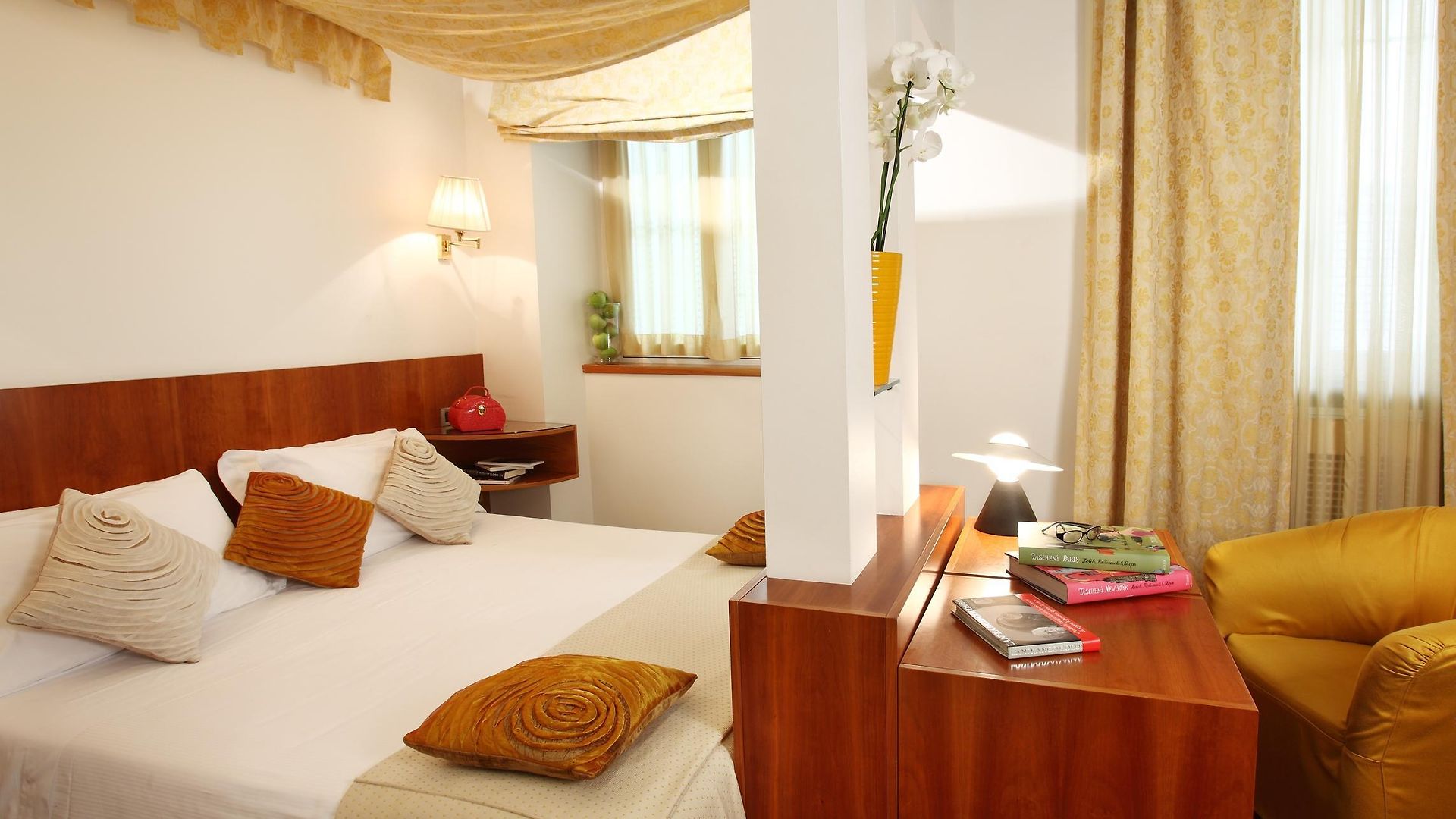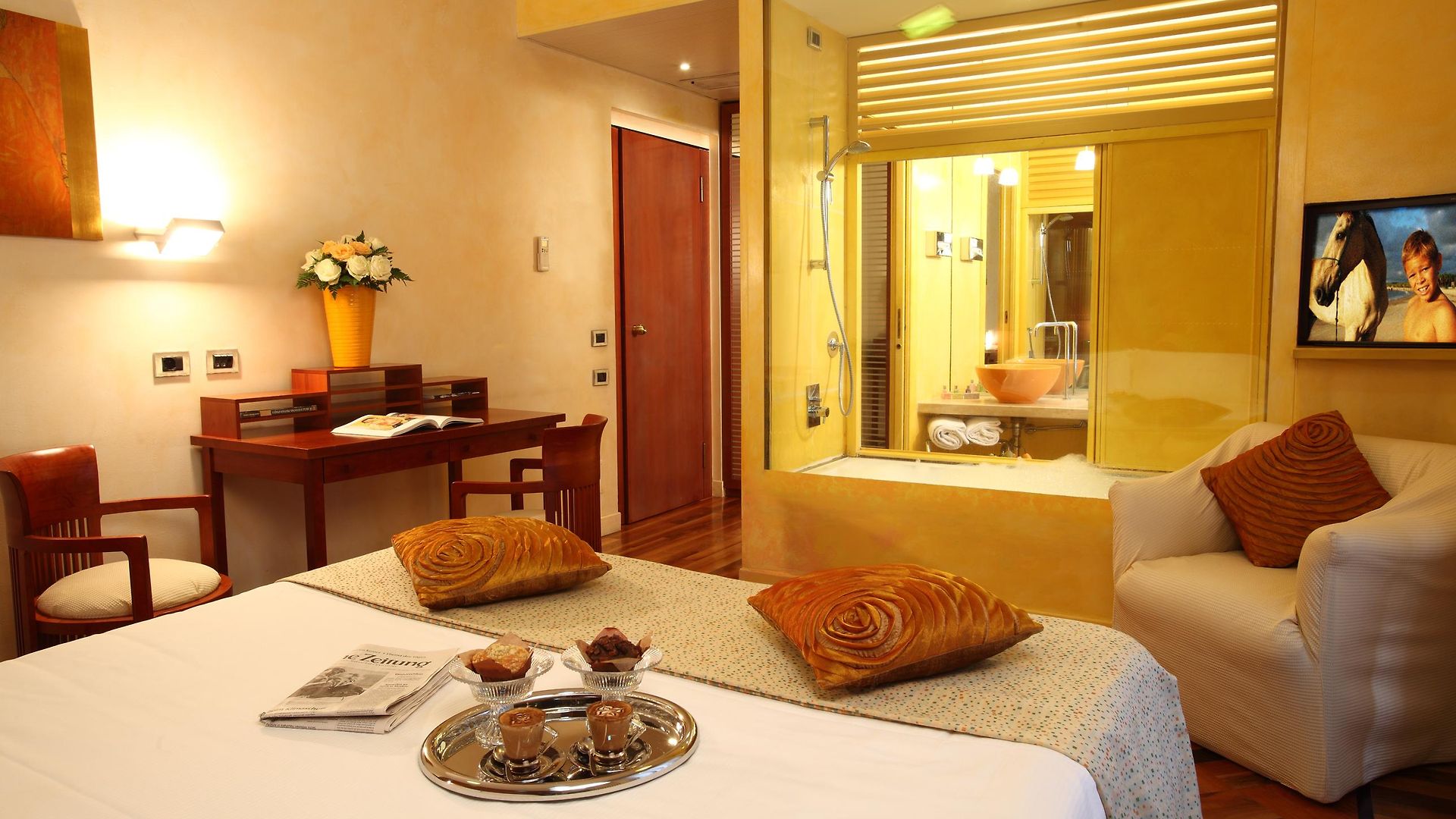 Italian style is easily recognisable throughout the public spaces of the property and the 79 guest rooms which are all defined by warm colours and elegant furnishings. To keep within the property’s philosophy of environmental sustainability, all walls are painted with eco-friendly water-based paint. Rooms have windows either out over the street or the internal courtyard garden from the windows. Triple rooms and the Sanpi junios suties have an additional bed making them suitable for up to 3 guests.