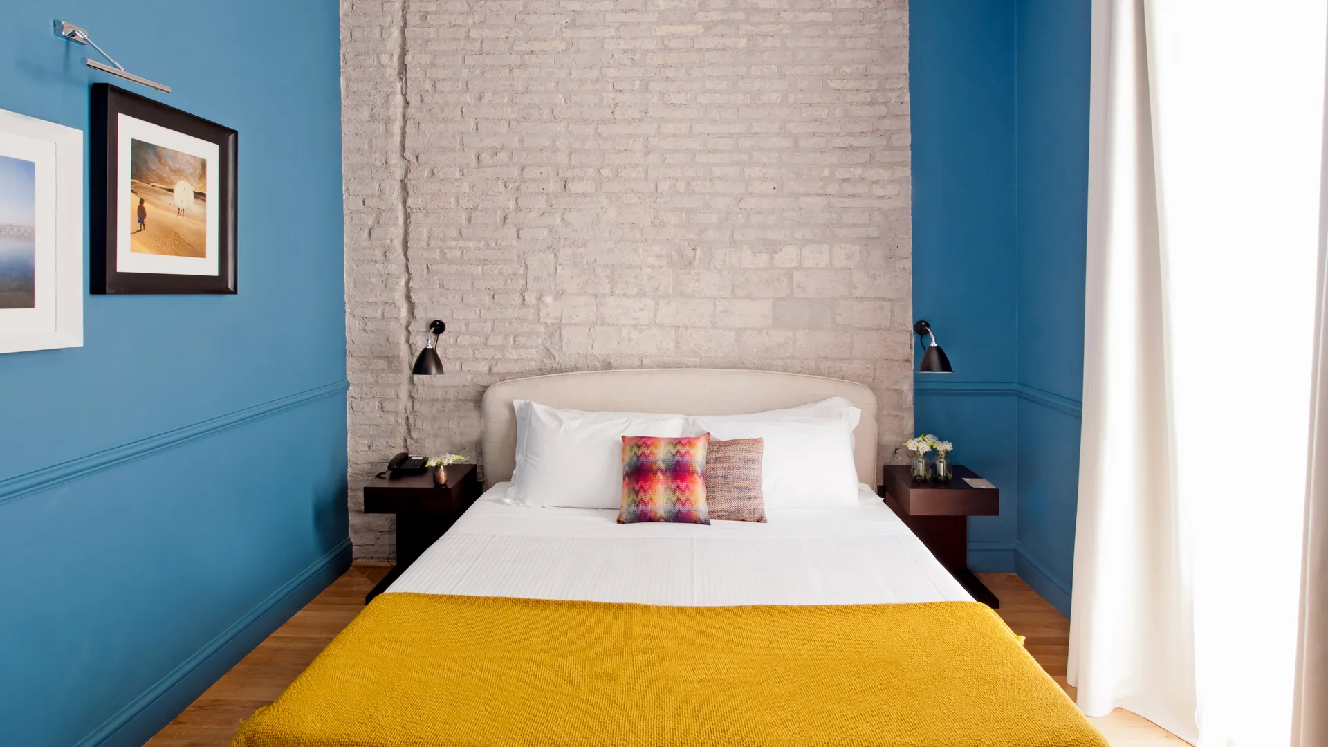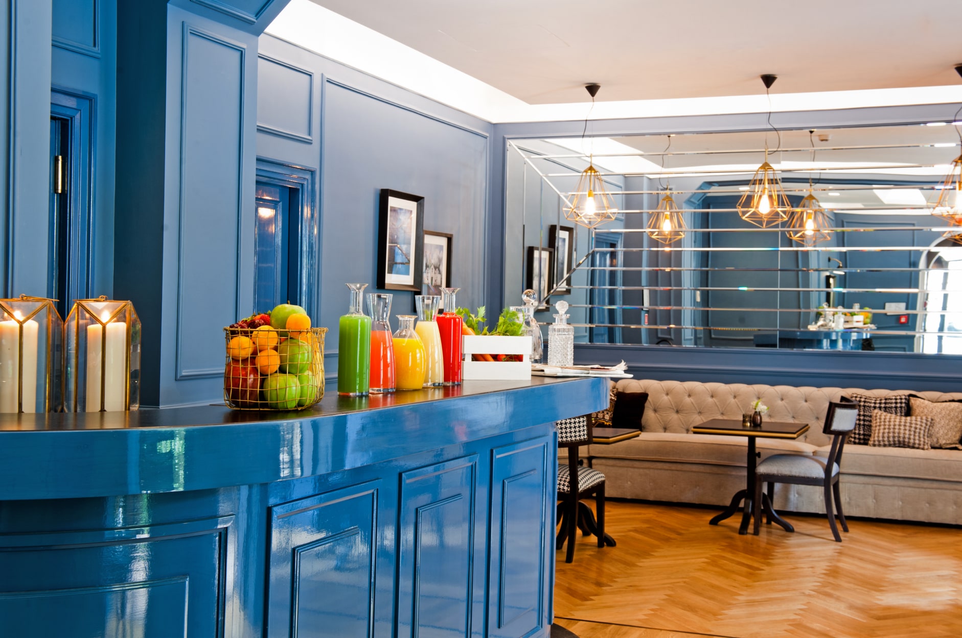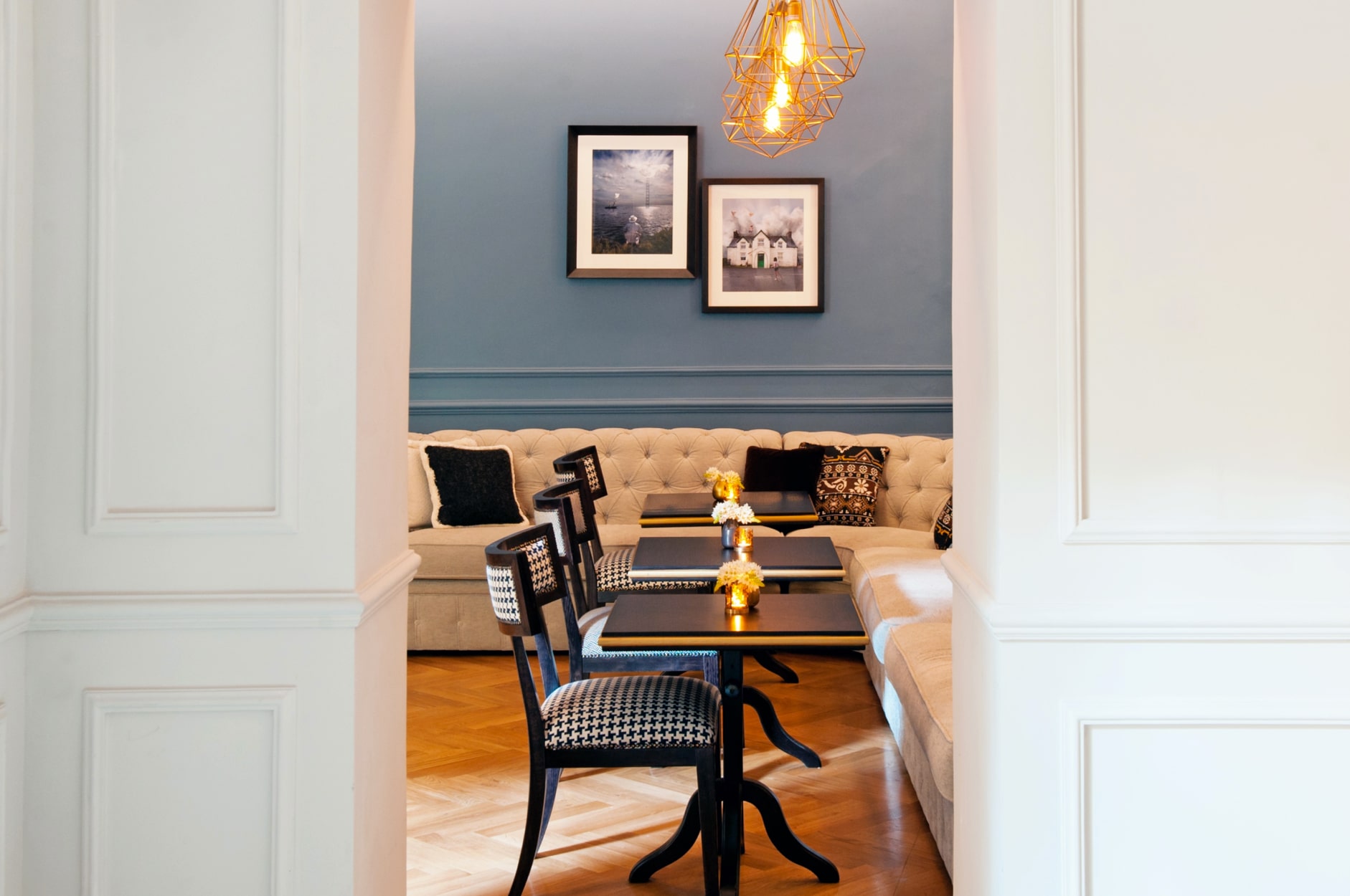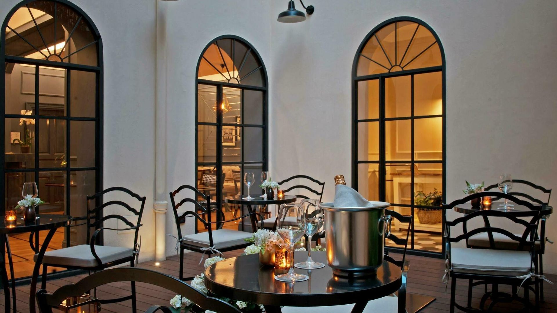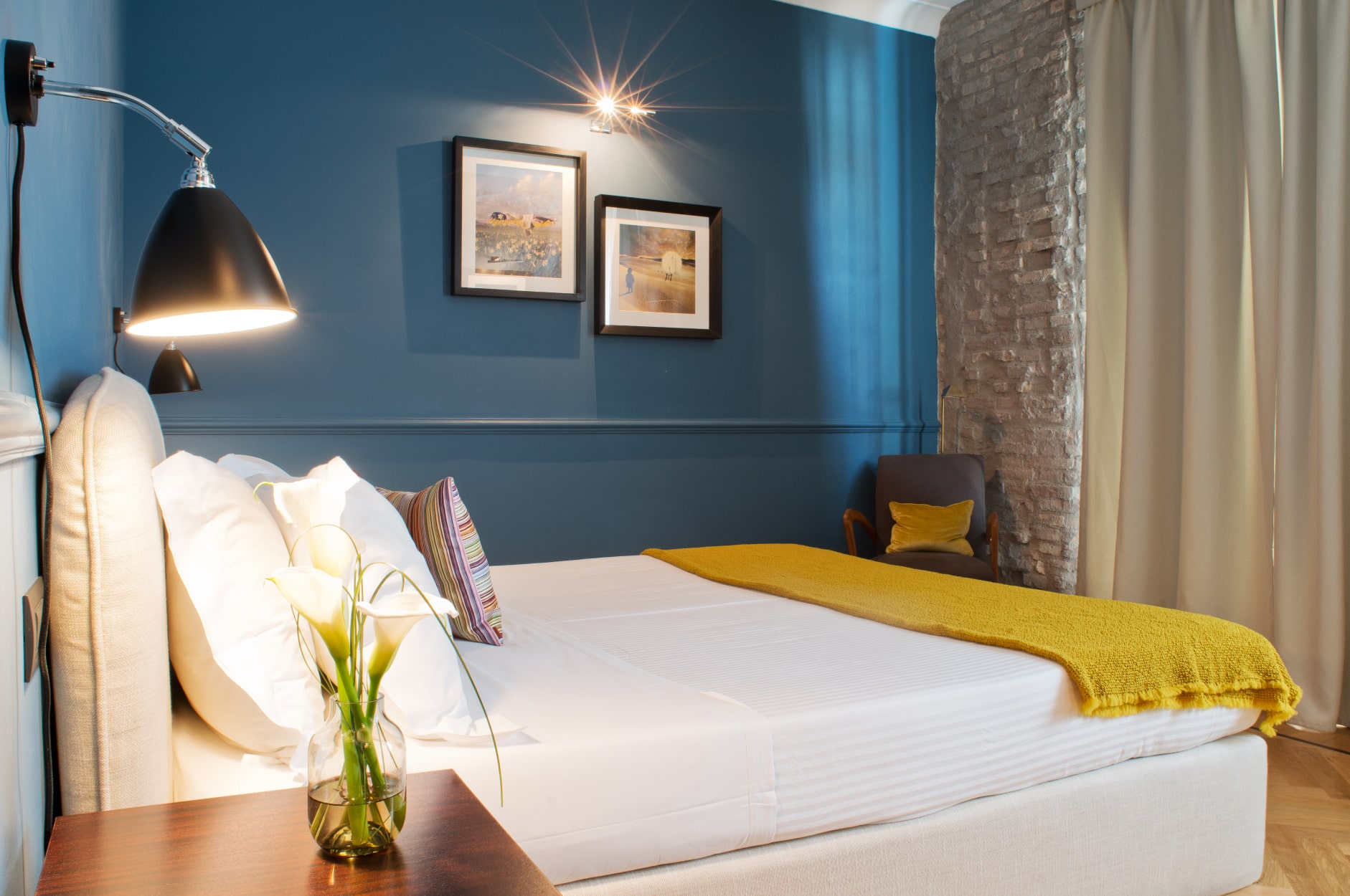 Most of the 15 rooms face the inner courtyard and are decorated in one of 3 shades – light parchment, soft grey or petrol blue. Some have exposed brickwork and all display a chic elegance. The Terrace Blue room has a small private terrace and Classic Light doubles offer the benefit of a shared terrace.