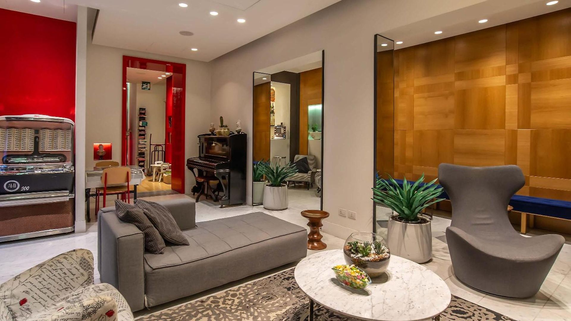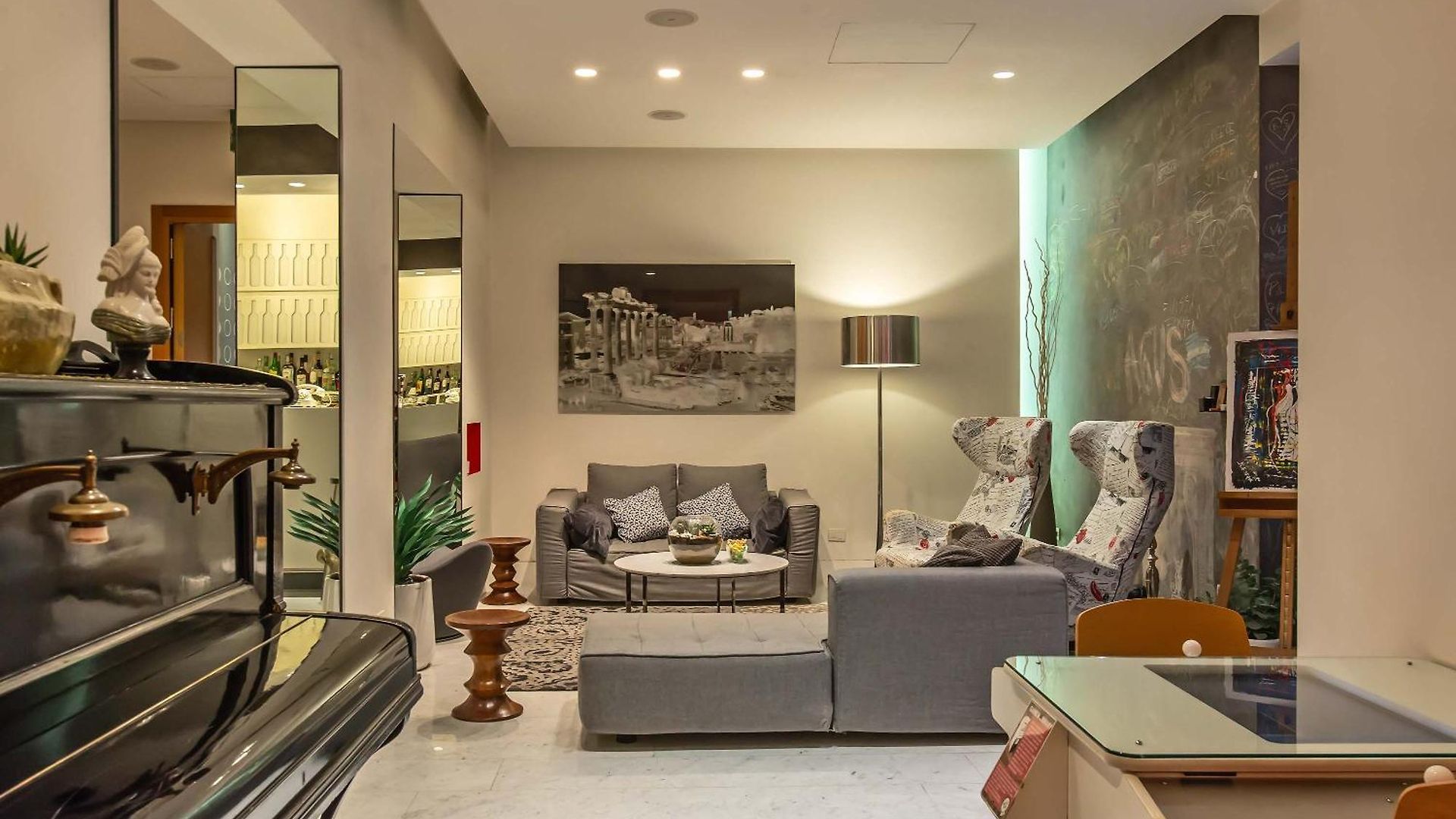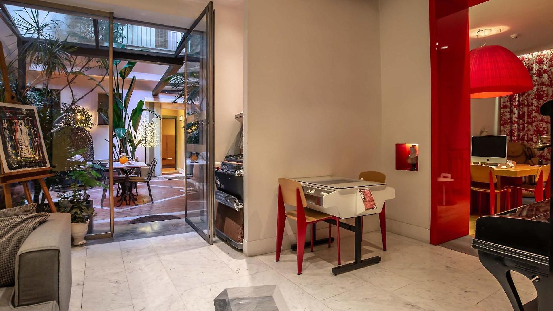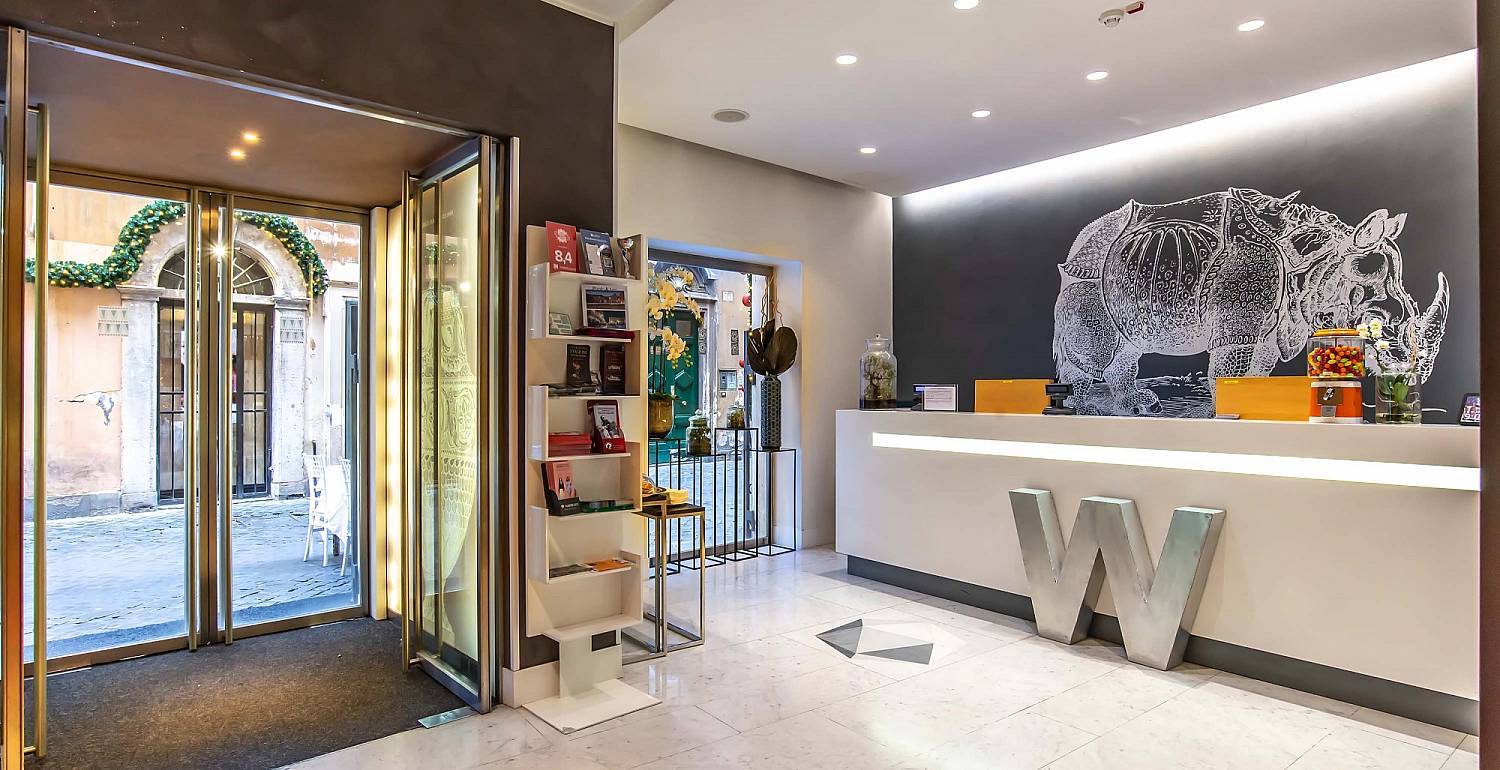 The beautifully renovated 19th Century building stands in a typically Roman street characteristic of the ancient historical centre and provides 44 luxurious rooms all equipped to provide guests with the utmost in conveniences and comfort. This historic façade contradicts the eclectic and modern lines within – from chalkboard walls to gumball machines and old fashioned jukeboxes.