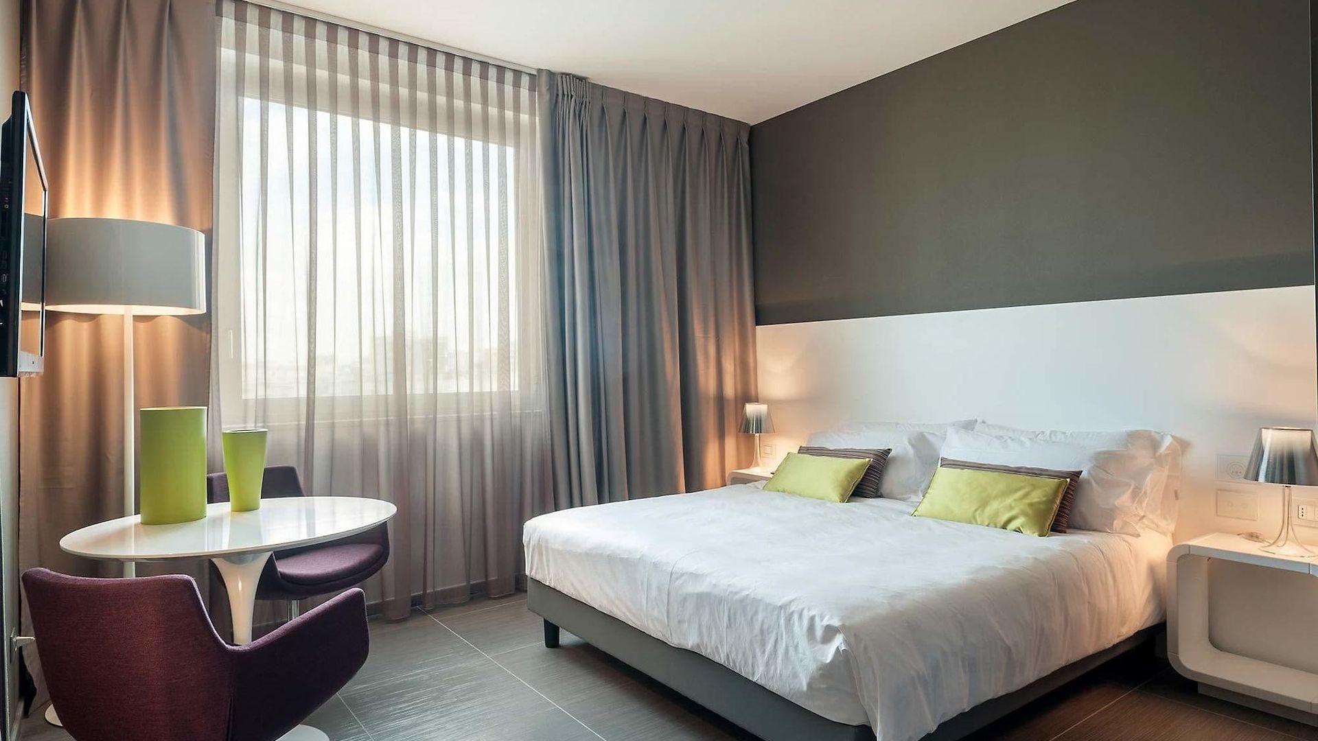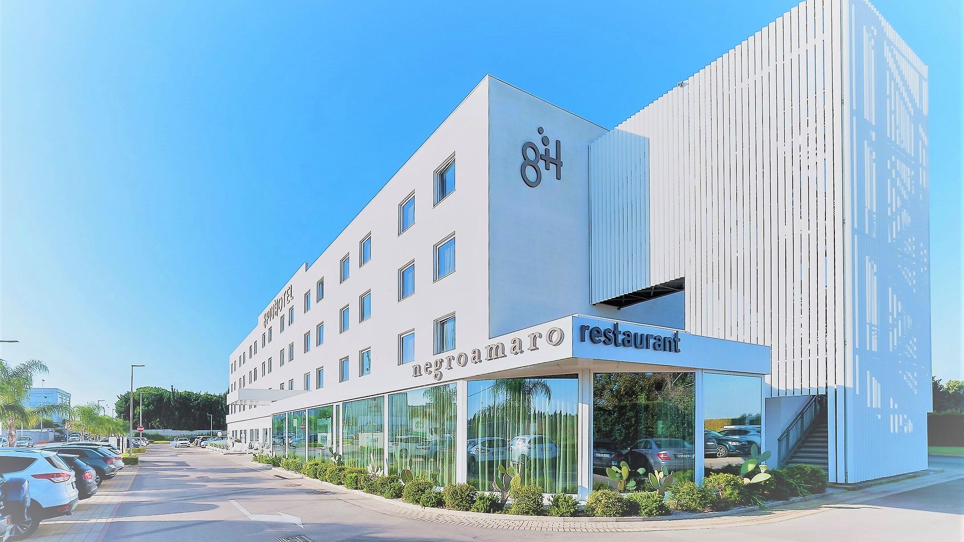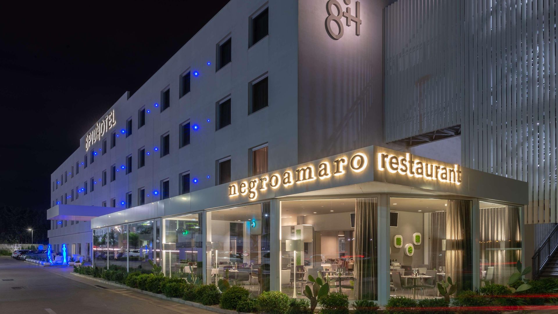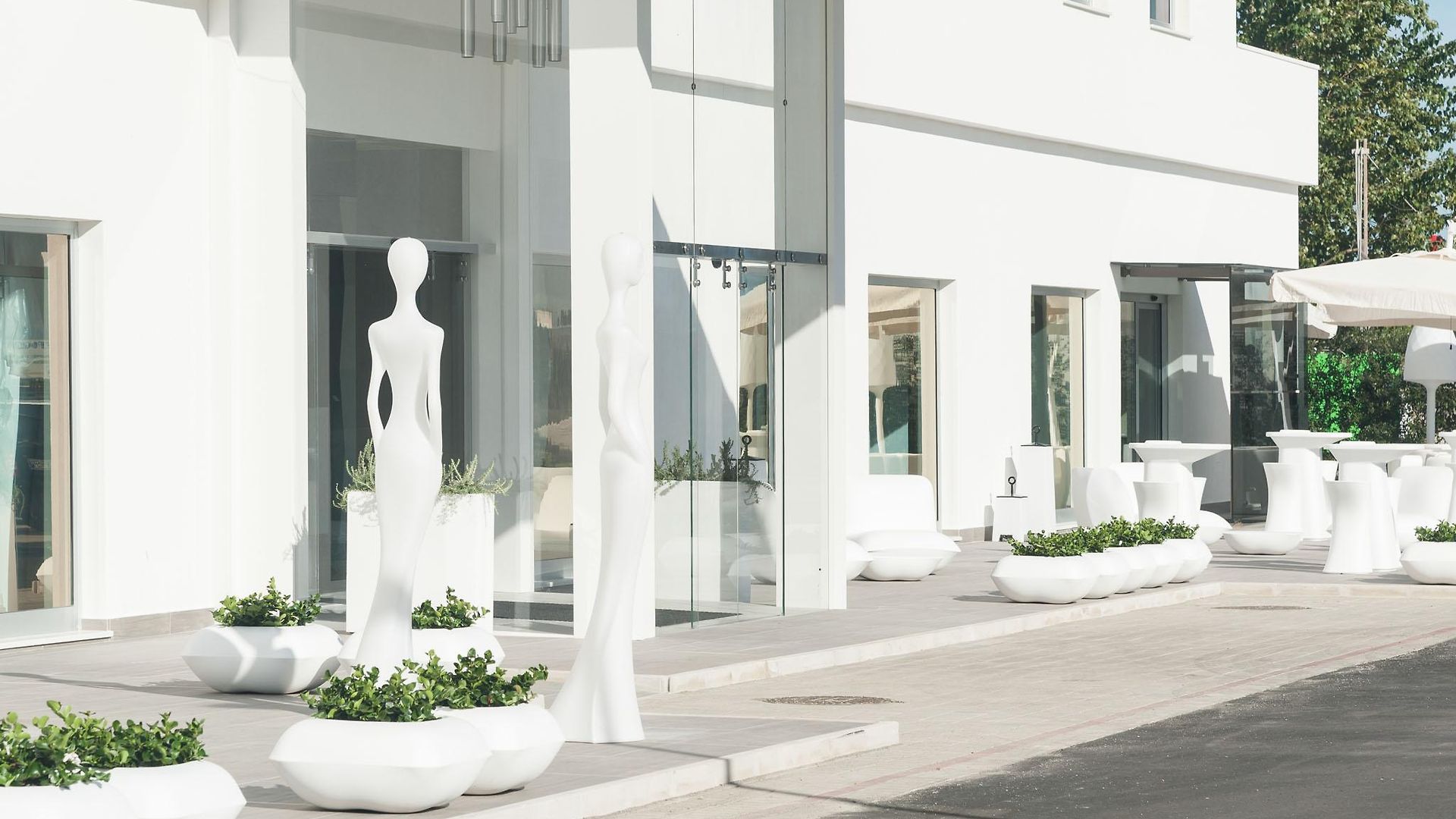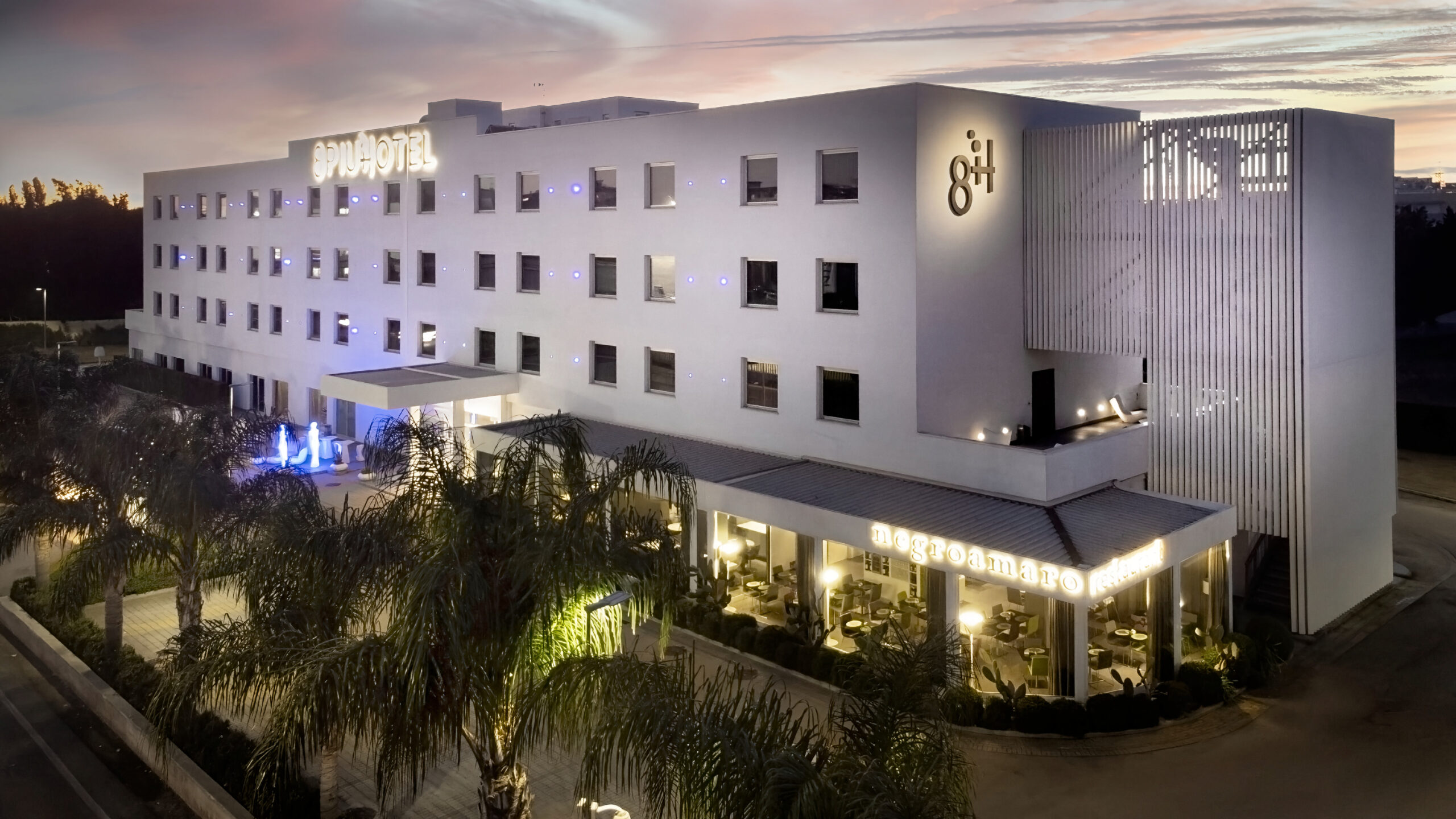 The hotel is just 1km from the city centre and some of the main tourist attractions such as Porta Napoli and the Obelisc are within a 20 minute walk. The entry to the hotel is flanked by eye-catching modern sculptural figurines and the lobby is spacious and overwhelmingly crisp and white.