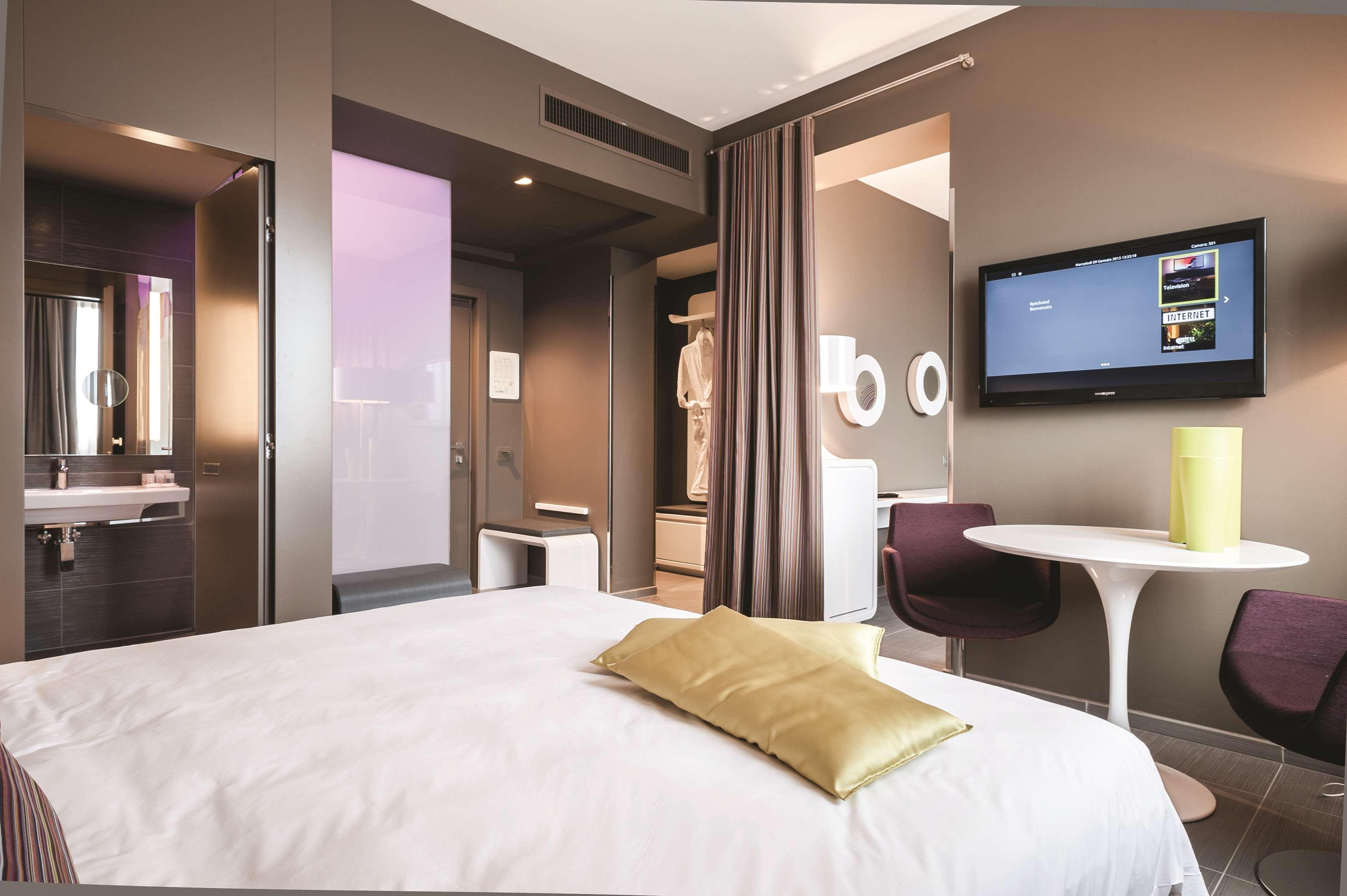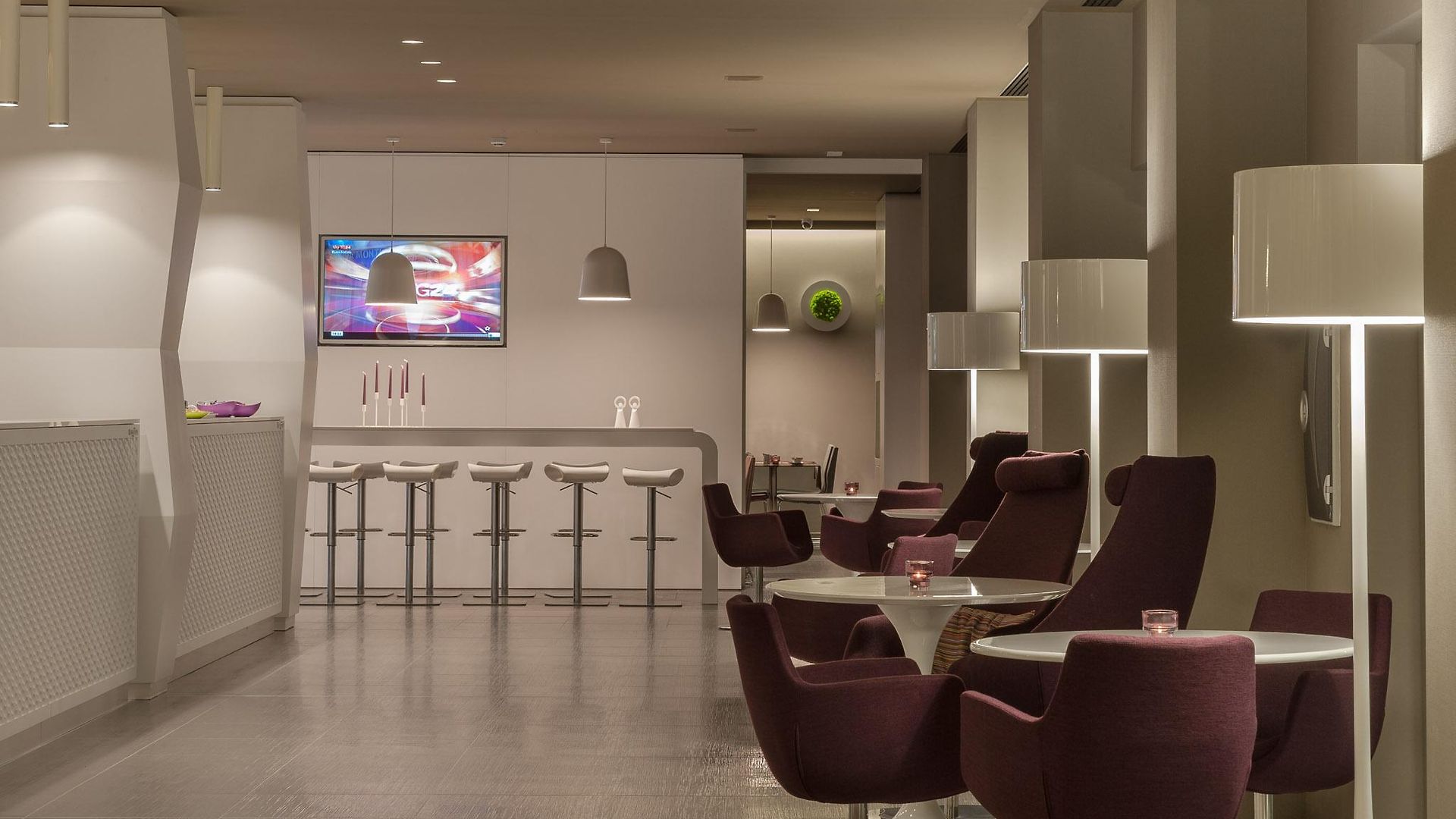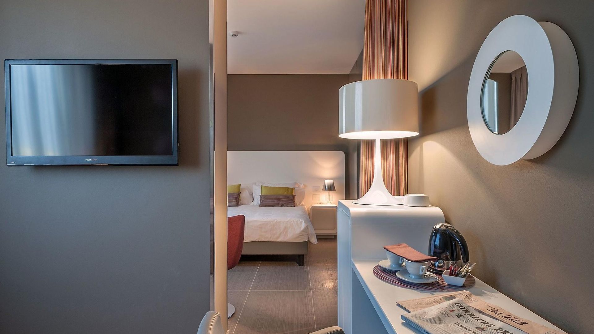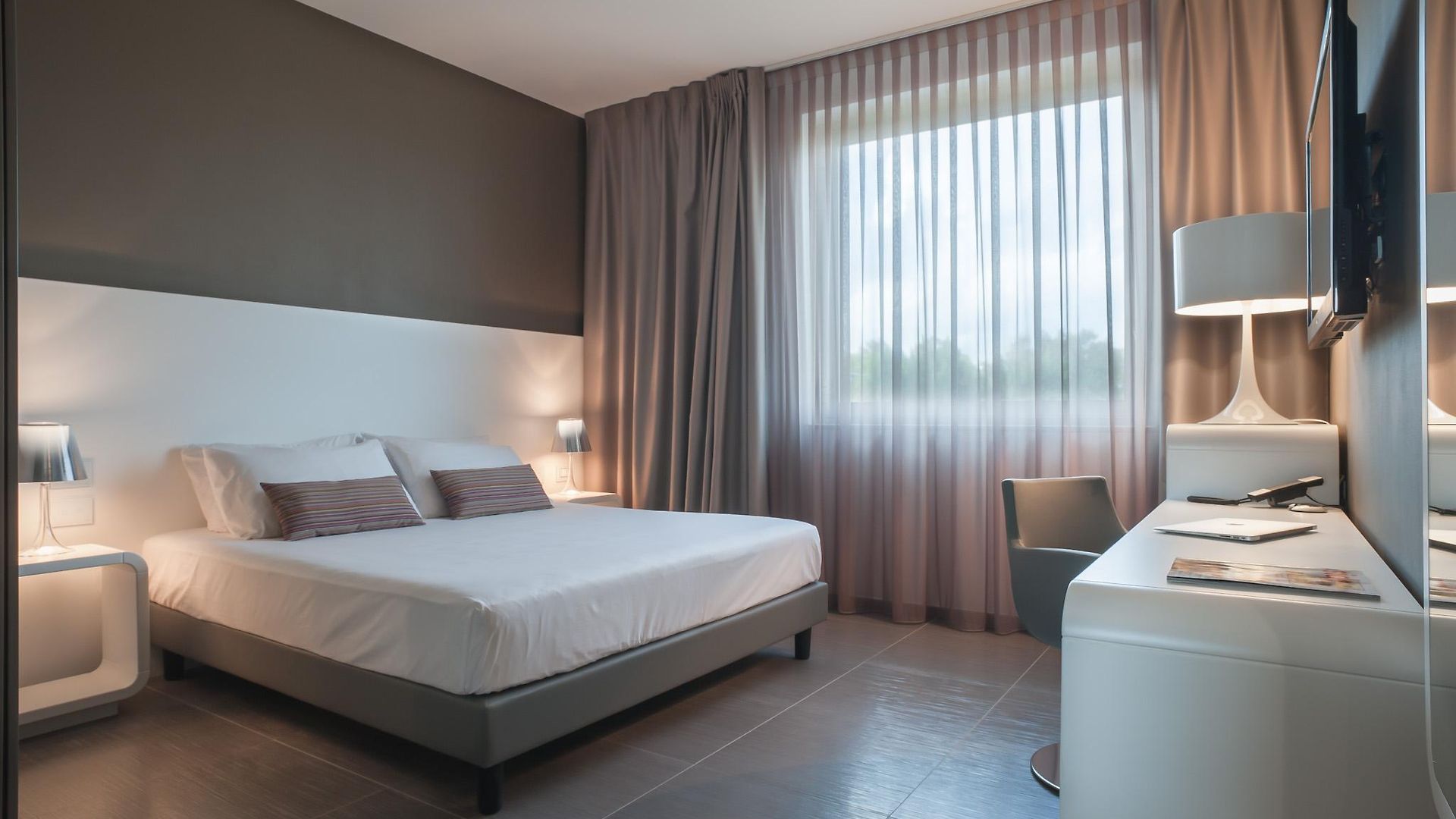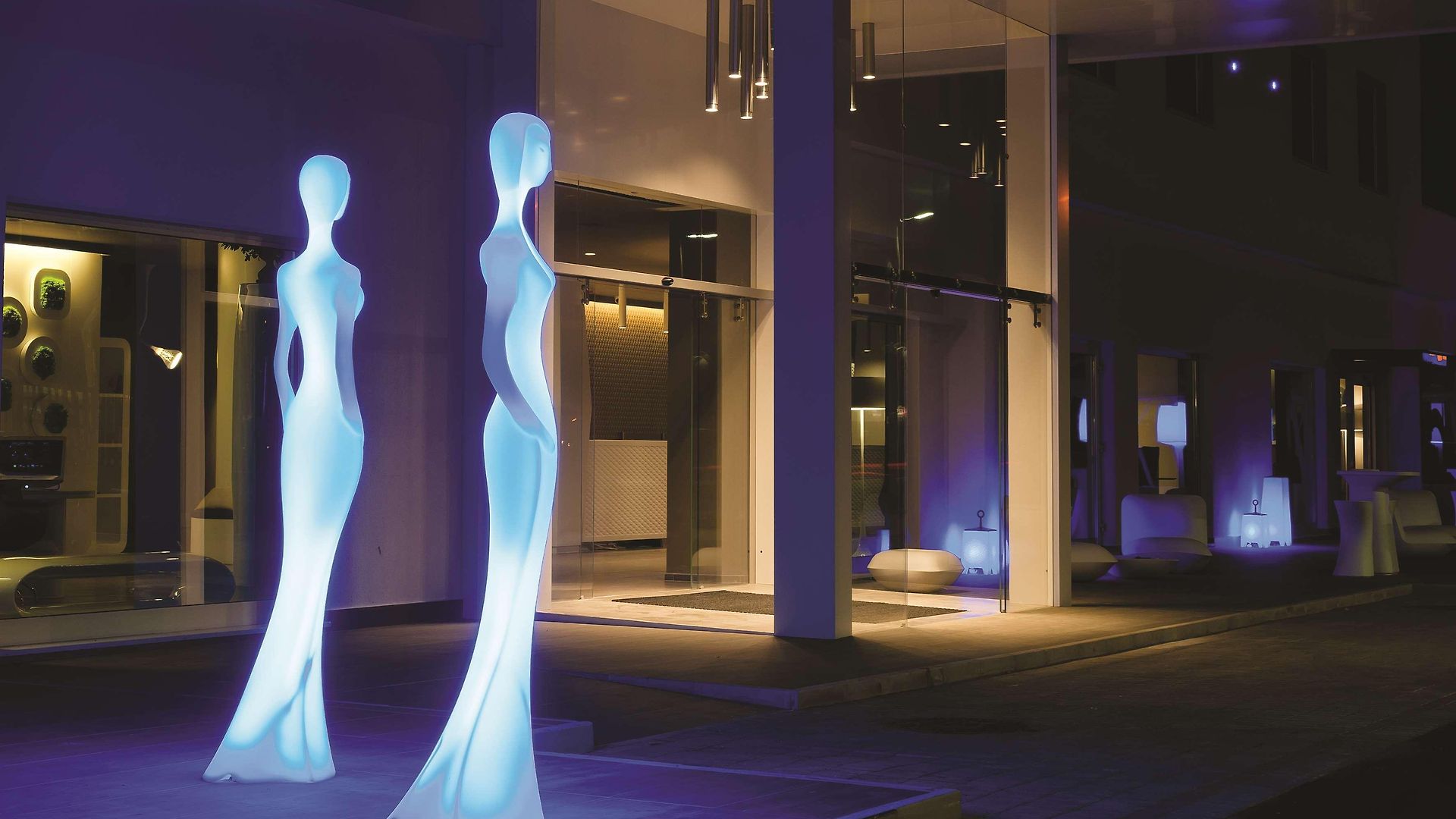The hotel is just 1km from the city centre and some of the main tourist attractions such as Porta Napoli and the Obelisc are within a 20 minute walk. The entry to the hotel is flanked by eye-catching modern sculptural figurines and the lobby is spacious and overwhelmingly crisp and white.