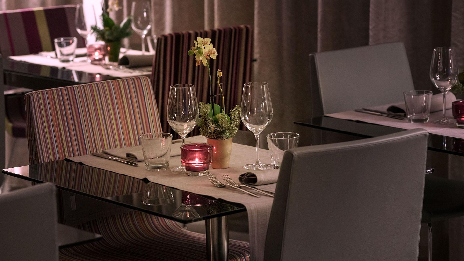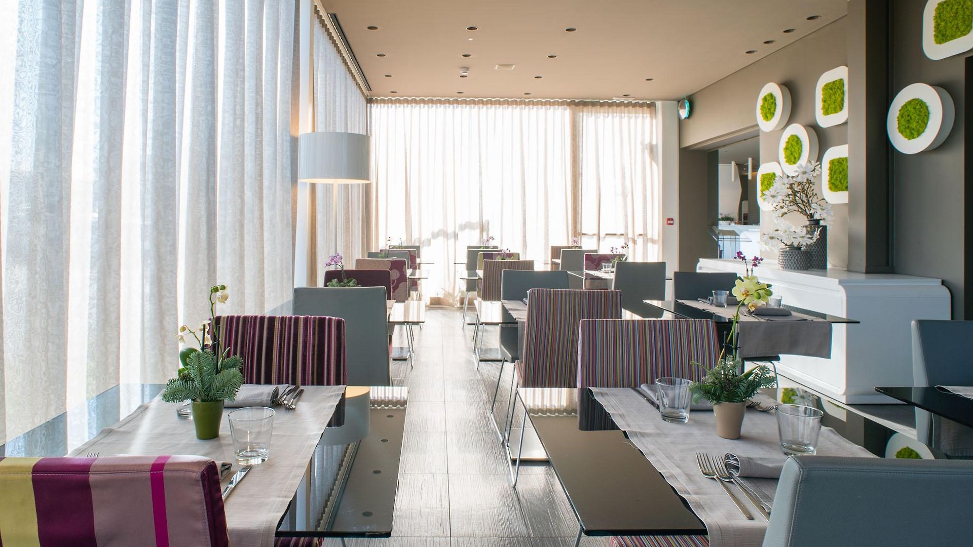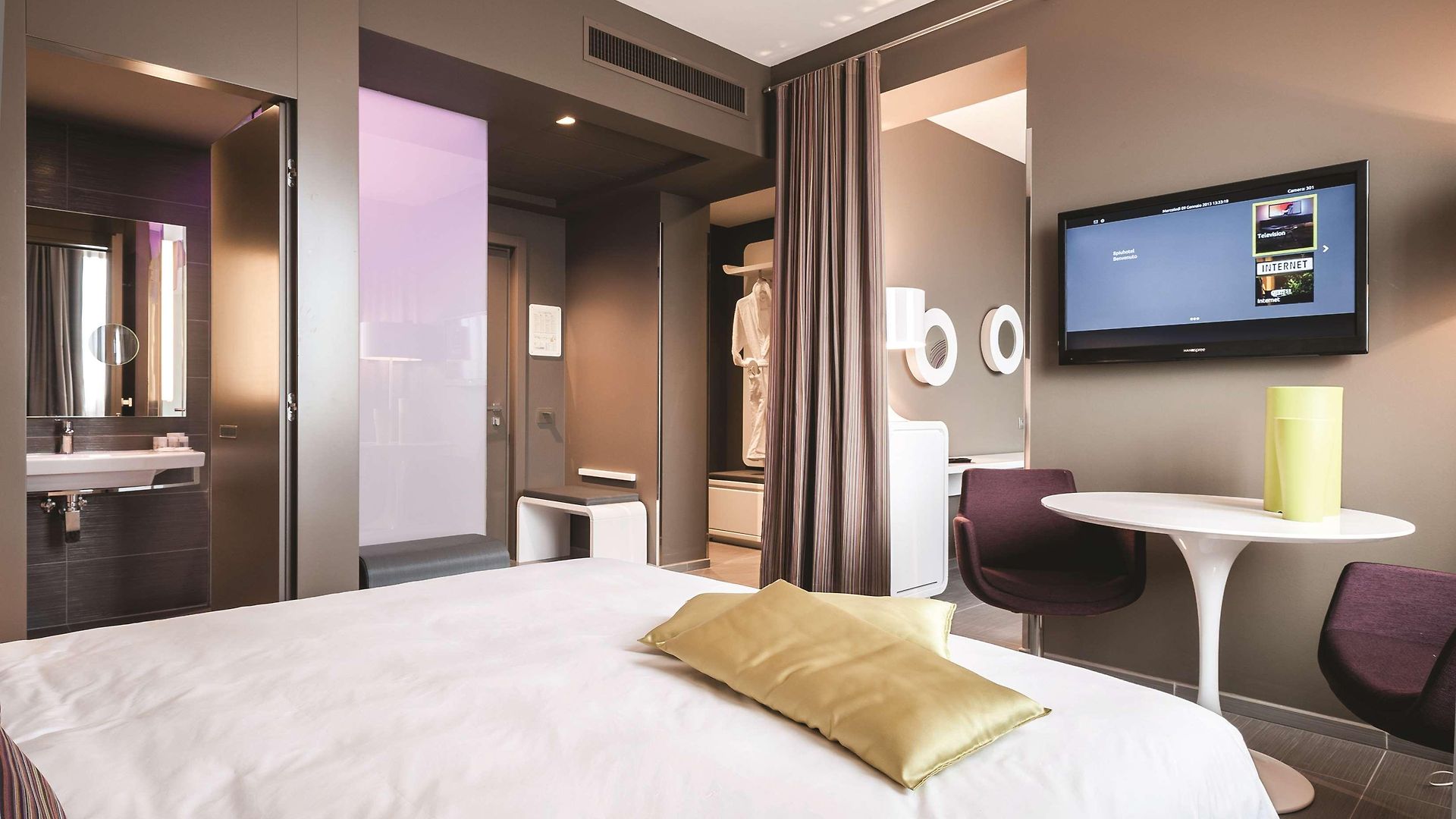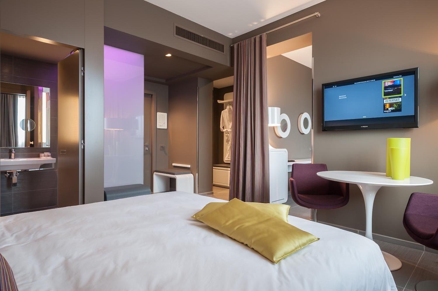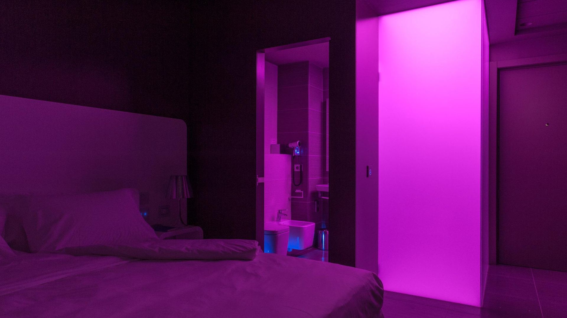 The 84 rooms and suites are all sleek – with more of the ultra-contemporary furnishings complemented with pops of bright colours such as magenta or lime and filled with tech such as touch lighting panels. The chromo-therapy showers allows guests to self-select the lighting which then illuminates both the room and the shower enclosure – this is thought to be good for the mood!