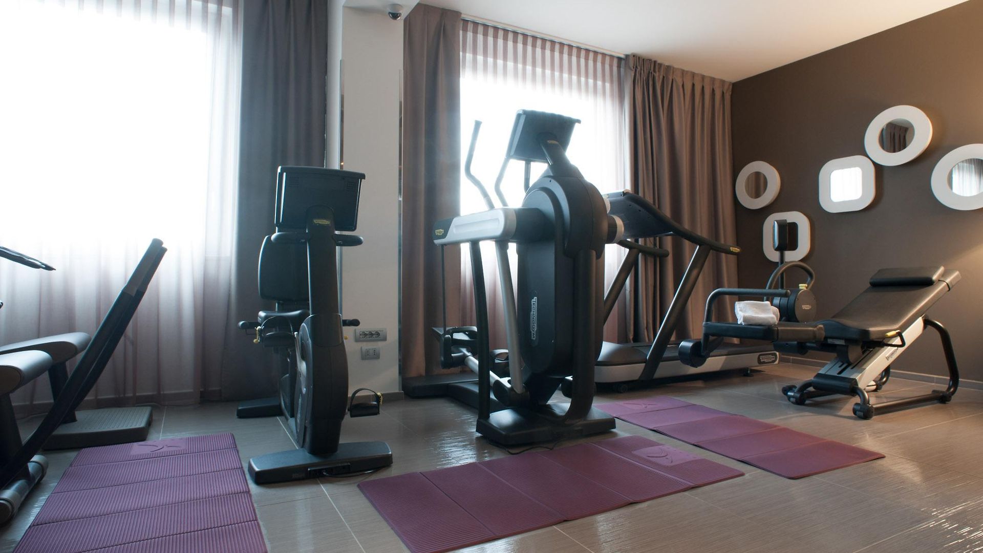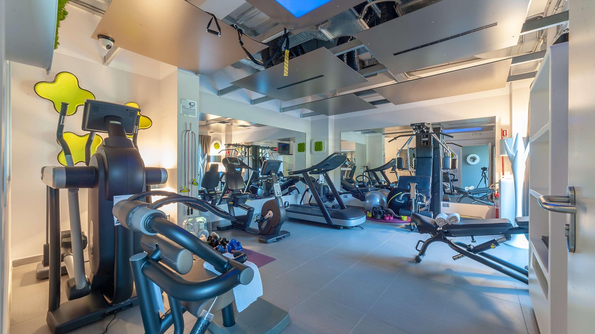 The gym area is well equipped with all of the apparatus required for a work out.