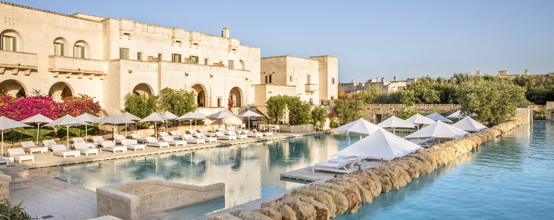 This all began in 1996 with Masseria San Domenico, originally the family’s private holiday home which later became “La Masseria” – a 5* leading hotel of the world and the model of luxury hospitality. Throughout, the property was built of local tufo limestone and inspired by Puglian villages and farms, by nature, and by simplicity. The result today is a harmonious blend of tradition and innovation, modernity and authenticity, mightiness and simplicity.