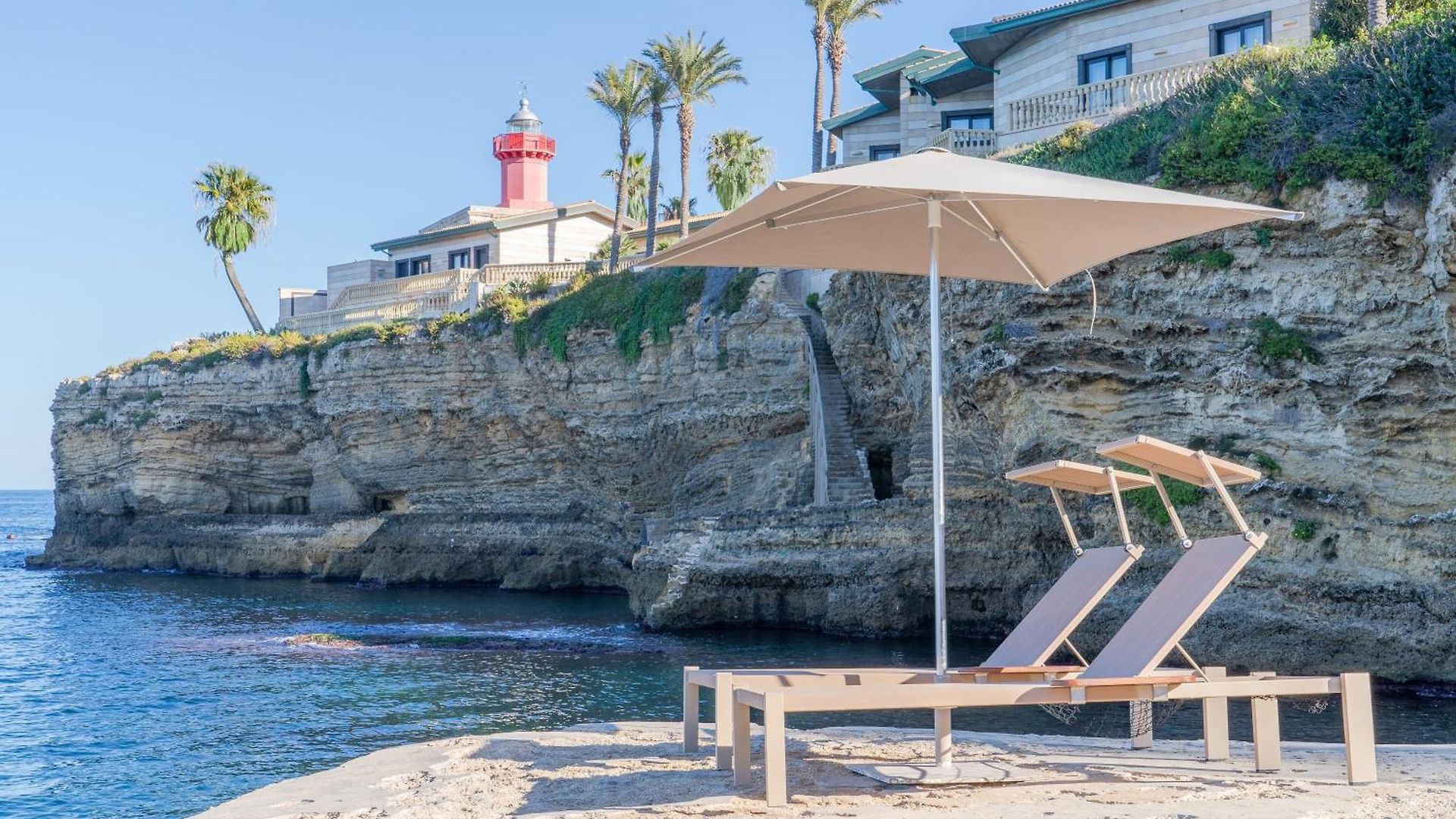In addition to the private white sandy beach, there are also a number of relaxing areas along the cliffs at different levels overlooking the sea as well as a large sundeck with a 24 hour hot tub which is the perfect location to enjoy long relaxing moments. The main pool area is surrounded by terraces with sunbeds and umbrellas. There is also a well equipped gym for use by guests. Spa treatments are also available.
