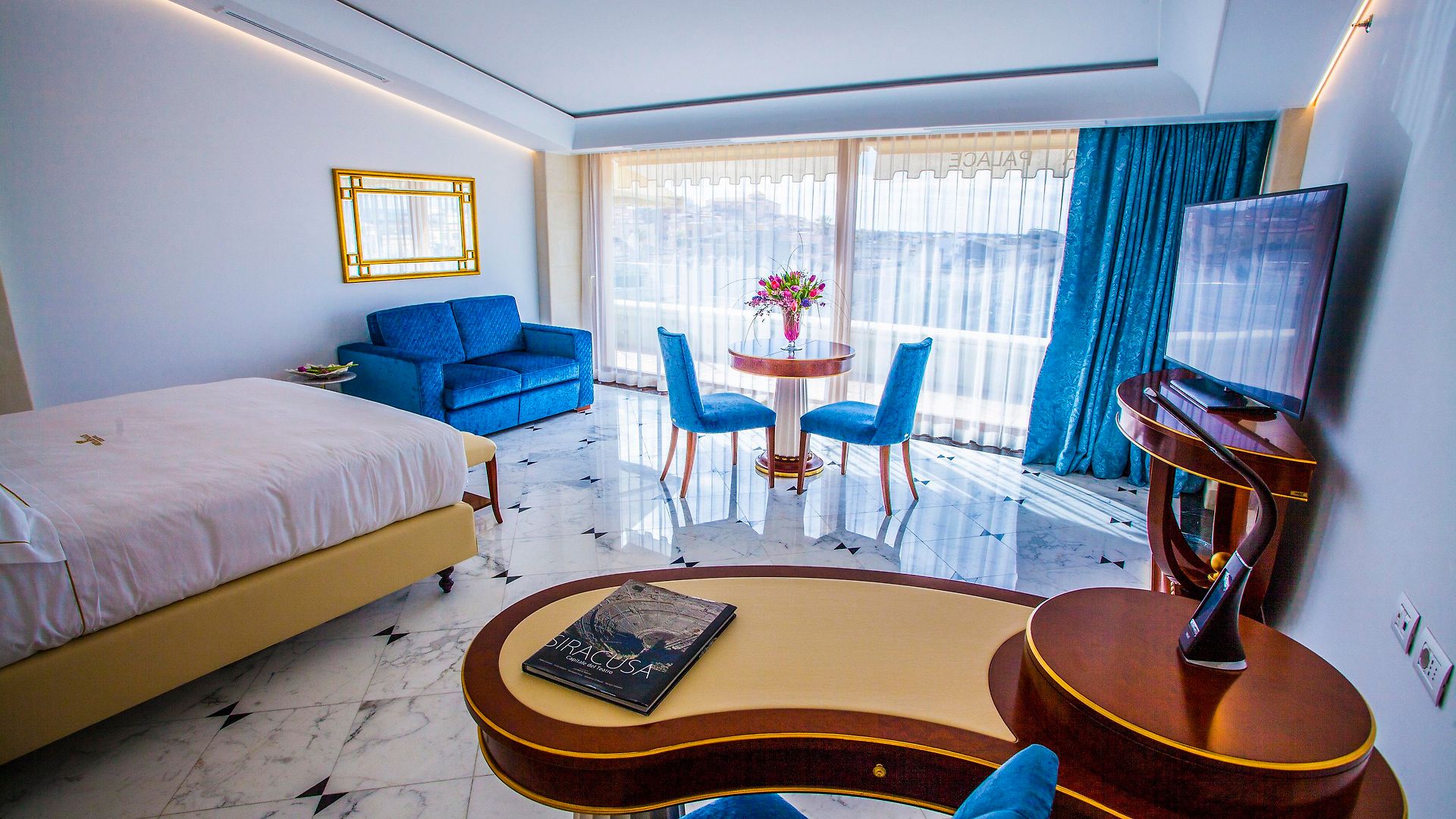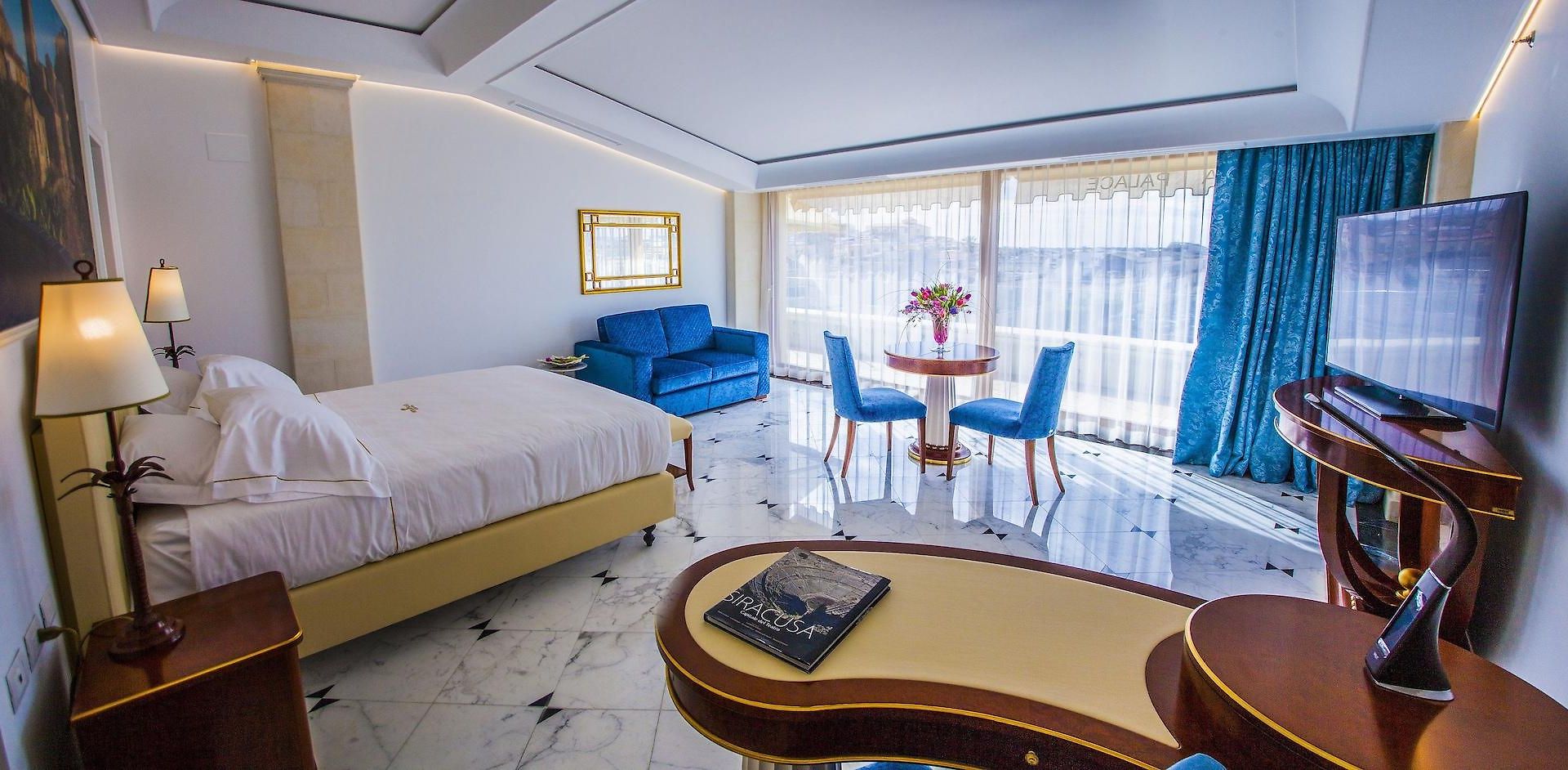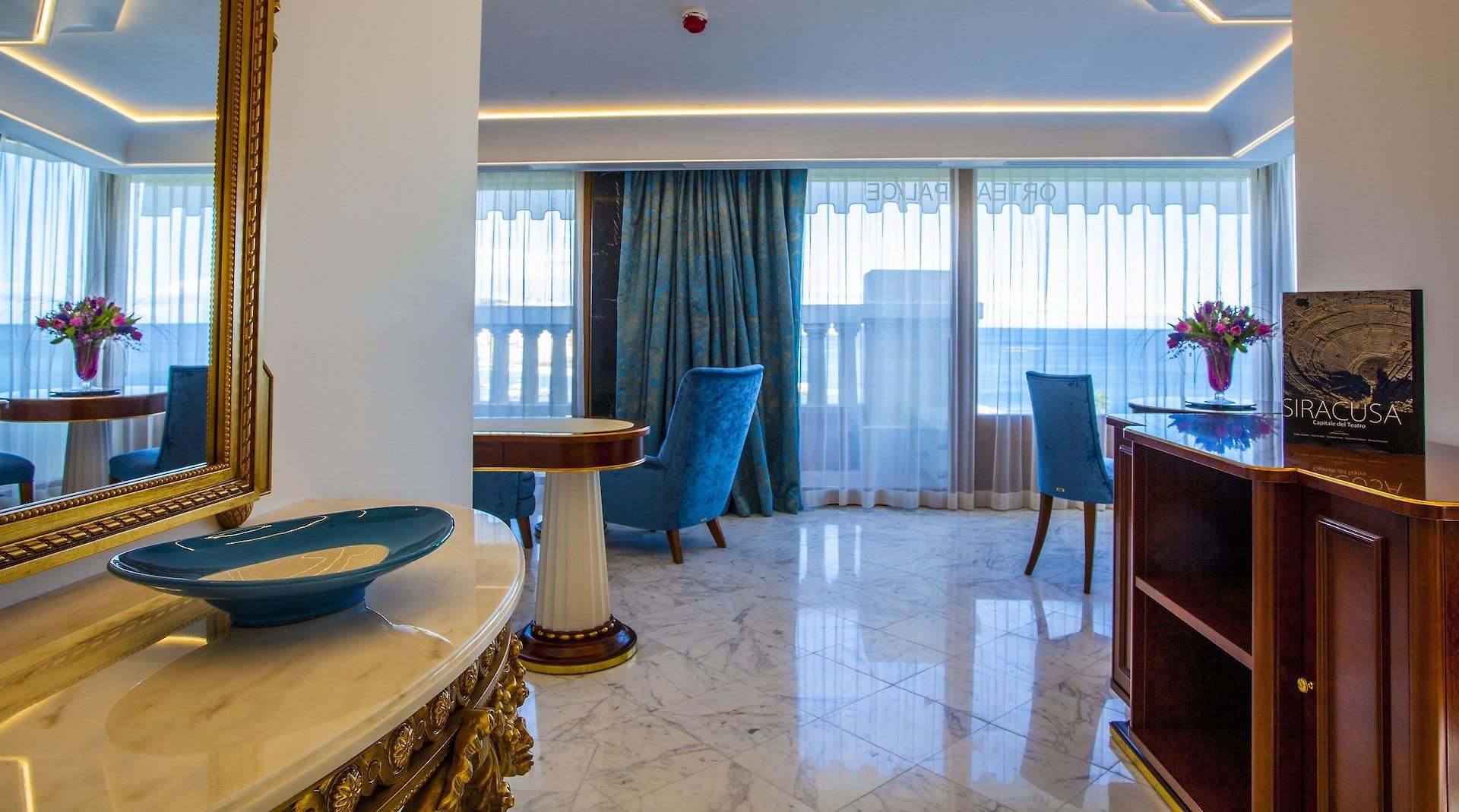 After the transformation, the hotel now offers 75 luxurious guest rooms and suites that reflect the elegance and style. Views from the windows and balconies are over Syracuse or Ortiga. All are bright and welcoming with Italian designer furniture, carpets from Zanaboni Milano and marble bathrooms. All are well equipped and there is a wide choice of room categories to suit any budget. For the ultimate in luxury, nothing can beat the Tower Suite which offers especially good sea views from its windows and two balconies.