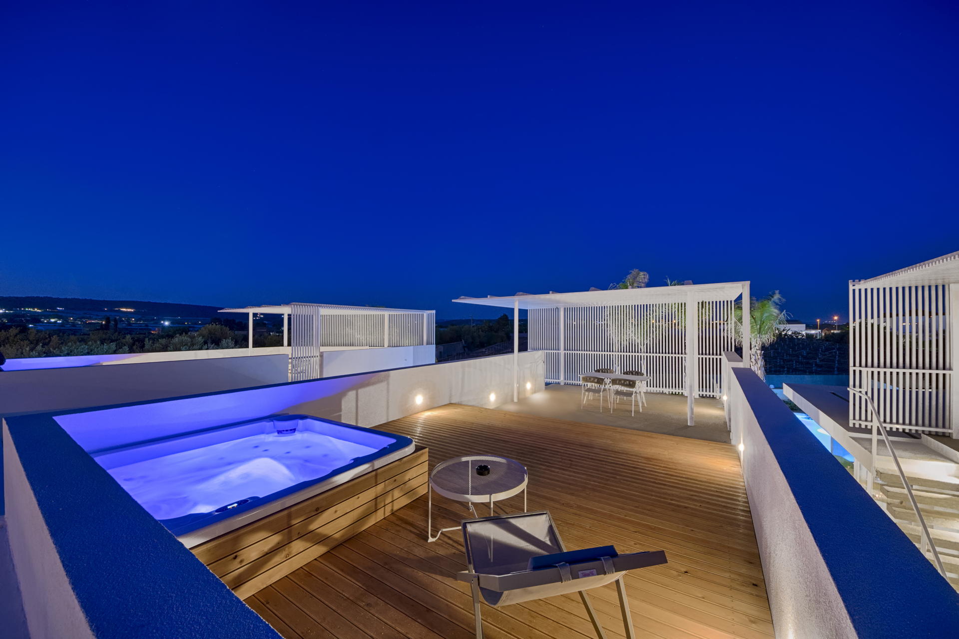 The rooftop jacuzzi and terrace is a secluded private spot to allows guests to relax under the skies at any time of day or night and offers superb views.