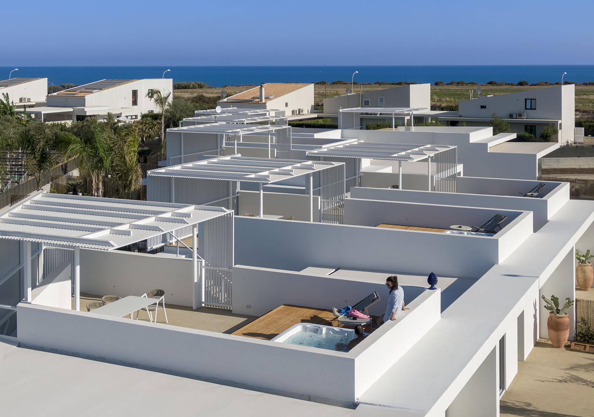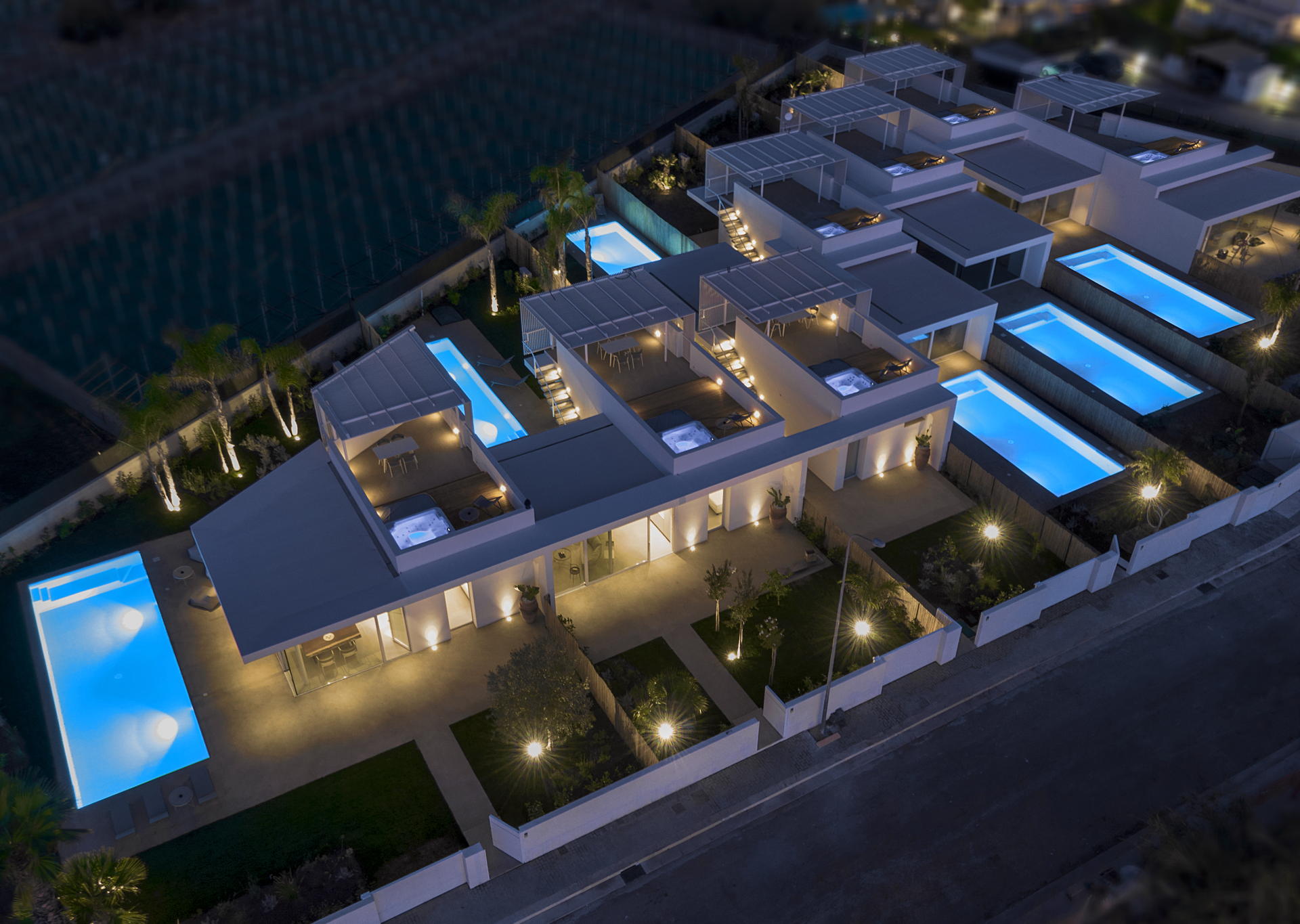 Just a short stroll from the closest beach, Villa Granatu is one of 7 villas that are arranged in a small community designed like townhouses. This beautiful villa boasts a delightful swimming pool and a rooftop jacuzzi that offers breathtaking views over the surrounding countryside. The design of the villas means that each has its own privacy and offers complete exclusivity from the neighbouring properties.