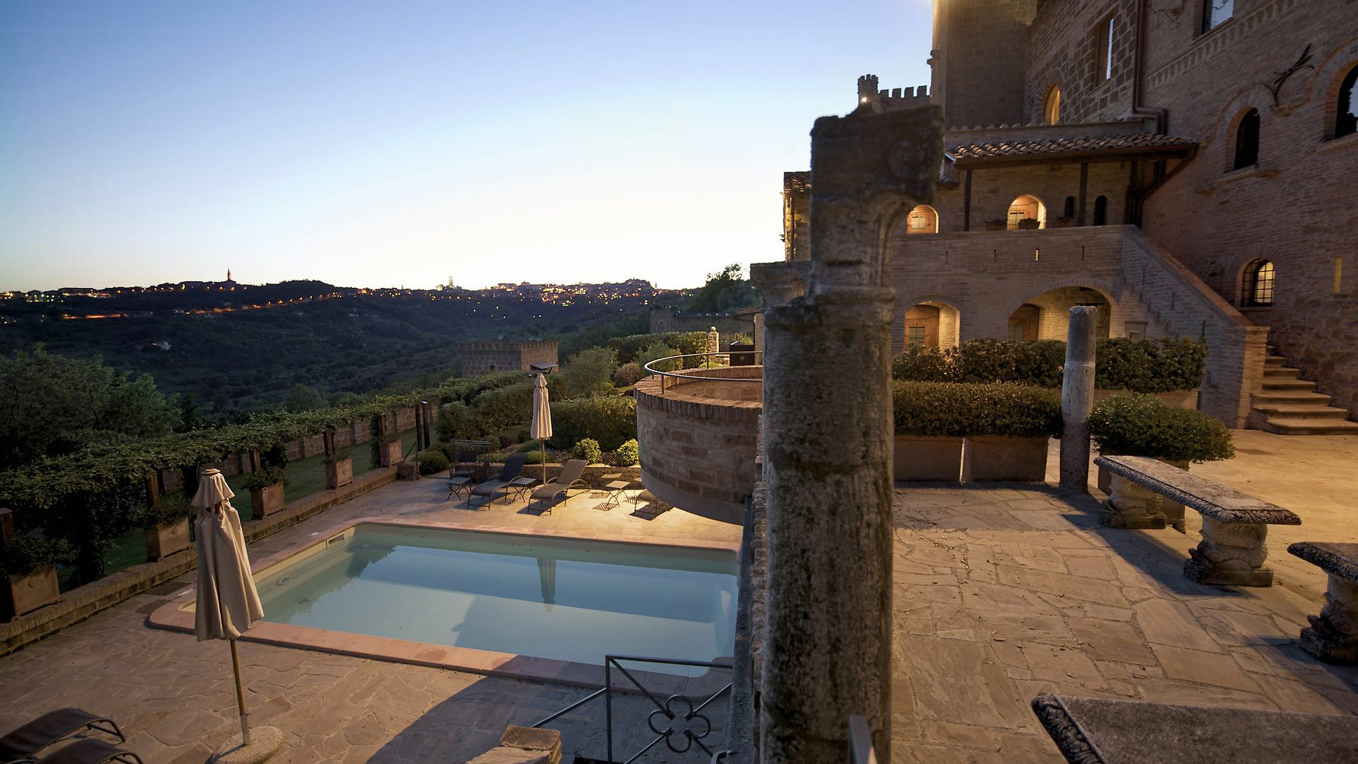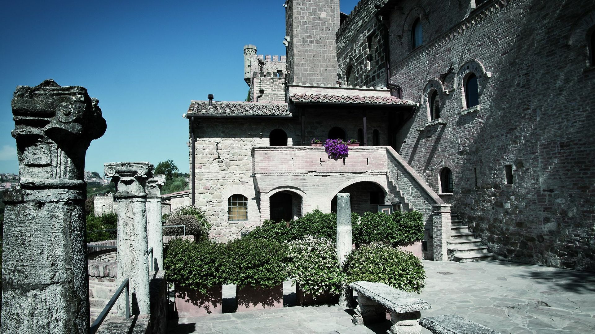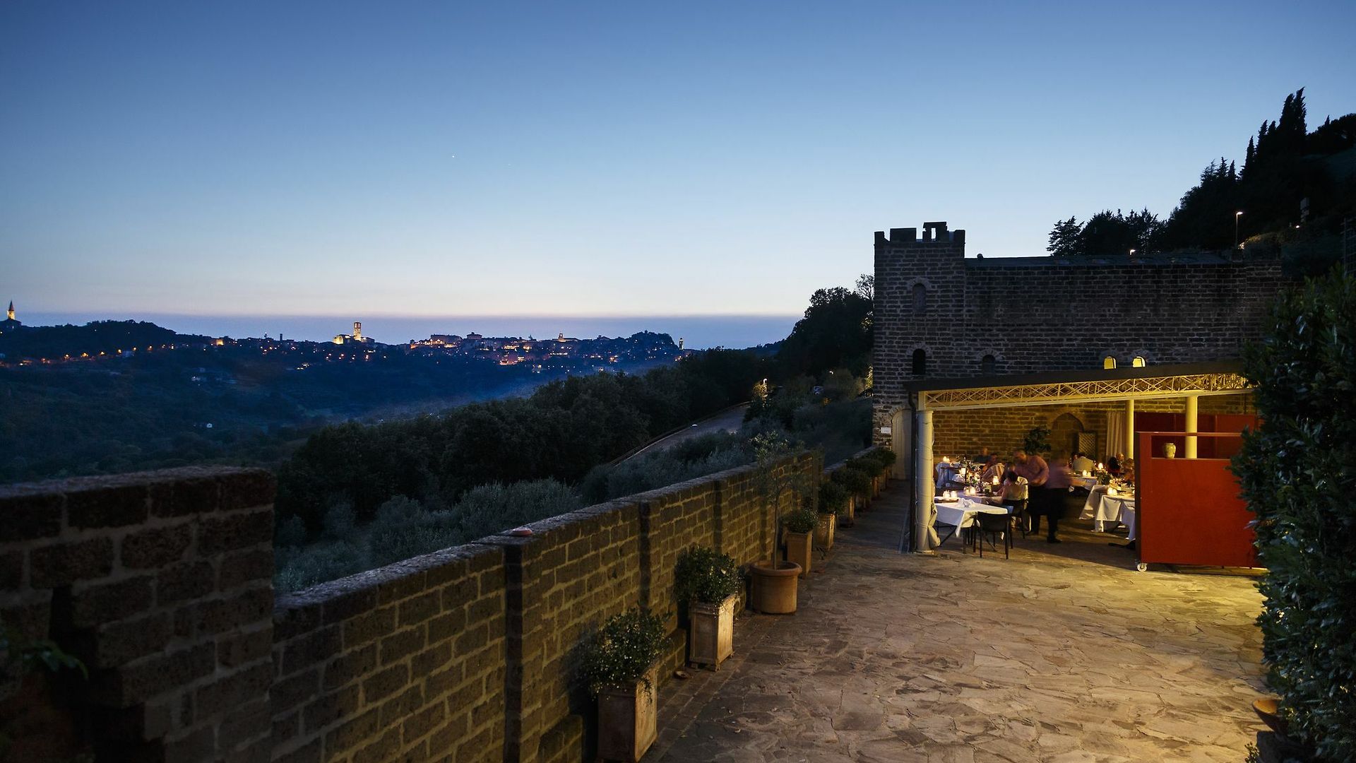 The Capaccioni family that now own Castello di Monterone have lovingly restored the castle into an elegant hotel with comfortable lounges, a relaxing library, bar and contemporary basement restaurant. Guests first enter through the cloistered garden full of Etruscan artefacts and seating areas in the dappled shade. The interiors remain true to the origins of the building and are impeccably maintained. Any modern additions such as the lift to the battlements are unobtrusive – the views from up here are stupendous.