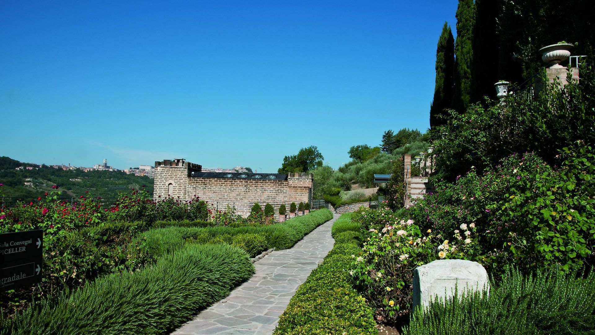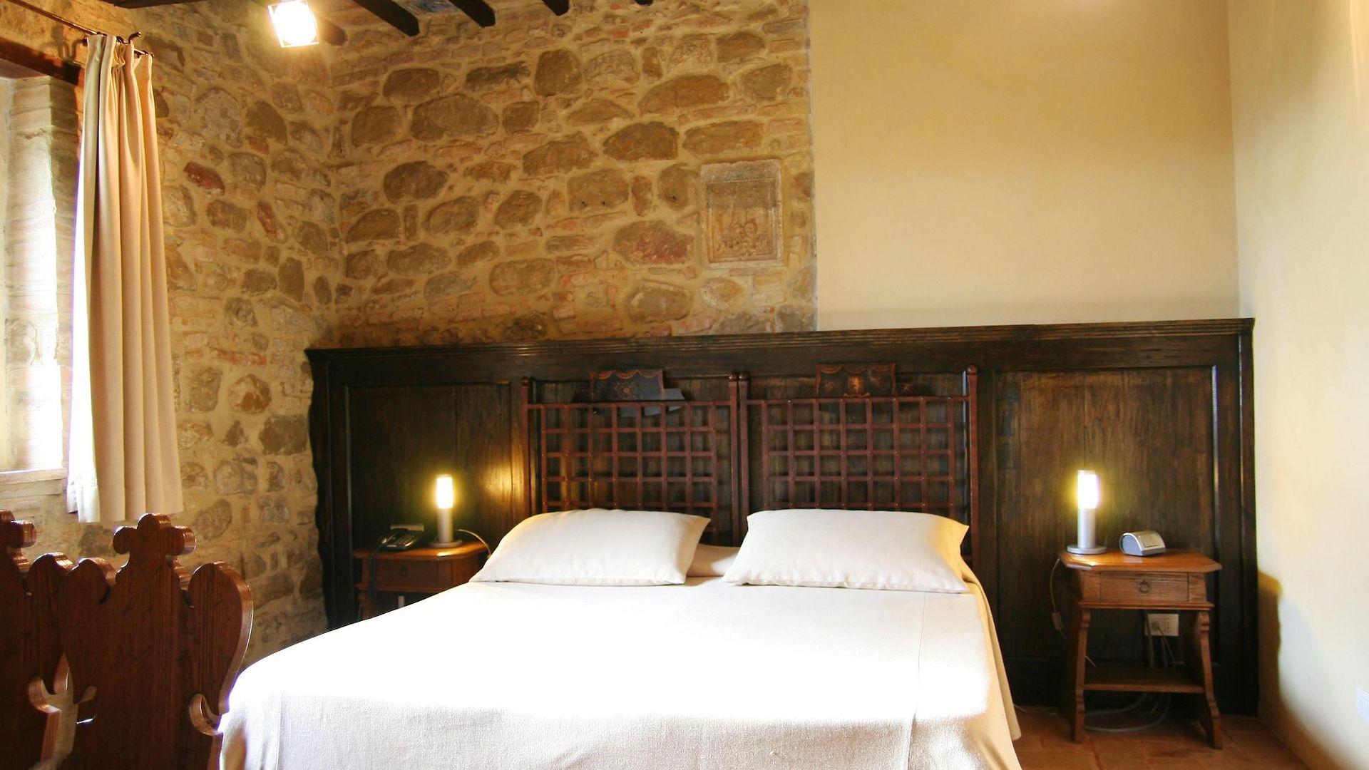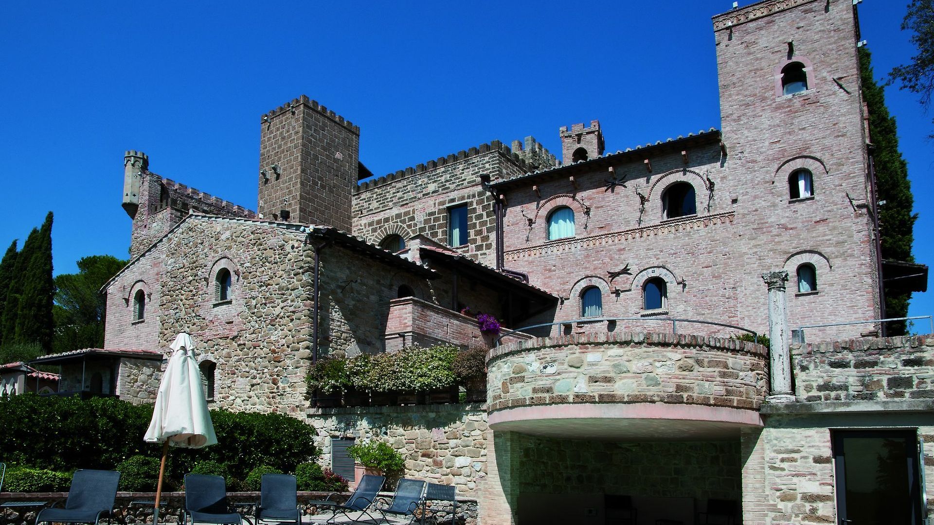 The Capaccioni family that now own Castello di Monterone have lovingly restored the castle into an elegant hotel with comfortable lounges, a relaxing library, bar and contemporary basement restaurant. Guests first enter through the cloistered garden full of Etruscan artefacts and seating areas in the dappled shade. The interiors remain true to the origins of the building and are impeccably maintained. Any modern additions such as the lift to the battlements are unobtrusive – the views from up here are stupendous.
