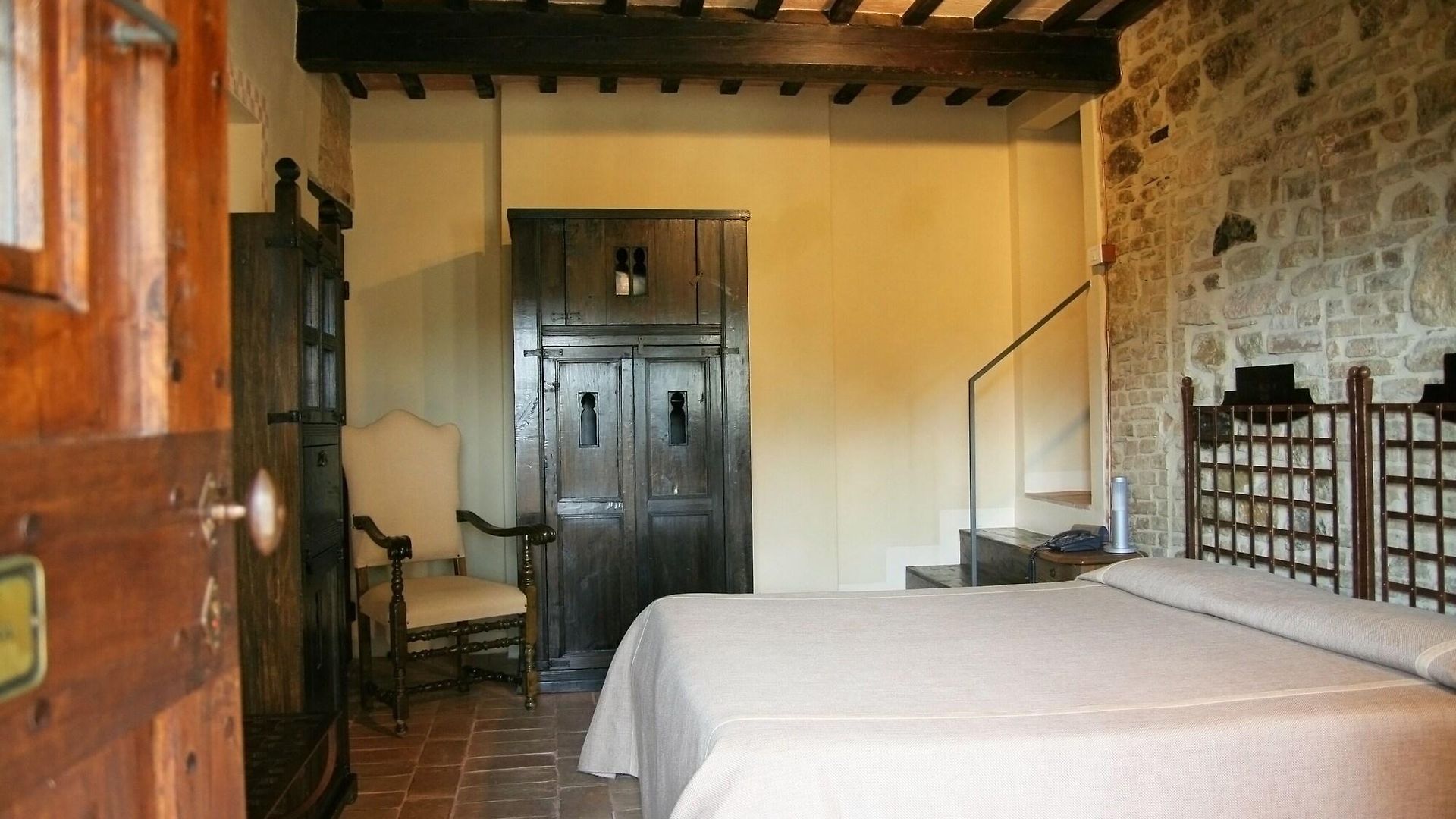 According to early historical information, Castello di Monterone dates from around 1200 and is situated on a hill with panoramic views over the valleys between Assisi and Perugia. This idyllic residence truly is a gem – immersed in the beautiful Umbrian countryside and a treasury of the arts filled with ornate salons and frescos.