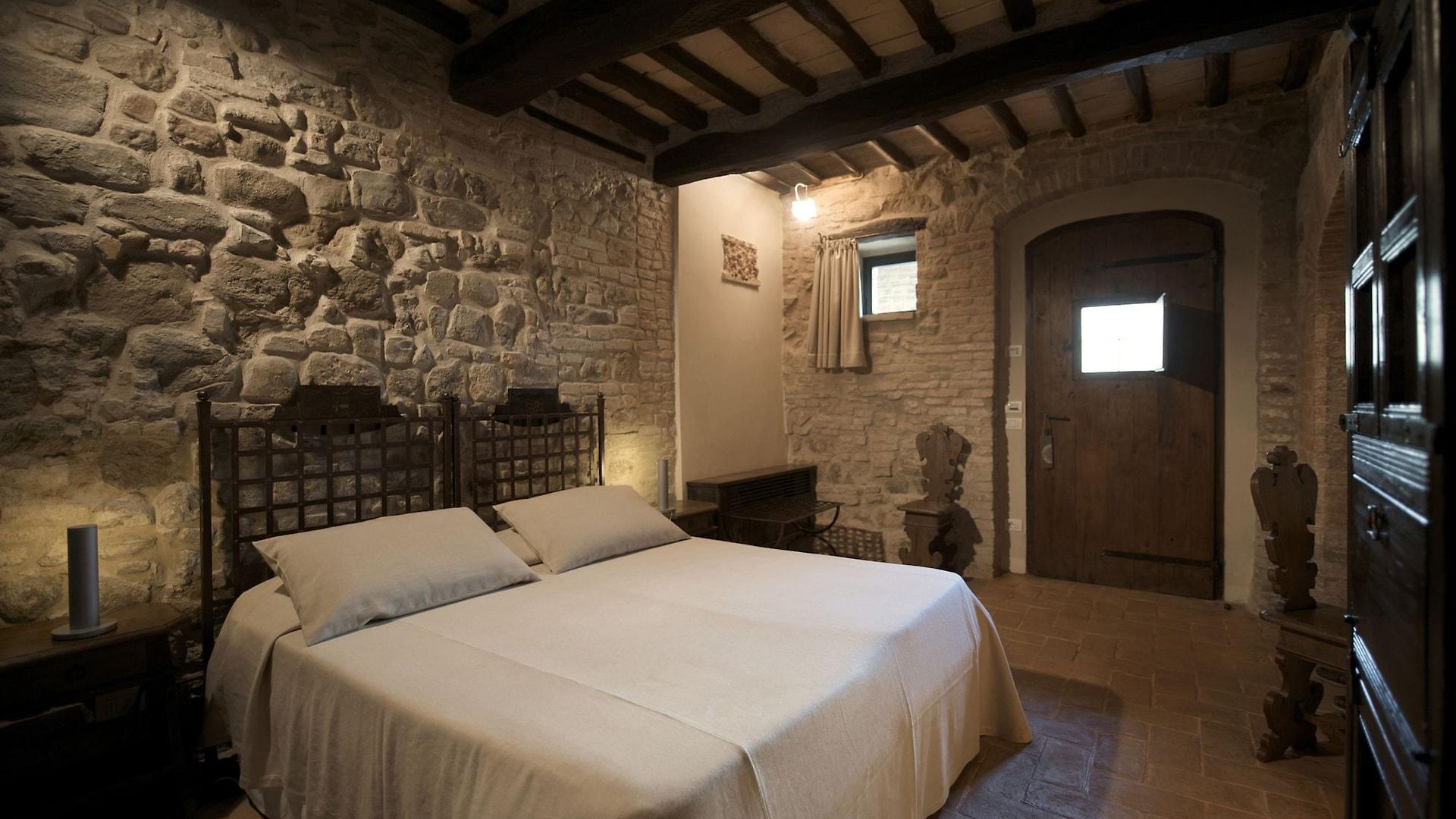The basement restaurant is surprisingly contemporary – think modern Scandi in style; a complete antithesis to the ancient walls of the castle. The covered terrace is a particularly nice spot to while away a summer’s evening over a dinner filled with typical Umbrian fare, lots of which comes from the local area.